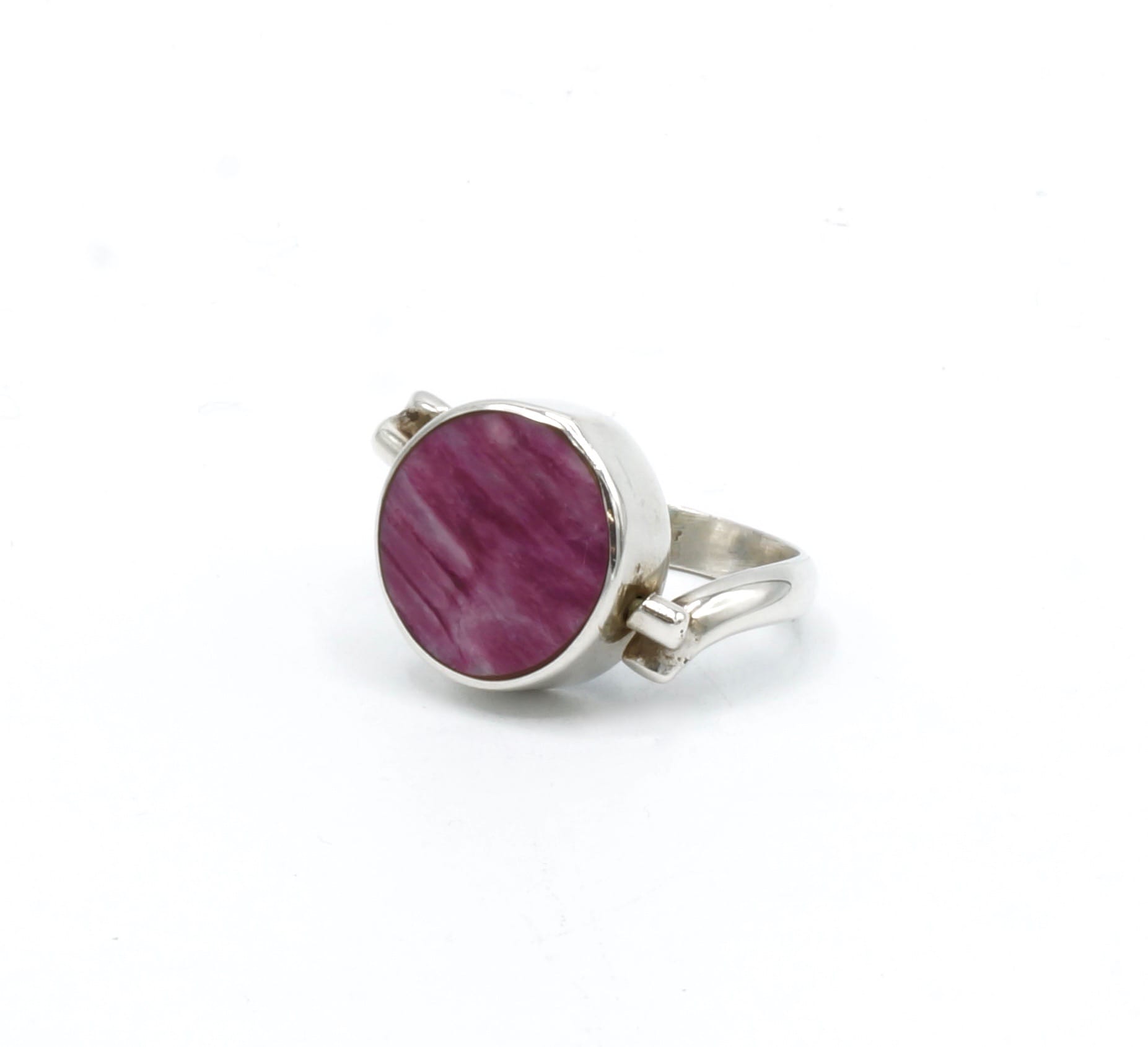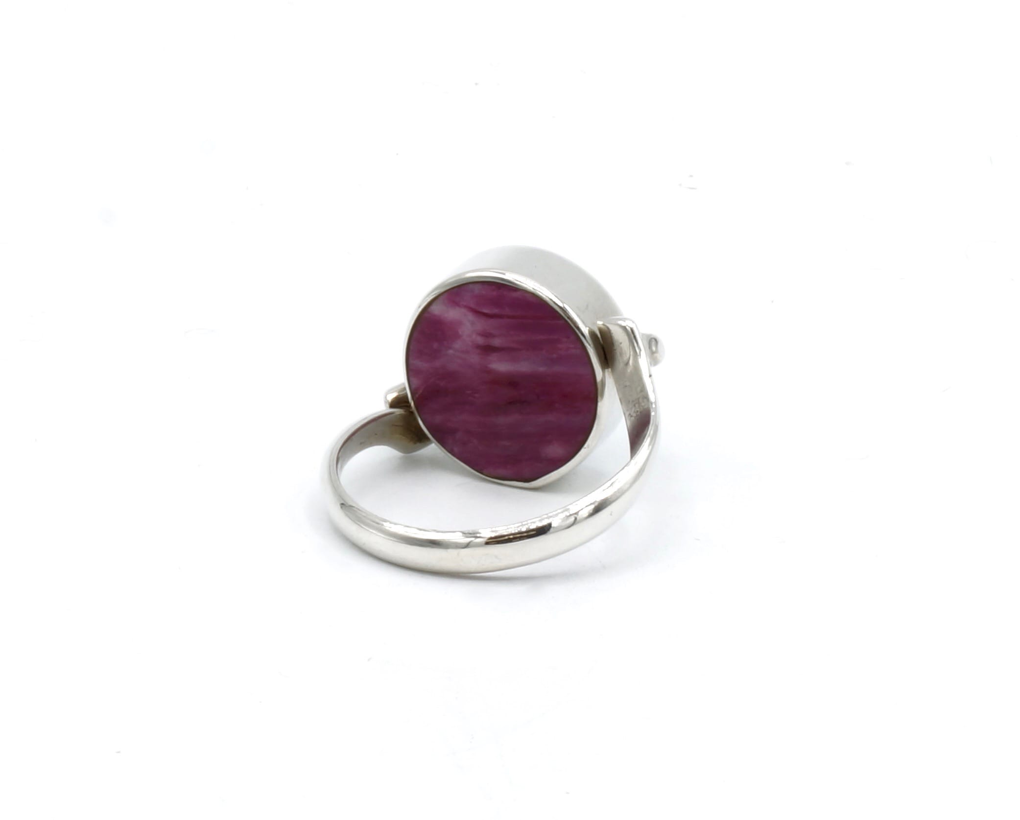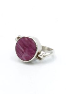 Als u van dubbelzijdige ringen houdt dan is deze ring perfect voor u! Deze ring is gemaakt door Peruaanse ambachtslieden met een fijn geslepen paarse Spondylus, Abalone schelp en zilver met een gehalte van 950 van de beste kwaliteit.