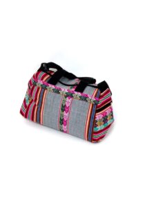 Deze mooie en eigentijdse reistas is alles wat u nodig heeft voor een lange of korte trip. De ruime inhoud is geschikt voor grote hoeveelheden van kleding/overige artikelen en tegelijkertijd blijven uw spullen in goede conditie. Ook heeft deze prachtige reistas drie ruime zijvakken die gesloten kunnen worden door middel van een rits. Deze reistas is gemakkelijk te dragen vanwege zijn speciale schouderband en handvaten. Hij is handgemaakt door Peruaanse ambachtslieden met duurzame en echte Peruaanse stof (Manto Andino).