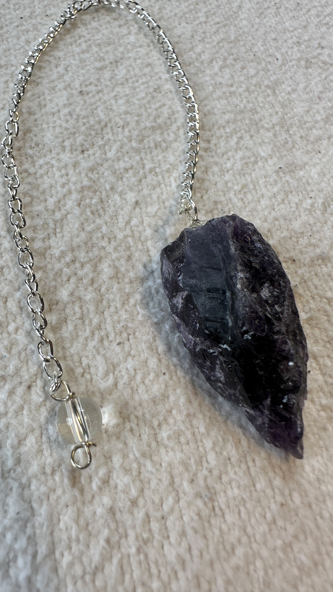 Iedere pendel is speciaal omdat ze vervaardigd worden uit ruwe brokken Amethist. Daarom is er geen pendel hetzelfde en zullen ze wat afwijken van de afbeelding.