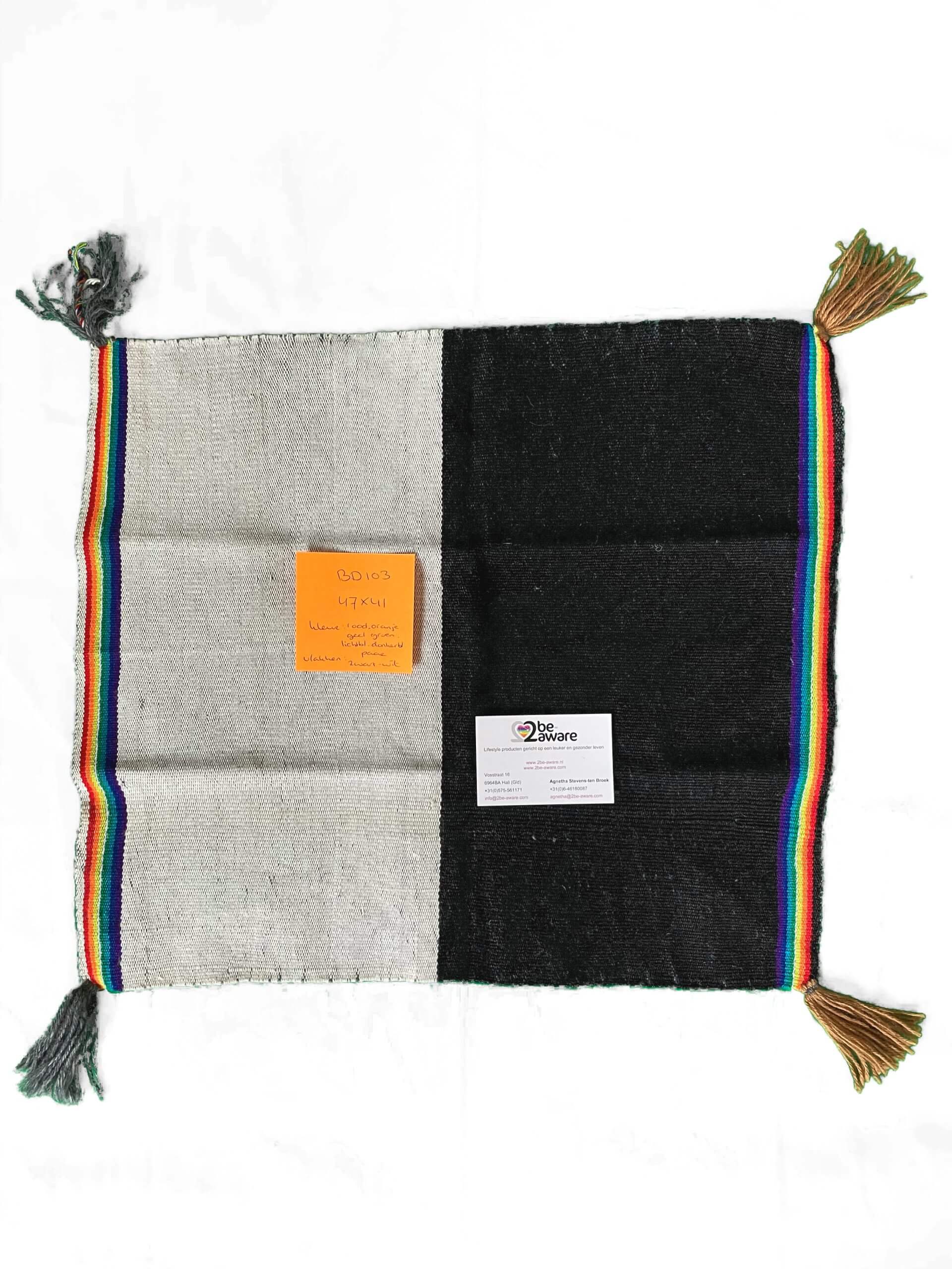 Een binnendoek zou een mooie aanvulling kunnen zijn in uw mestana om zo uw khuya’s te ordenen. Afgewerkt met kwastjes in de kleuren beige, grijs en zwart.