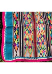 Een werkelijk prachtig binnendoek voor in uw mesa. Rijkelijk afgewerkt met kleuren en band.