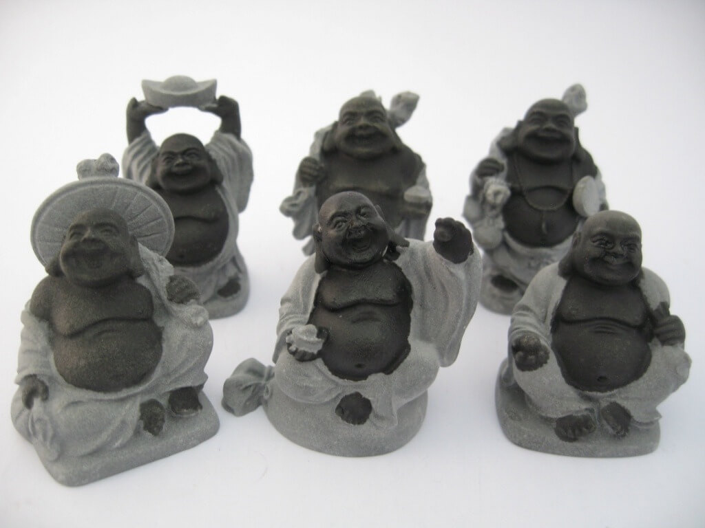 Leuke set van 6 verschillende Hematiet boeddha`s.