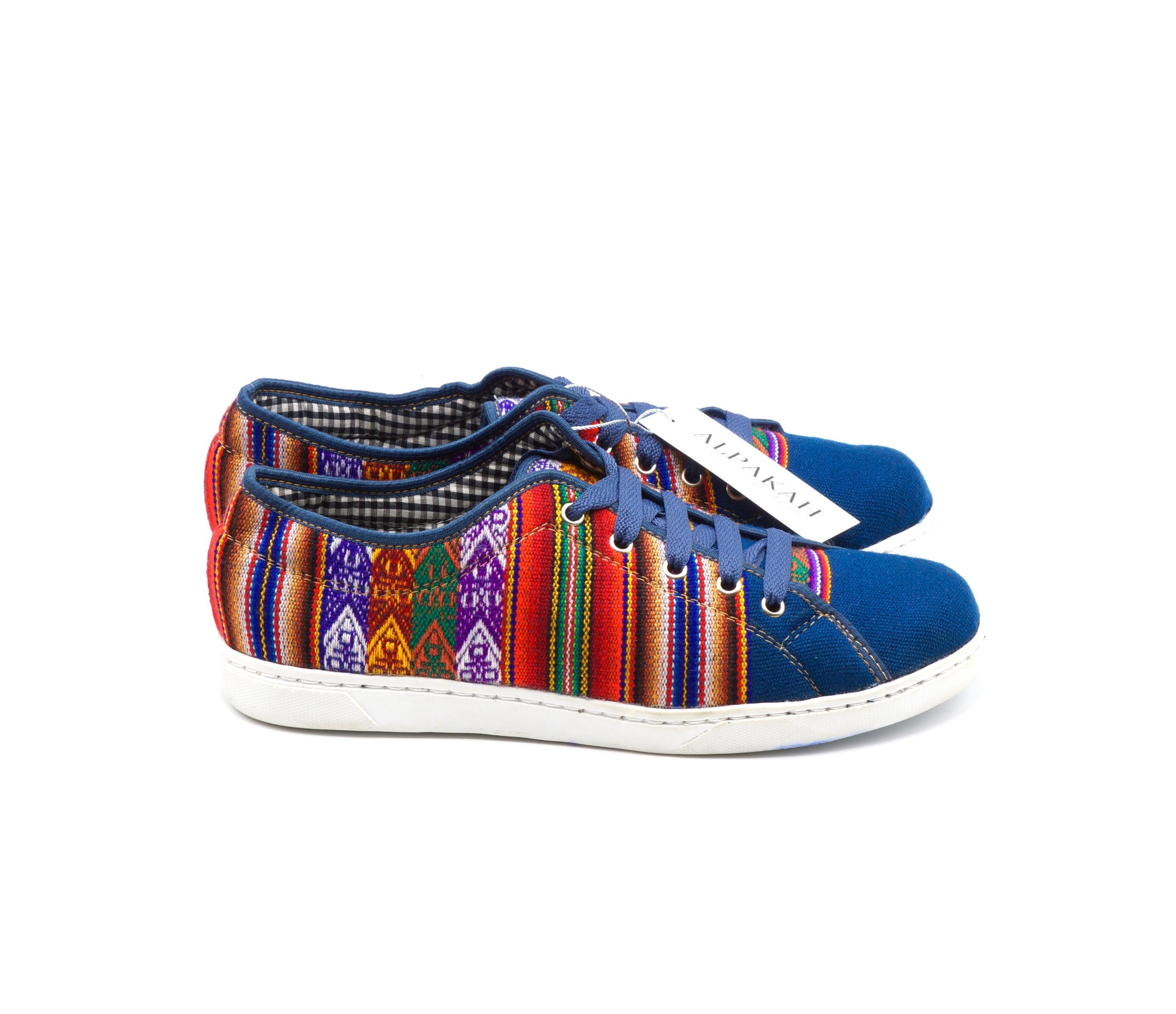 Deze mooie schoenen zijn handgemaakt van exclusieve Peruaanse stof, die perfect zijn vervaardigd in een mooi design. De kleuren symboliseren de vlag van het Incarijk (Tahuantinsuyo).