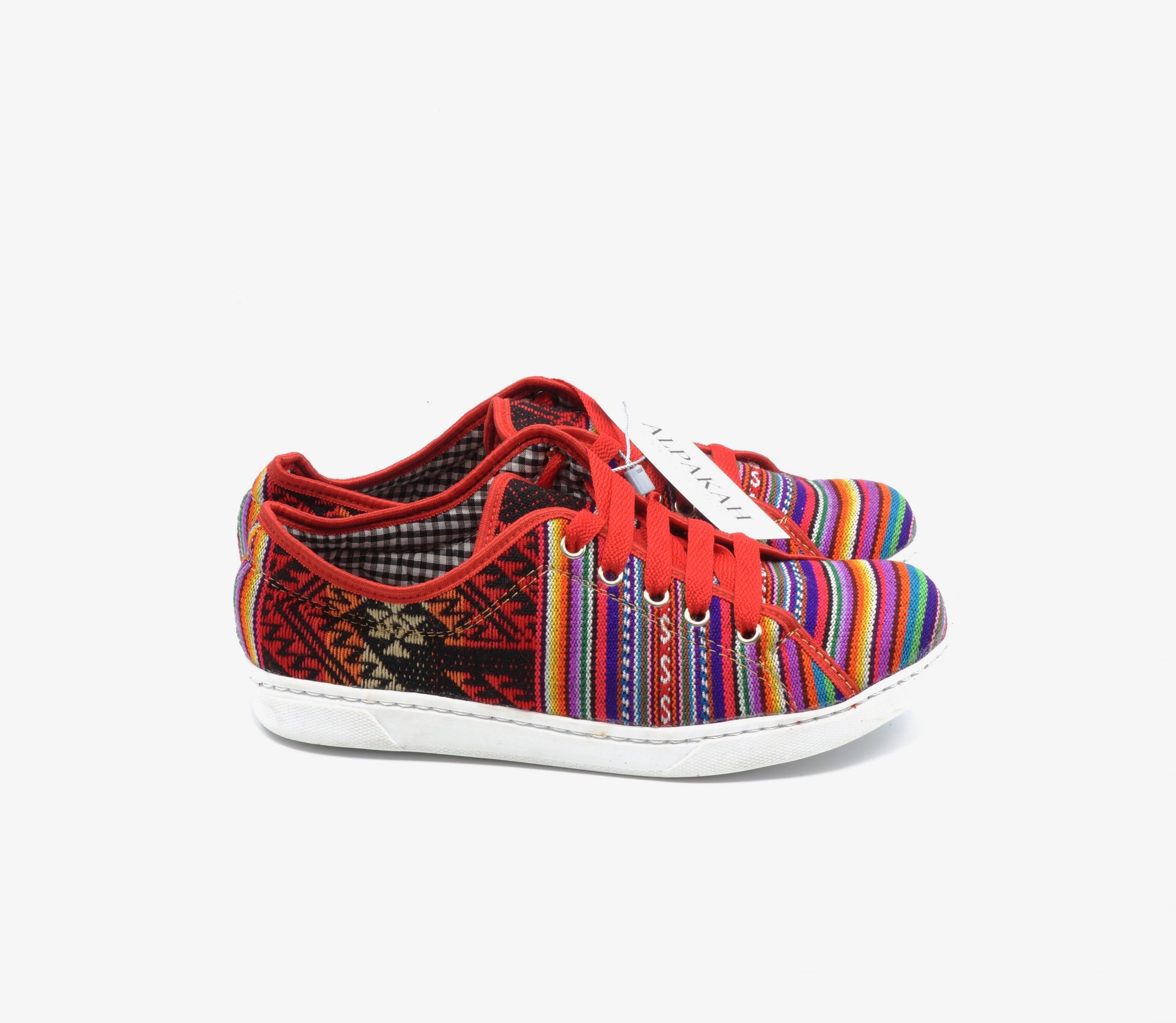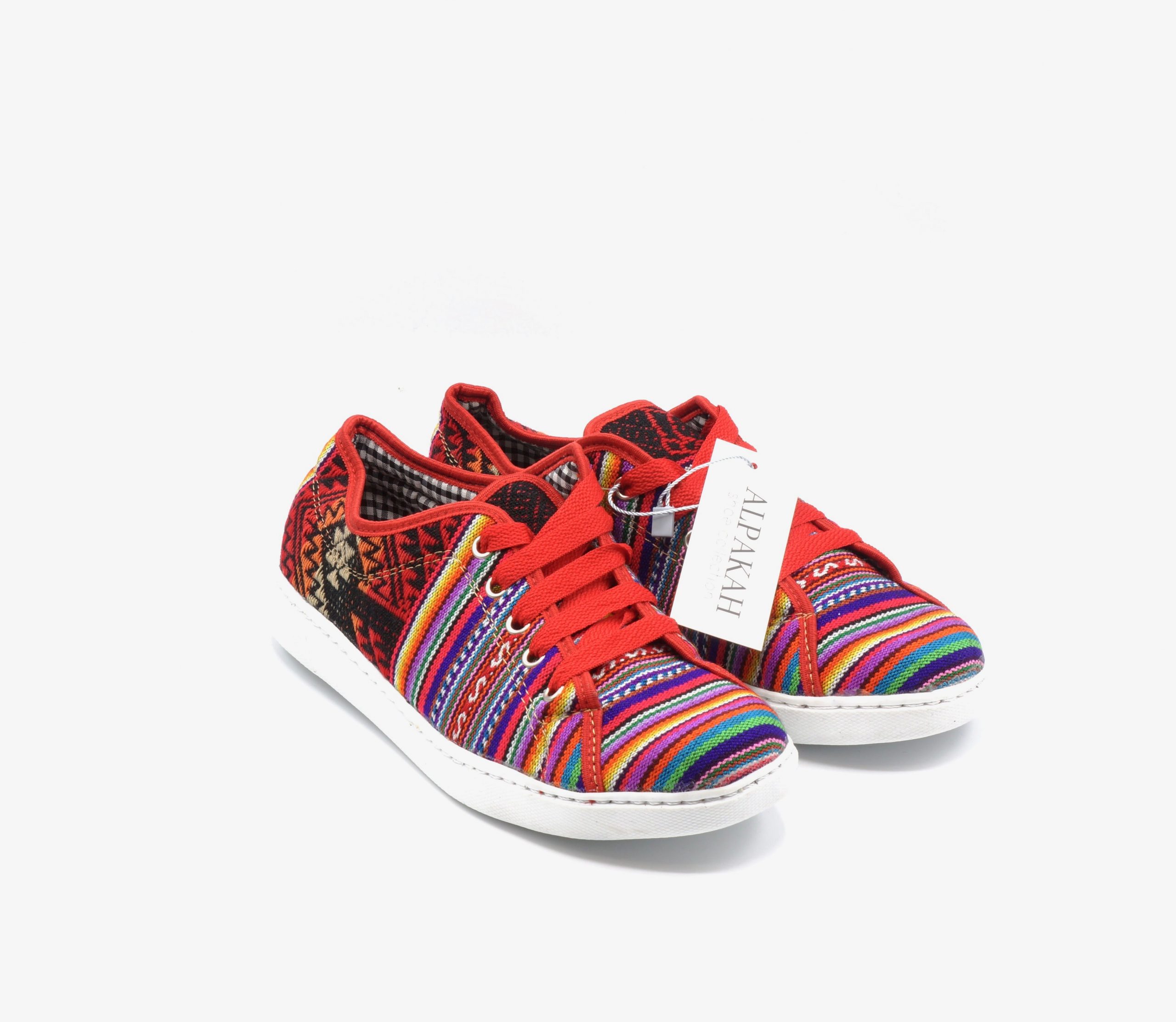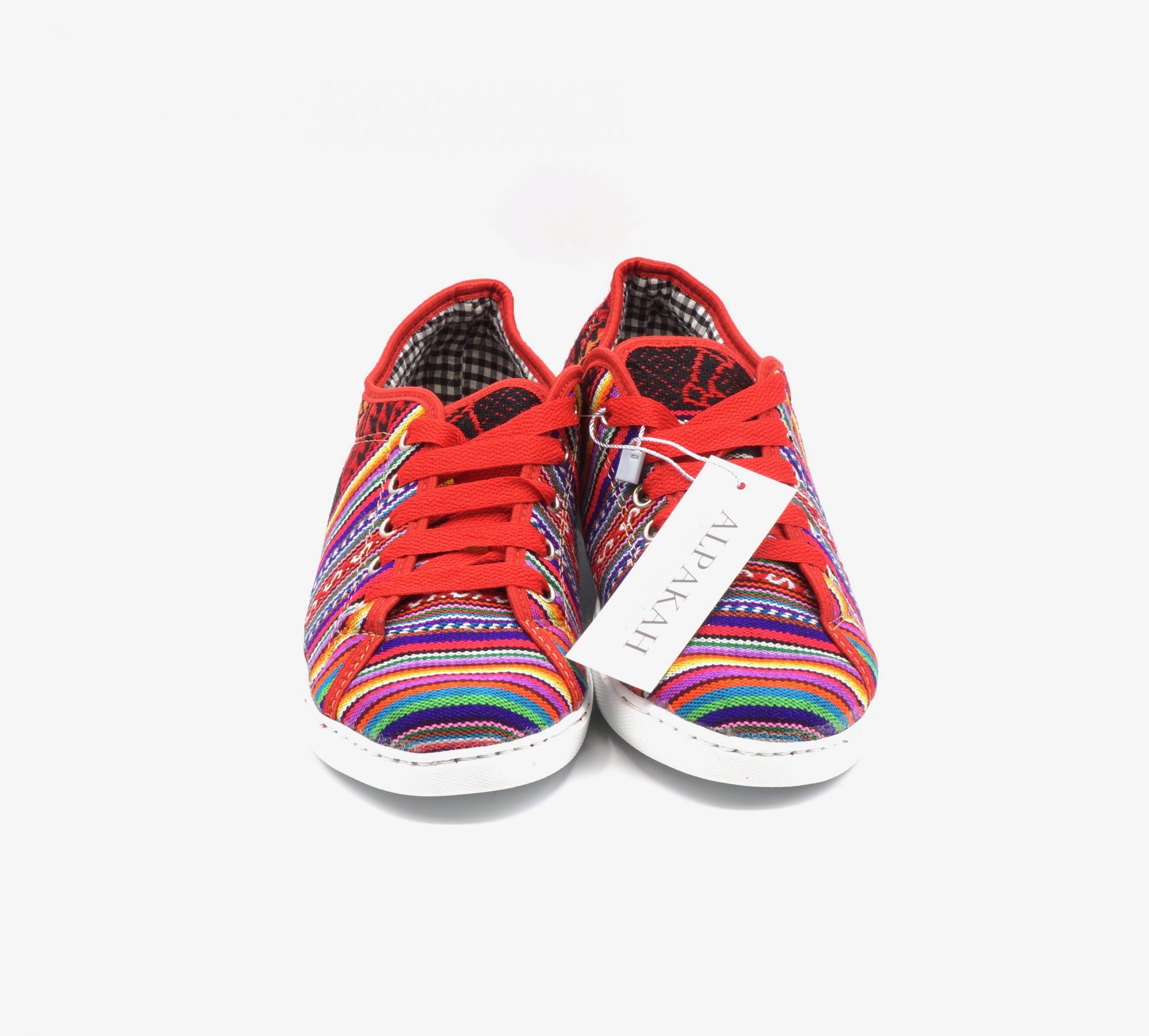 Deze mooie schoenen zijn handgemaakt van exclusieve Peruaanse stof, die perfect zijn vervaardigd in een mooi design. De kleuren symboliseren de vlag van het Incarijk (Tahuantinsuyo).