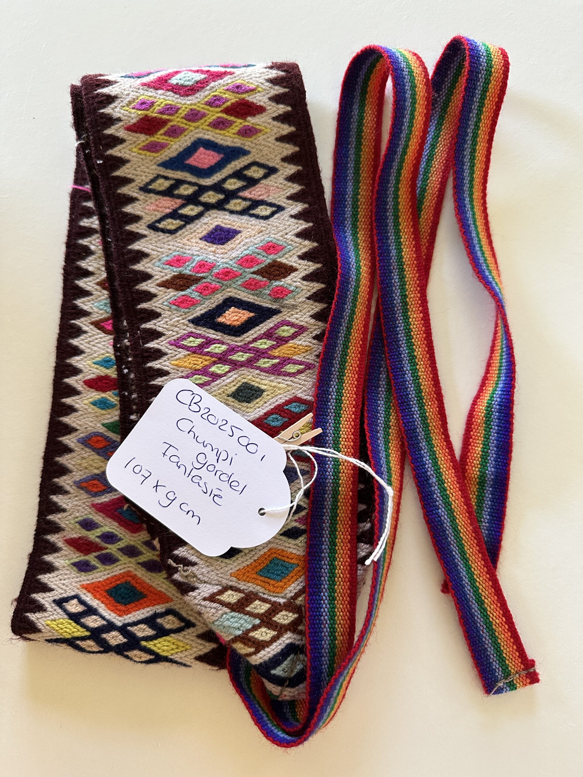 Ten eerste is elke Chumpi Fantasie-gordel een uniek kunstwerk. Met speelse kleurencombinaties en intuïtieve patronen weeft de Q’ero-wever zijn of haar eigen visie op de wereld in het doek. Daardoor is geen enkele gordel hetzelfde, en draag jij iets écht persoonlijks – afgestemd op jouw trilling.