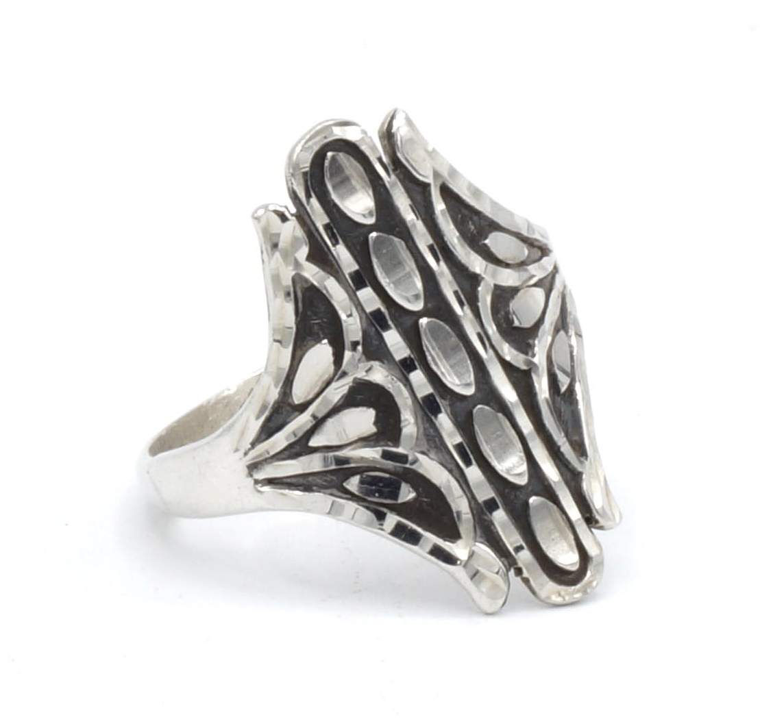 Als u van lichte ringen houdt dan is deze ring perfect voor u! Deze ring is gemaakt door Peruaanse ambachtslieden met zilver met een gehalte van 950 van de beste kwaliteit, en een prachtig geometrisch ontwerp!
