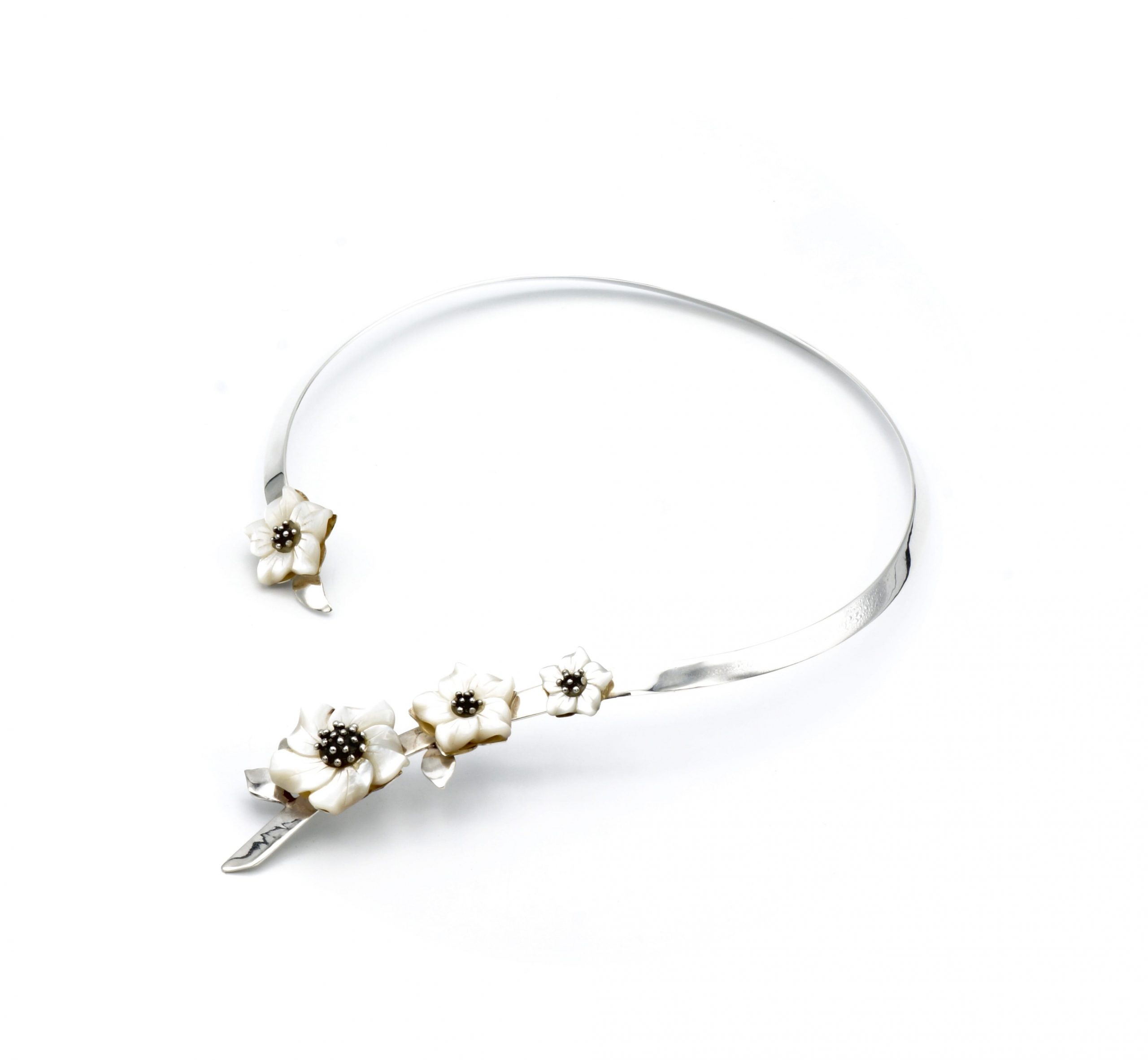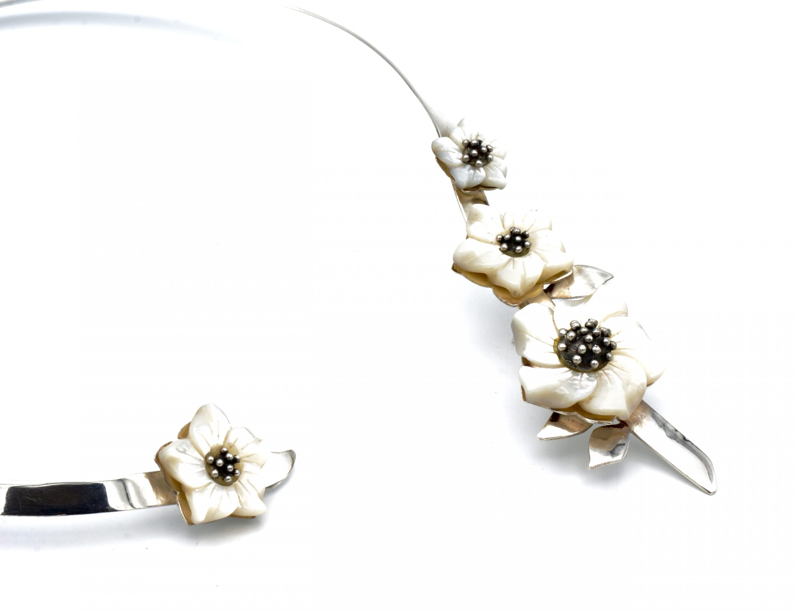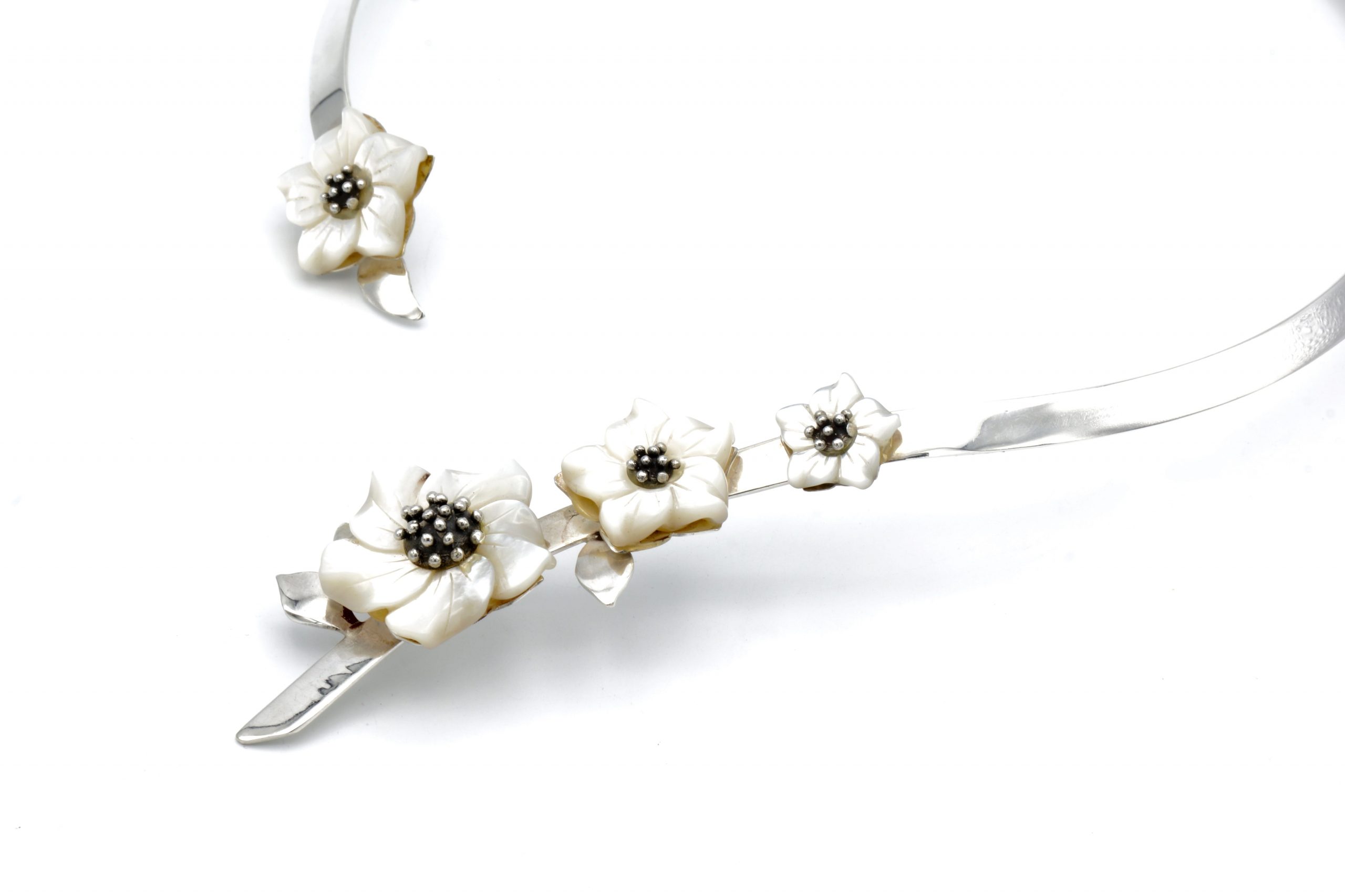 Design bloemen collier met parelmoer