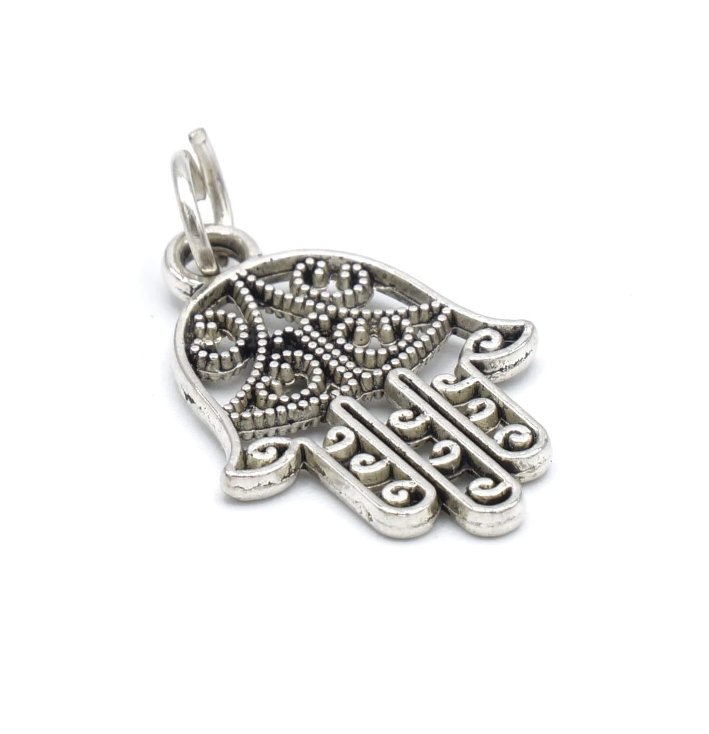 Dit is ons enige hamsa hangetje in onze collectie ontwikkeld door Peruaanse ambachtslieden voor Alpakah by 2be-Aware. De duurzame Duitse zilver zal je leveren een one-of-a-kind hanger dat moeilijk te vinden is. Deze fantasie-bijouterie sieraad is delicaat en dus ook zijn schakel. Hoewel zeer klein, zal het bij de meeste kettingen passen en altijd opvallen. Zoals bij alle producten, we hebben er slechts één op voorraad. Verwen uzelf met deze unieke en aparte hanger!