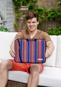 Bent u op zoek naar een aparte case voor uw laptop? Dan is deze case perfect voor u! De case is geschikt voor een laptop en tegelijkertijd bewaart het uw spullen in goede conditie. Ook heeft deze case een ruim vak dat gesloten kan worden door middel van een rits. Deze case is gemakkelijk te dragen vanwege zijn speciale handvaten. Hij is handgemaakt door Peruaanse ambachtslieden met duurzame en echte Peruaanse stof (Manto Andino). Wij hebben slechts er één van op voorraad dus bestel hem nu!