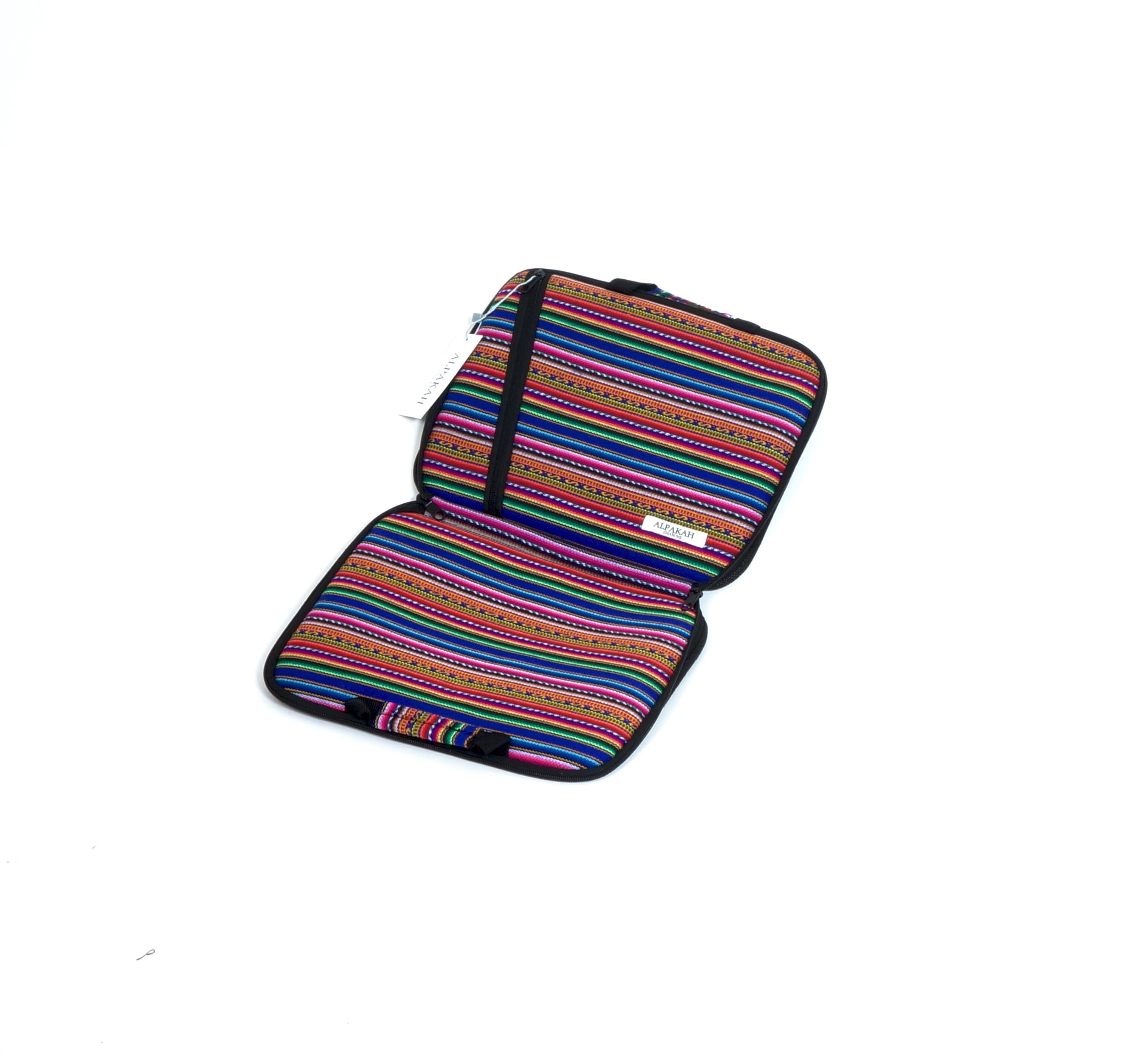 Bent u op zoek naar een unieke case voor uw tablet? Dan is deze case perfect voor u! De case is geschikt voor een tablet en tegelijkertijd bewaart het uw spullen in goede conditie. Ook heeft deze case een ruim vak dat gesloten kan worden door middel van een rits. Deze case is gemakkelijk te dragen vanwege zijn speciale handvaten. Hij is handgemaakt door Peruaanse ambachtslieden met duurzame en echte Peruaanse stof (Manto Andino). Wij hebben slechts er één van op voorraad.