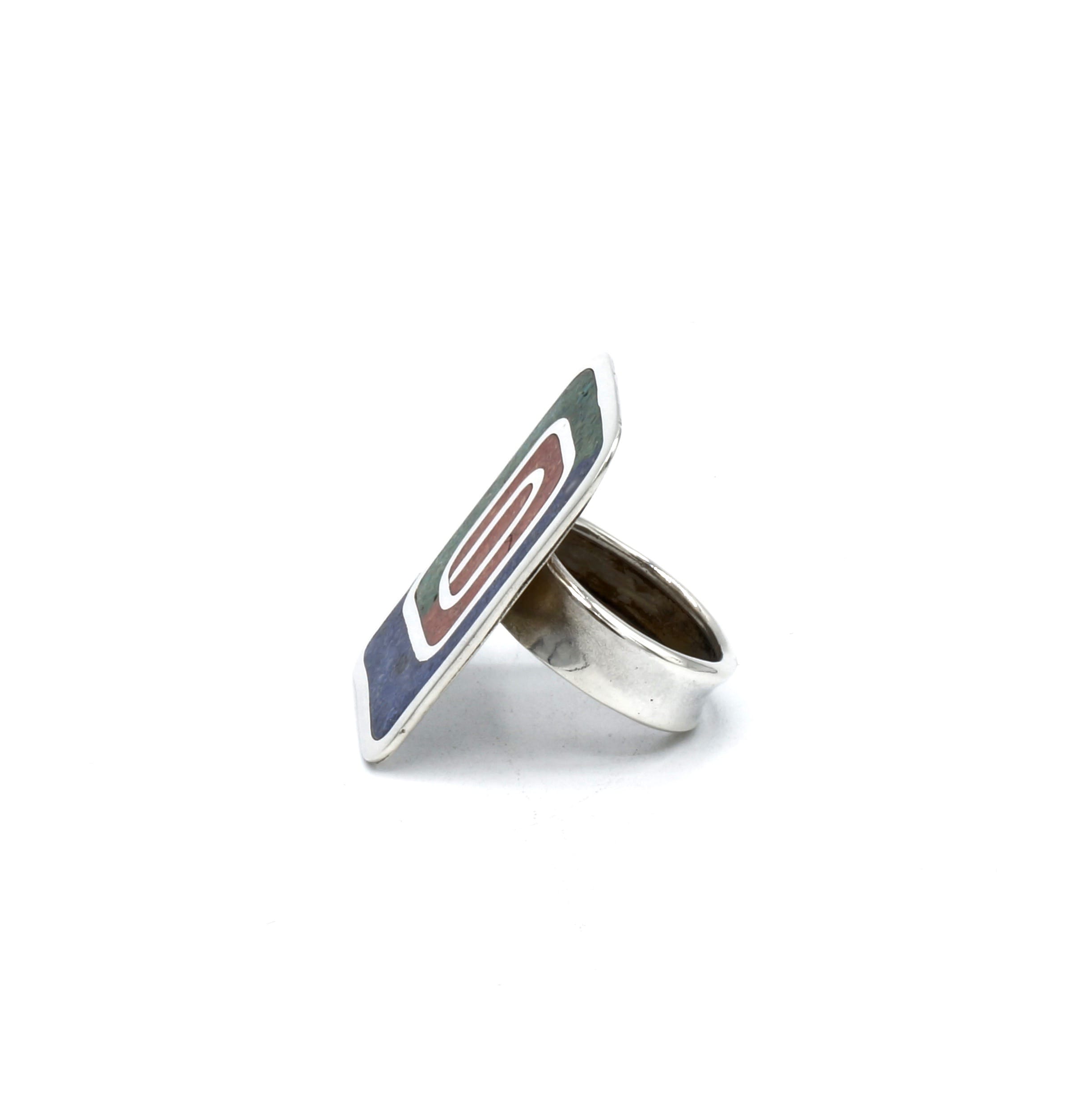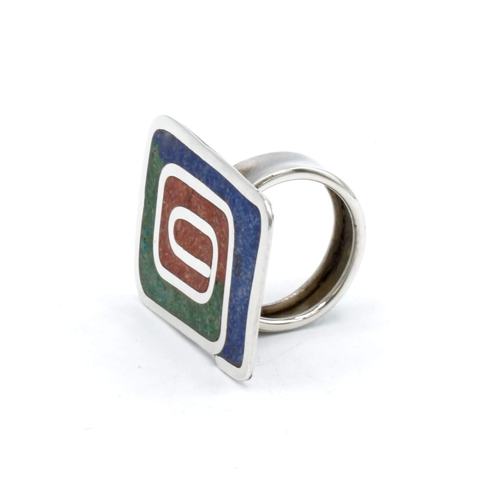 Inca zilveren ring met stenen