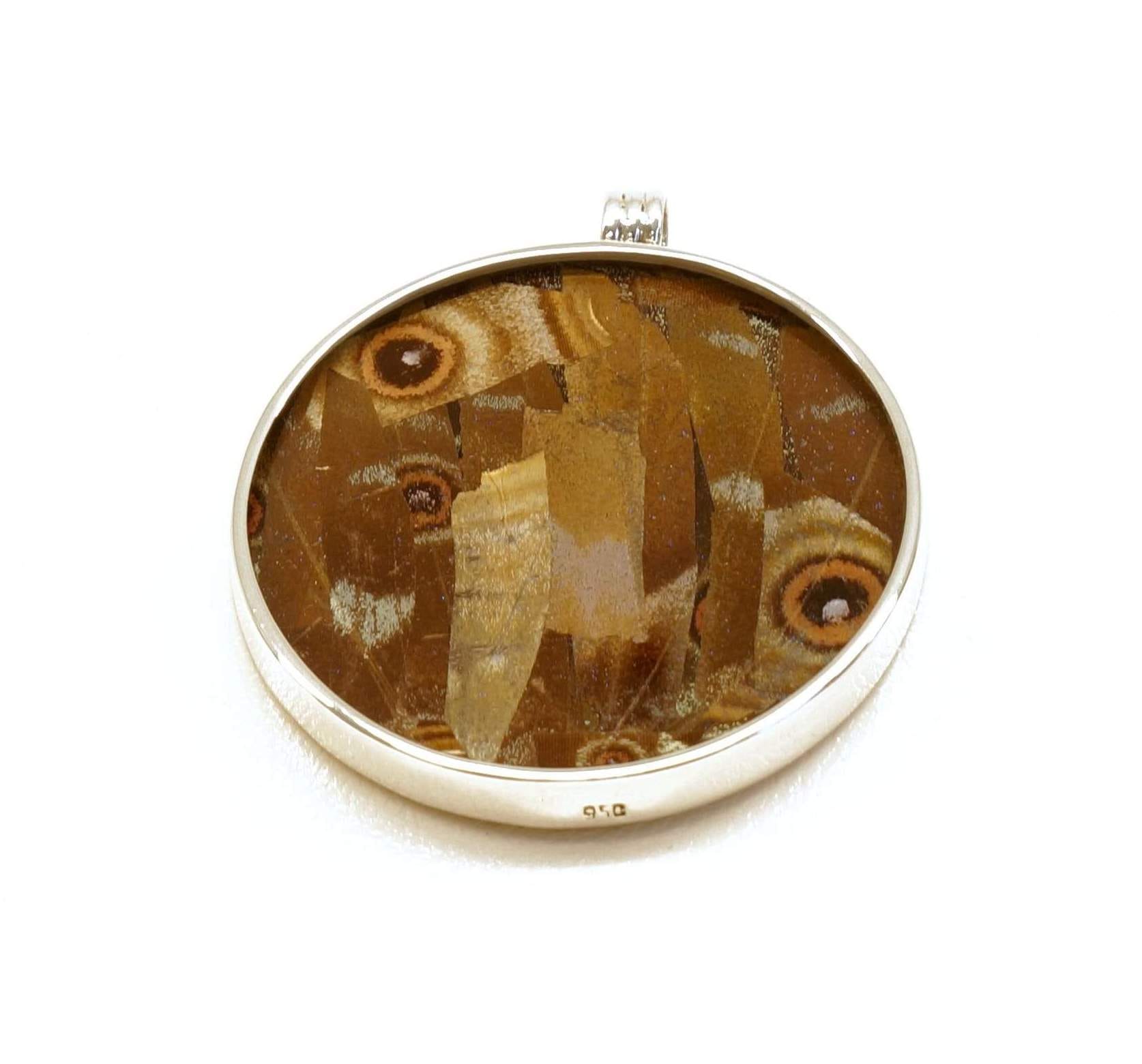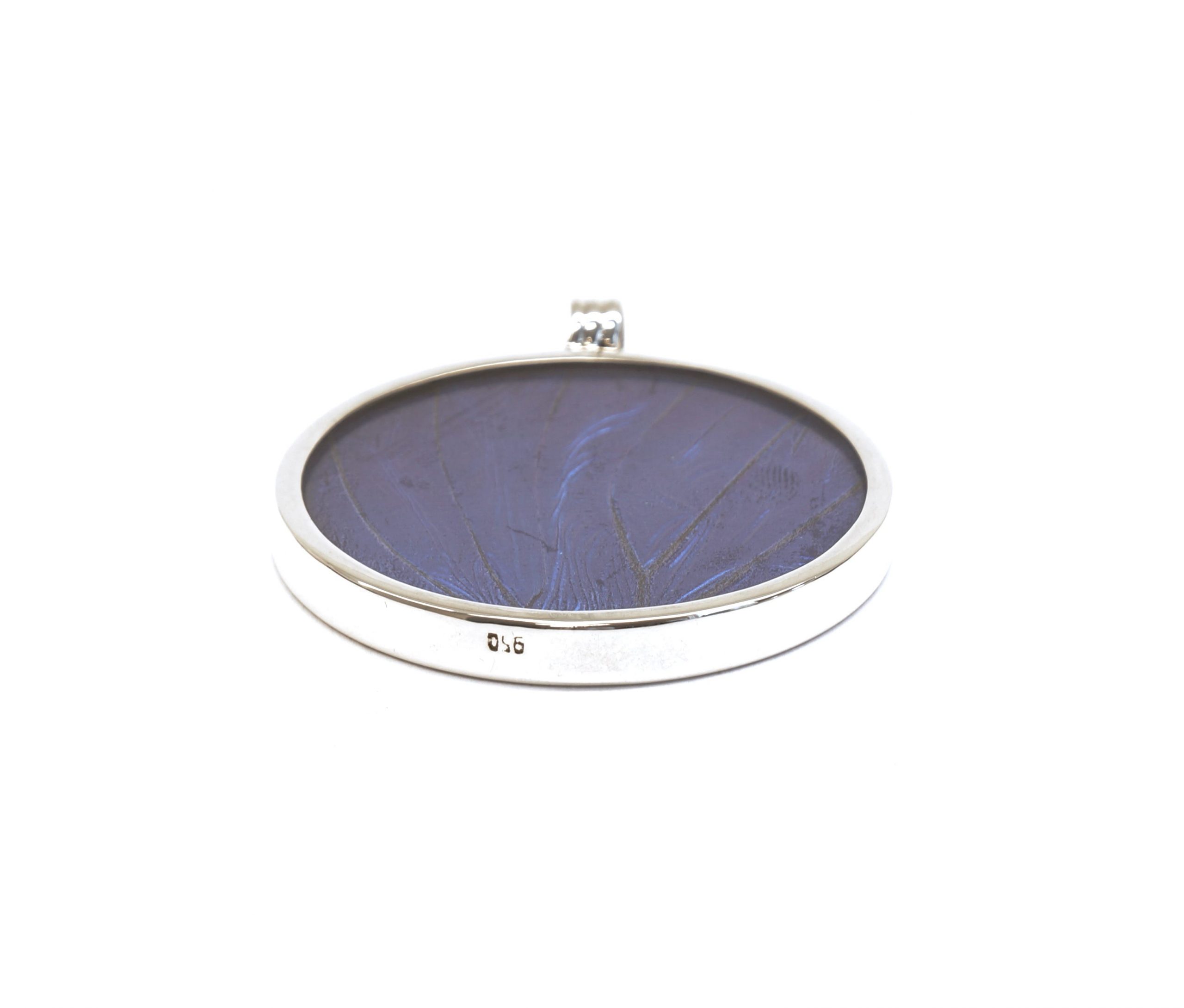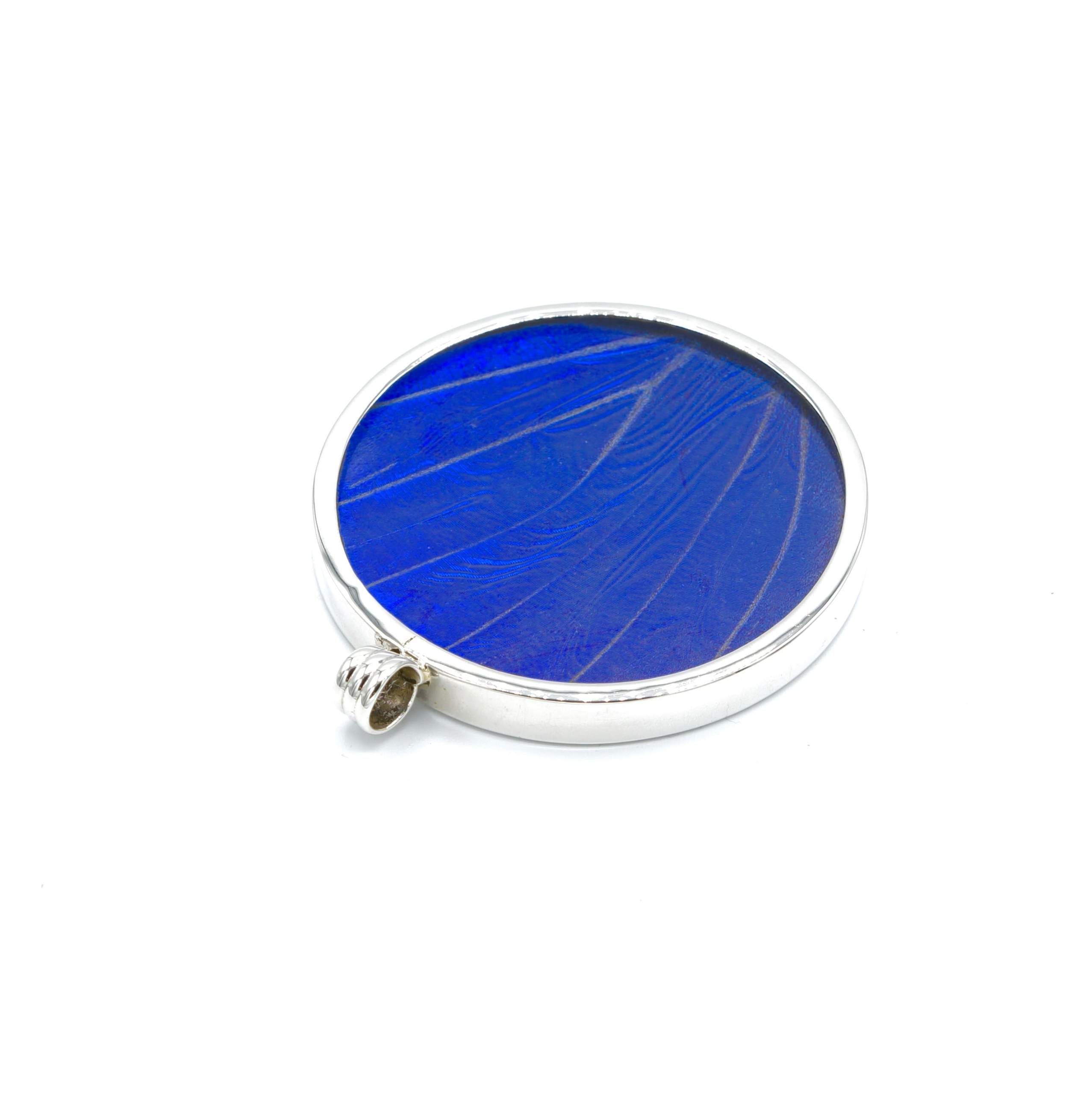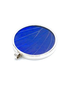 - Luxe zilveren medaillon/hanger ingelegd met de vleugel van de Morpho Helena vlinder