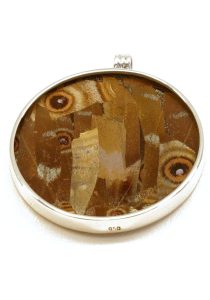 Dit medaillon is dubbelzijdig: de ene kant toont het prachtige blauw, de ander kant het opmerkelijke bruin van de vleugels. U krijgt twee bijzondere medaillons in één!