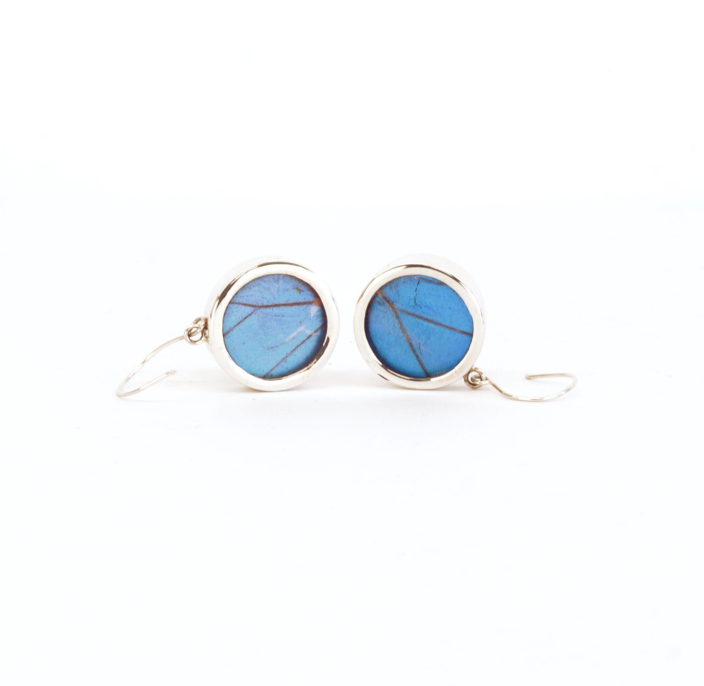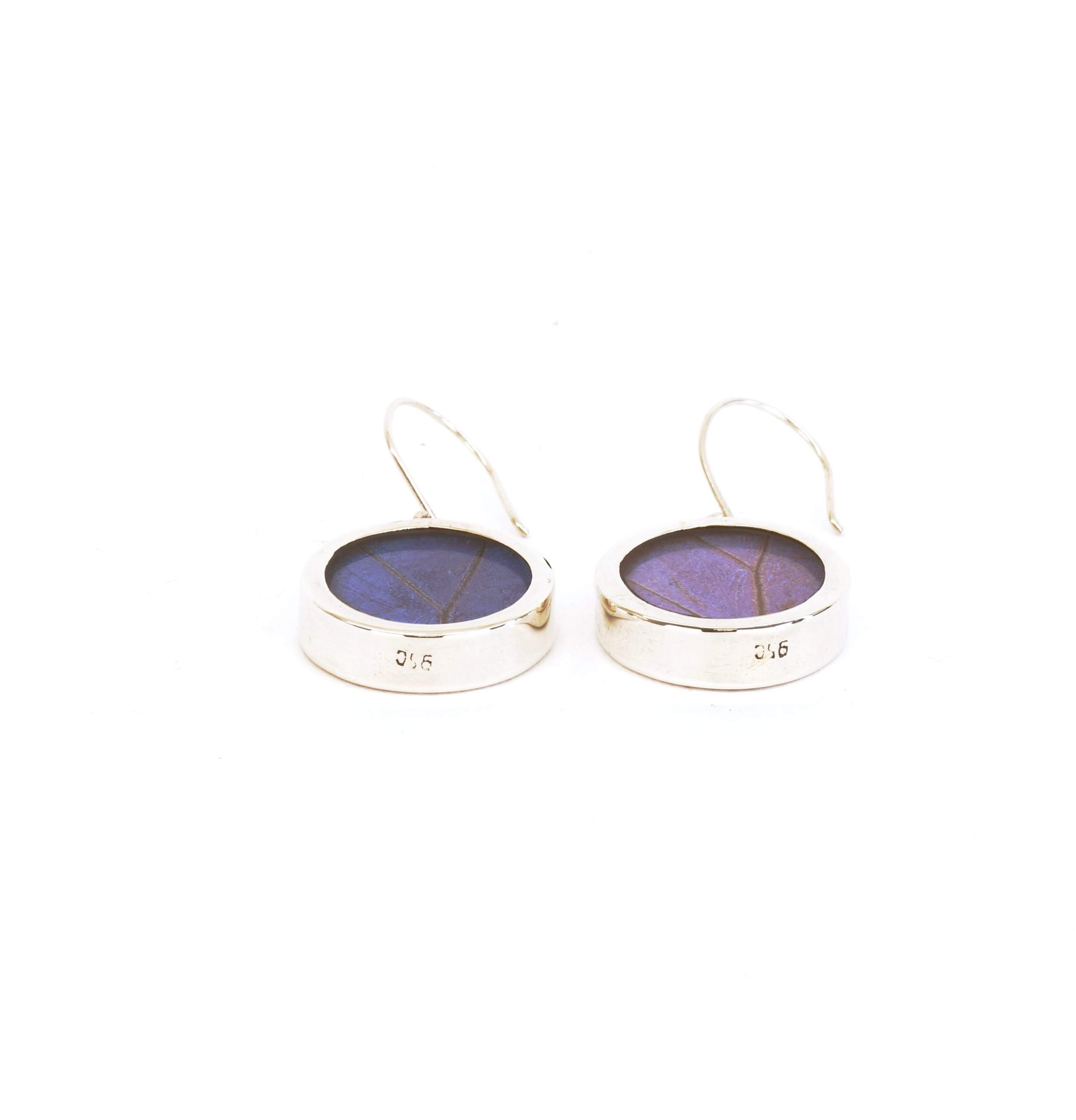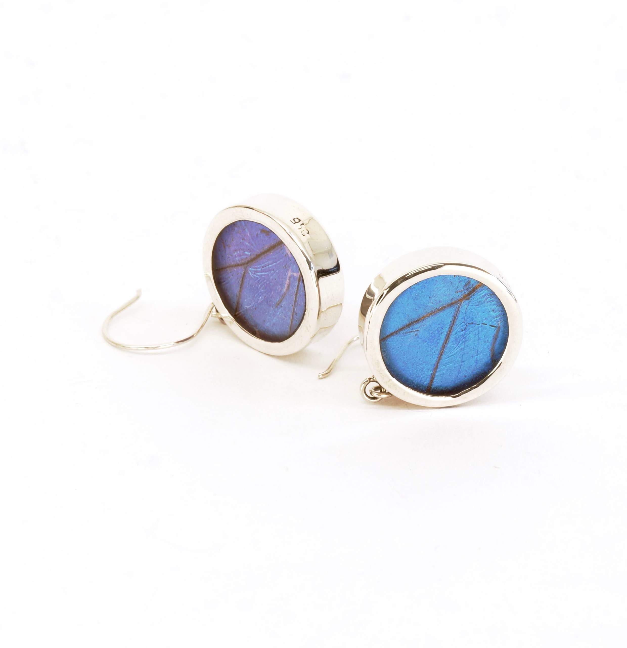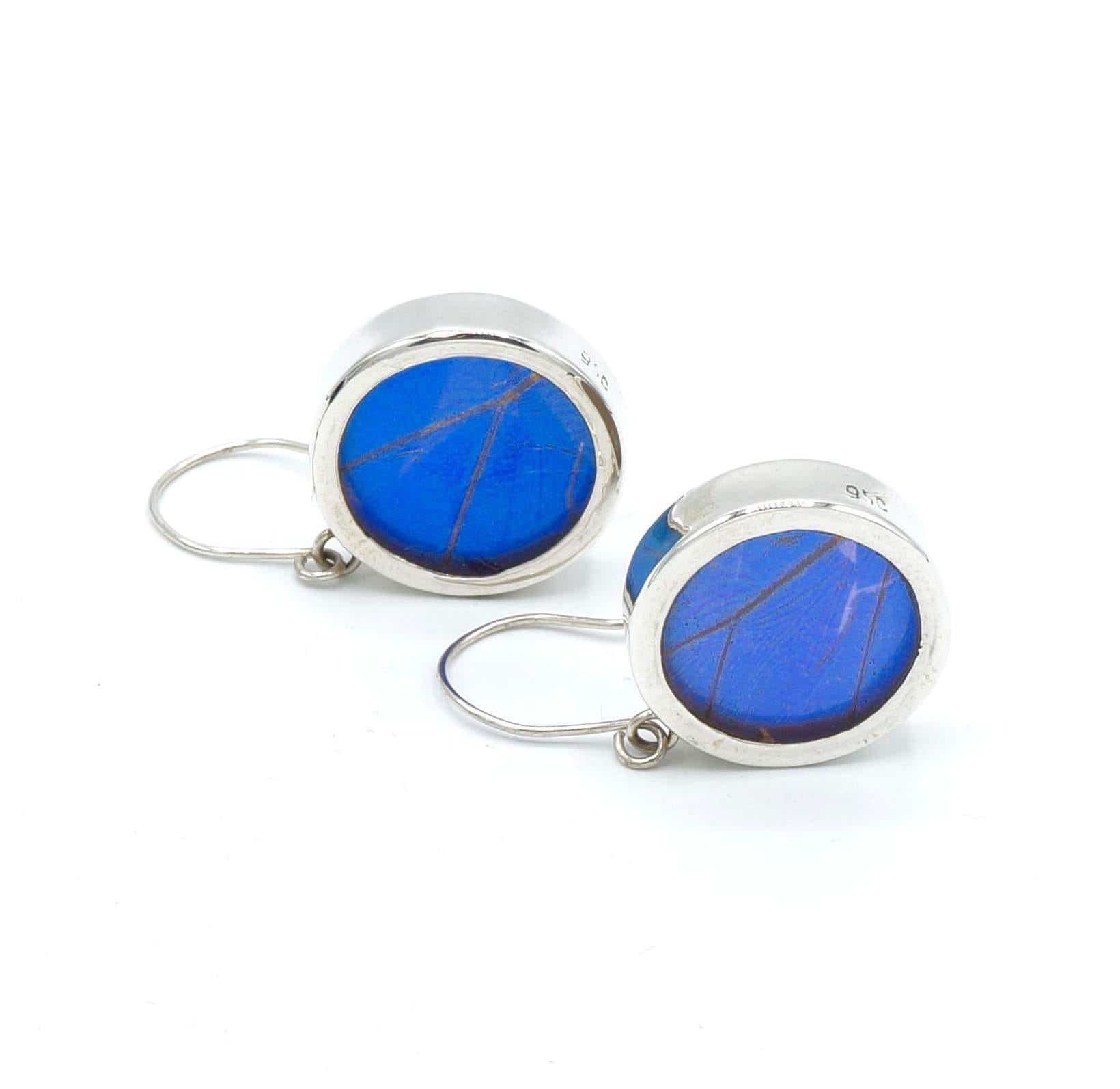 - Luxe zilveren oorbellen ingelegd met de vleugel van de Morpho Helena vlinder