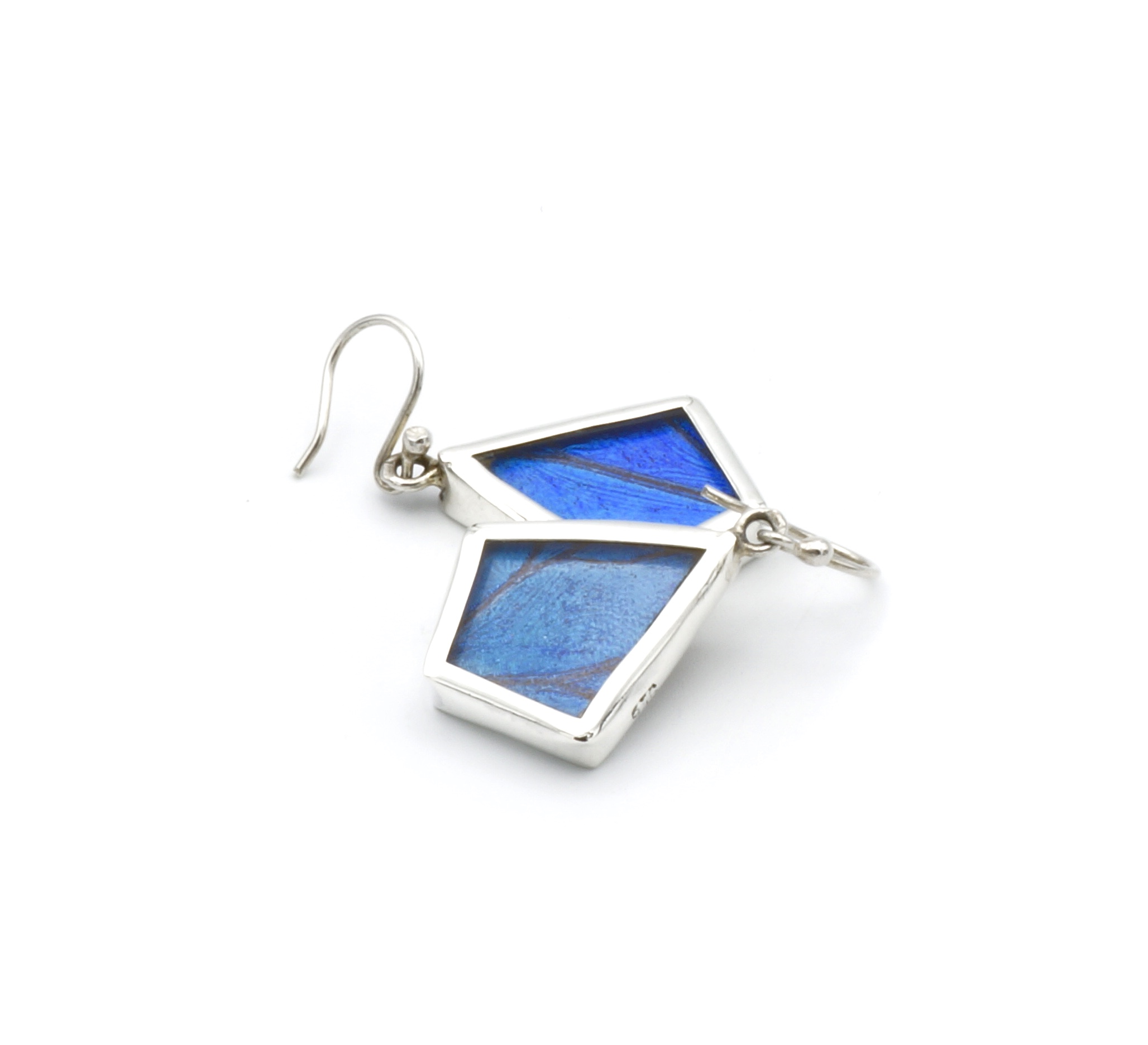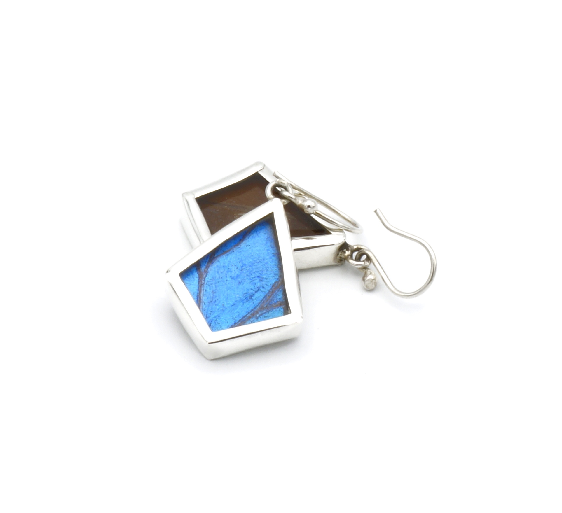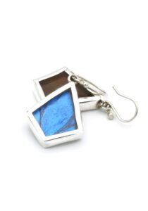 - Luxe zilveren oorbellen ingelegd met de vleugel van de Morpho Helena vlinder