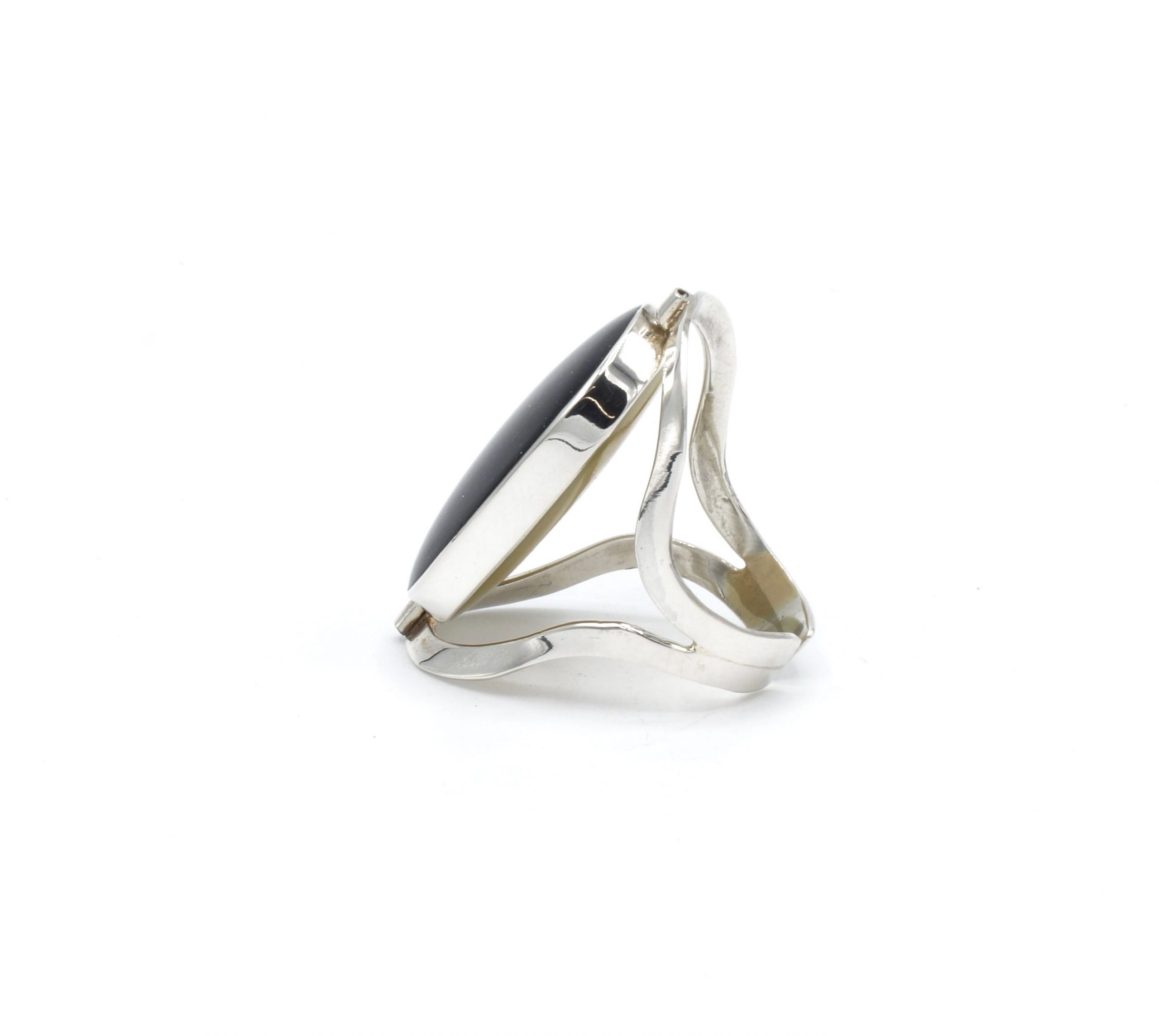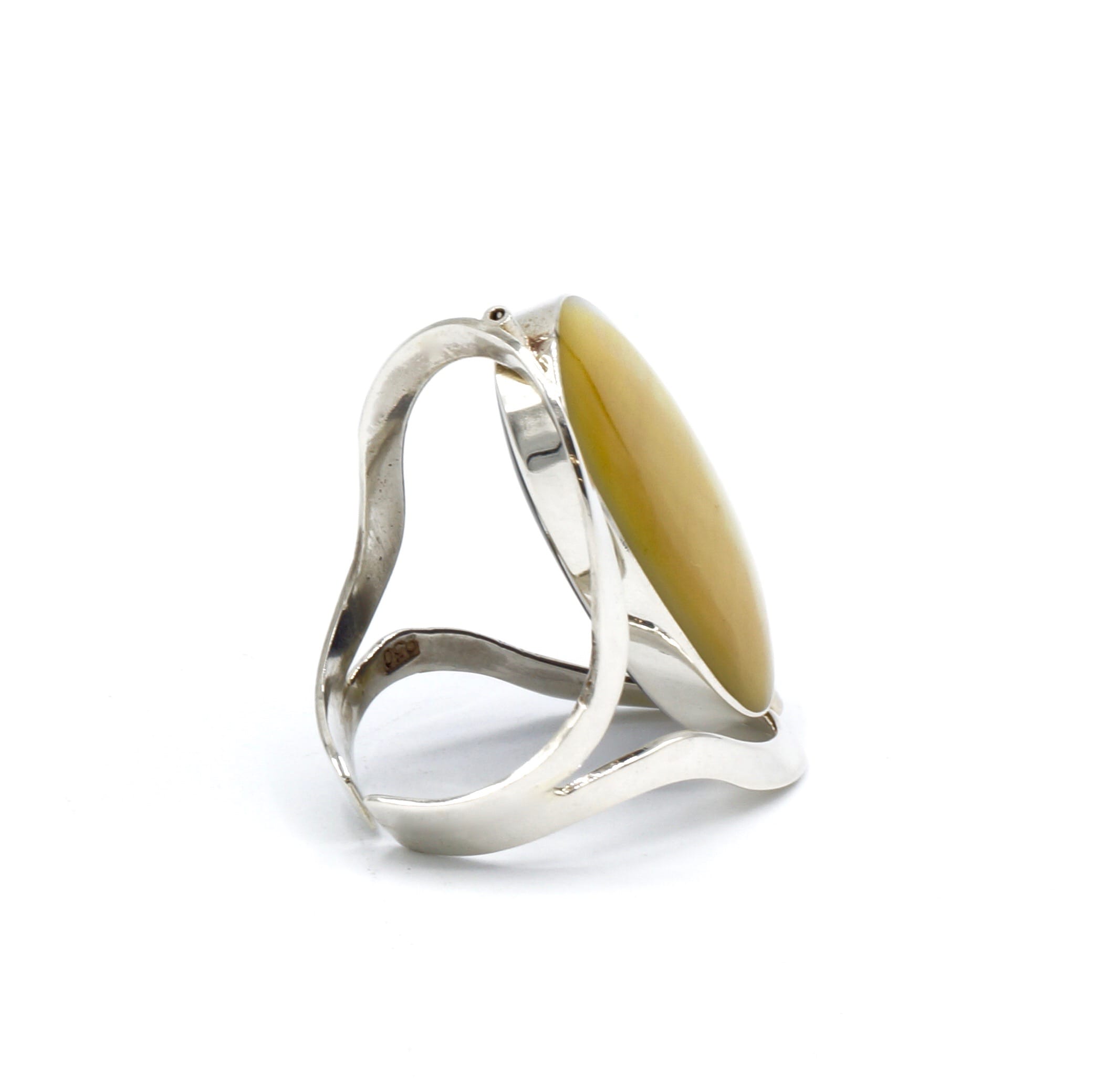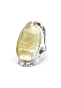 Als u van dubbelzijdige ringen houdt dan is deze ring perfect voor u! Deze ring is gemaakt door Peruaanse ambachtslieden met een Tijgeroog steen, geel parlemoer en zilver met een gehalte van 950 van de beste kwaliteit.