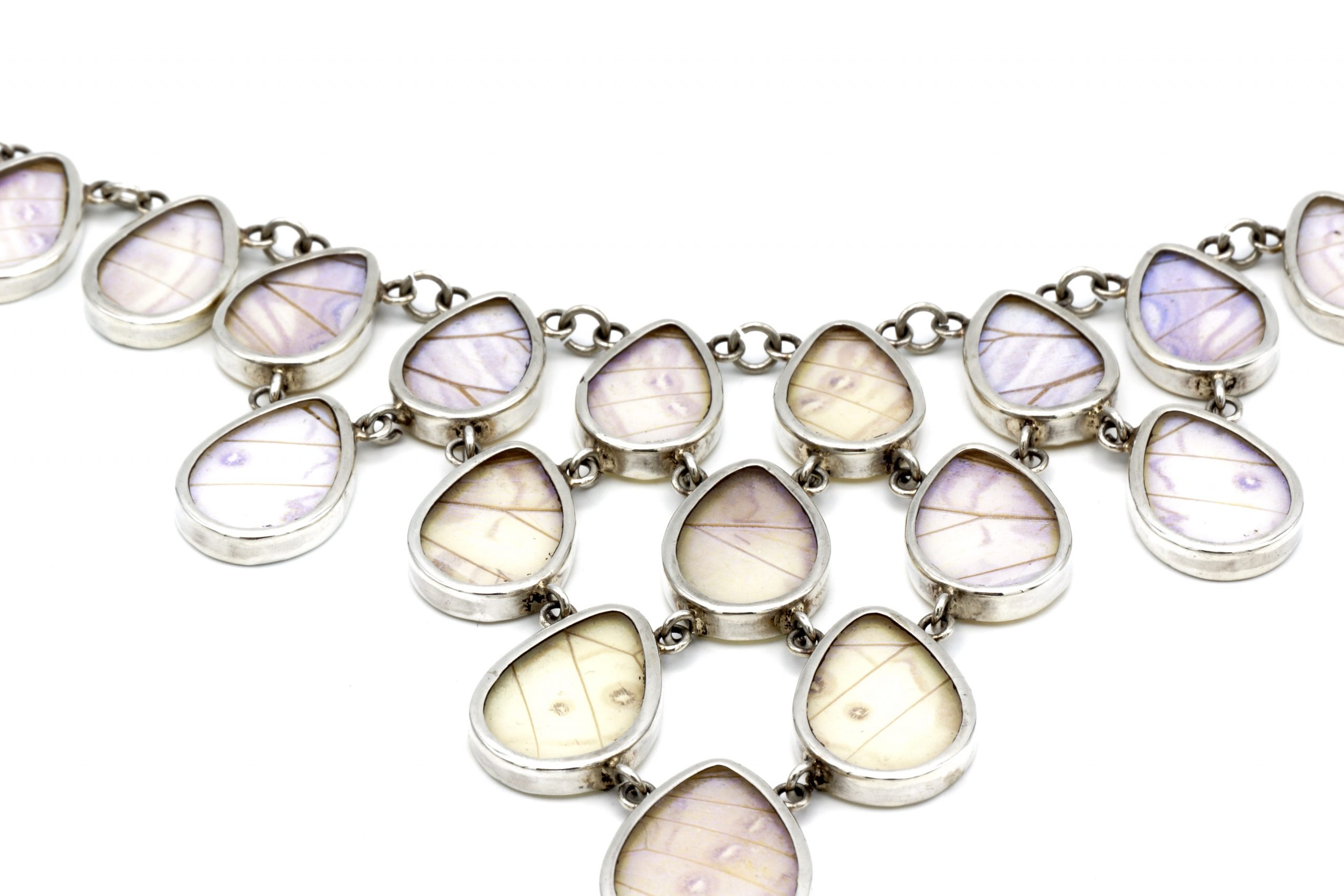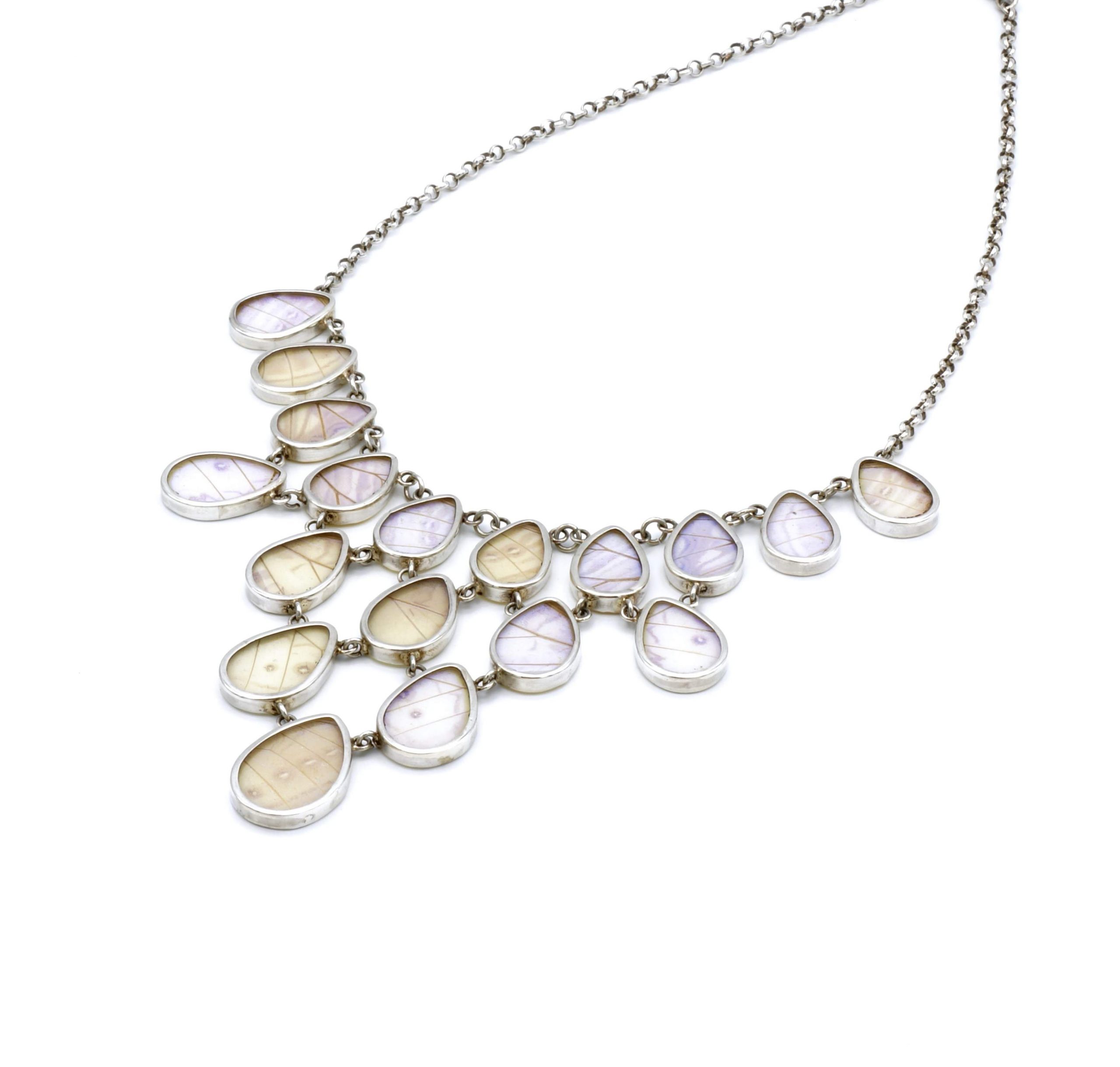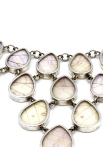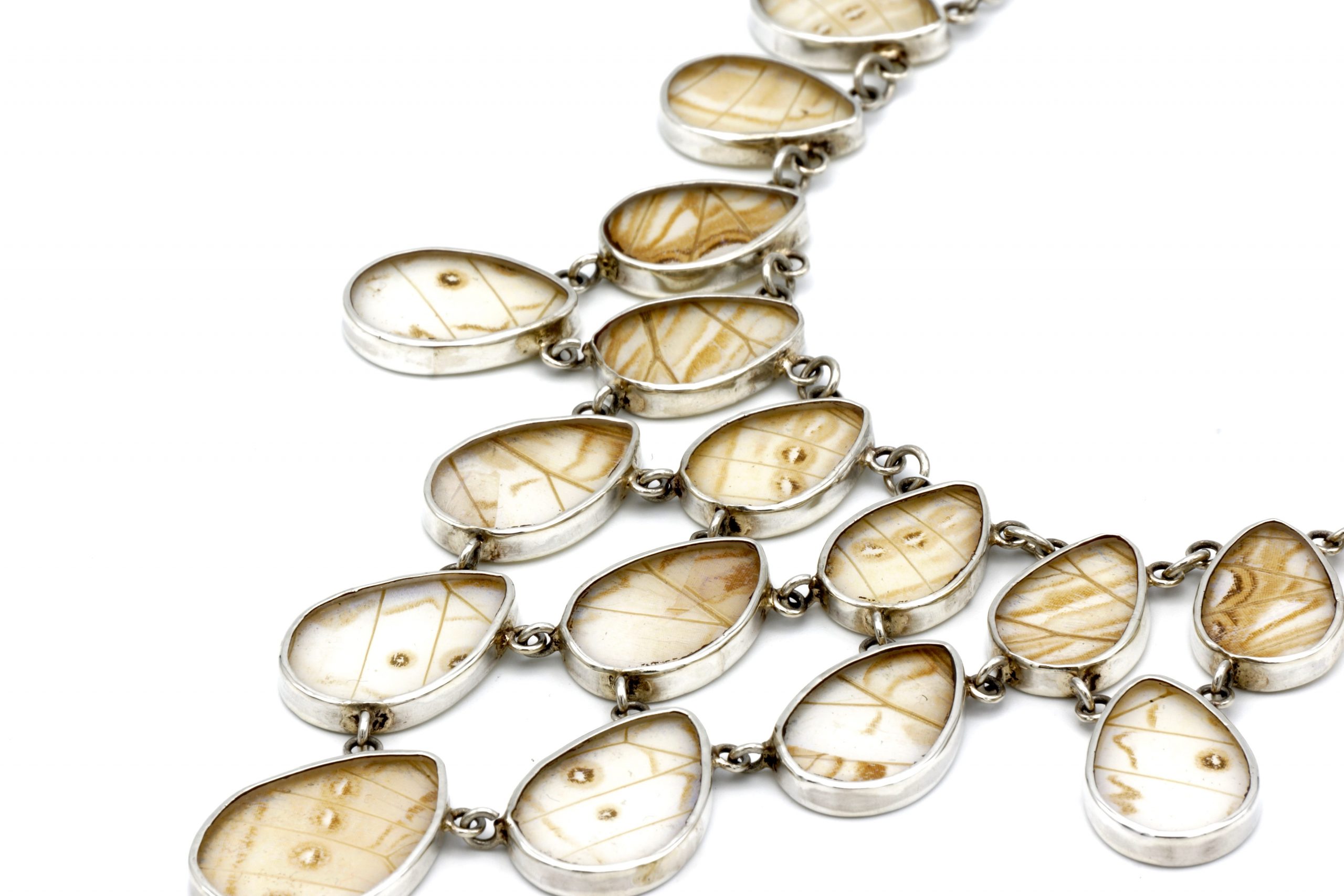 - Luxe zilveren collier ingelegd met de vleugels van de Morpho sulkowski vlinder