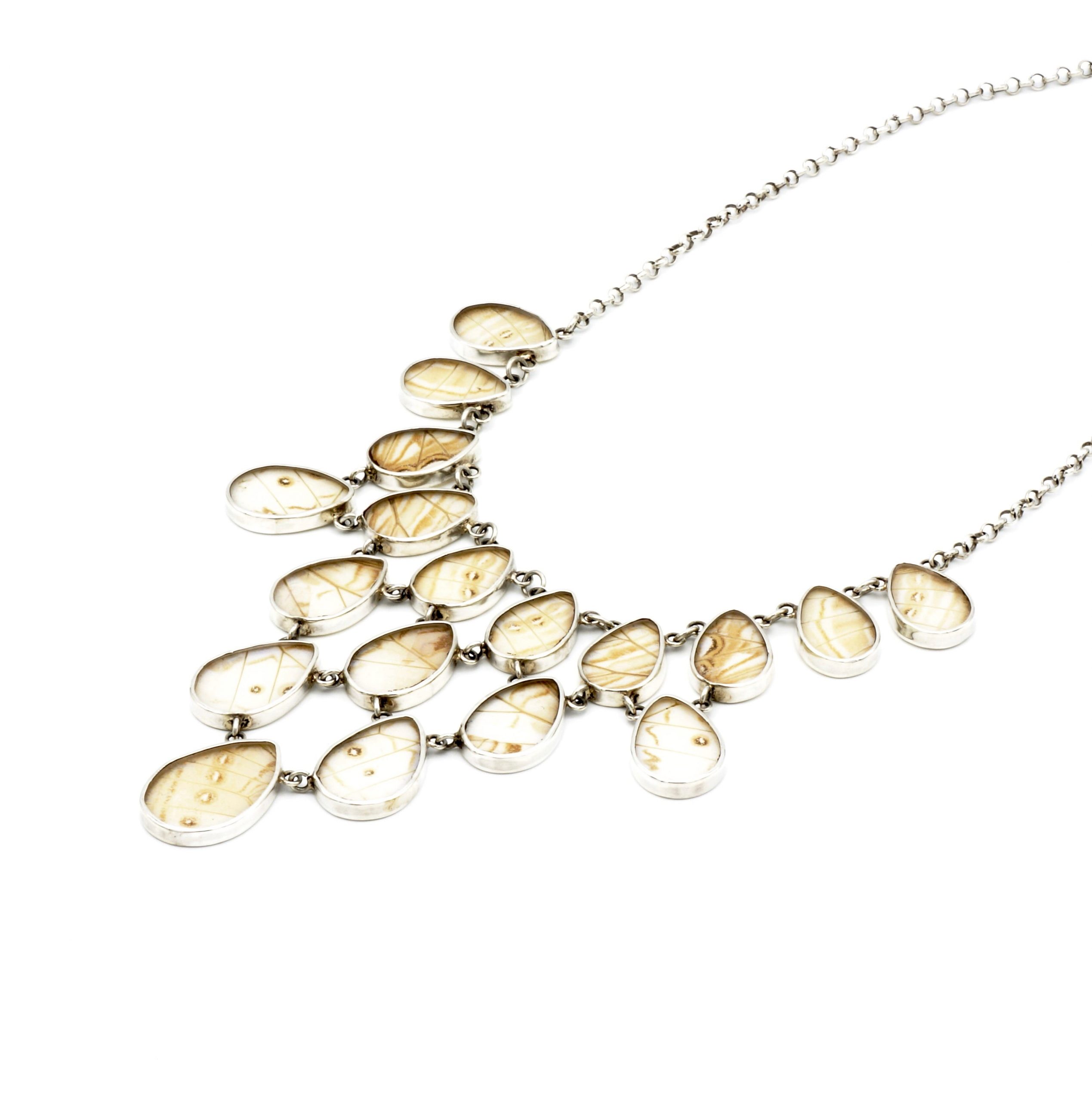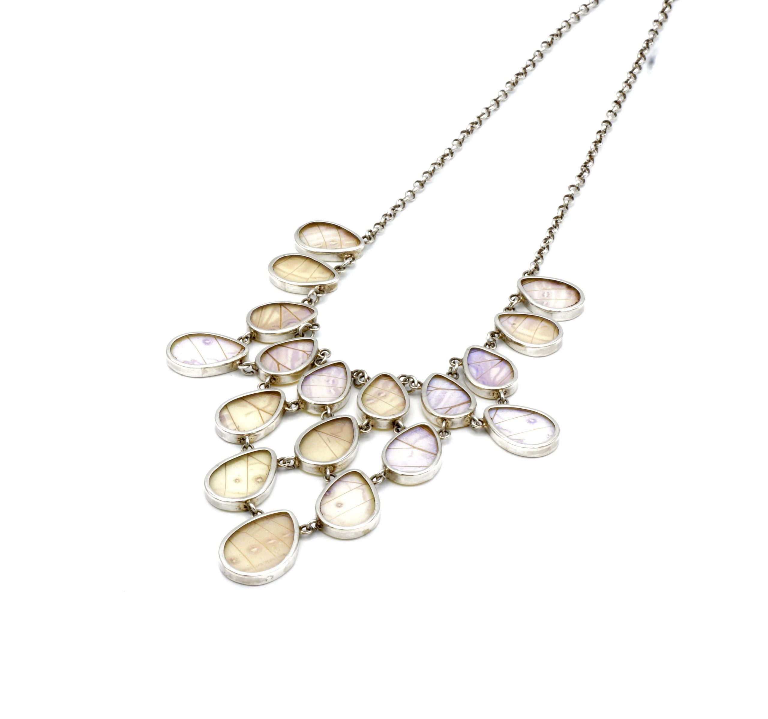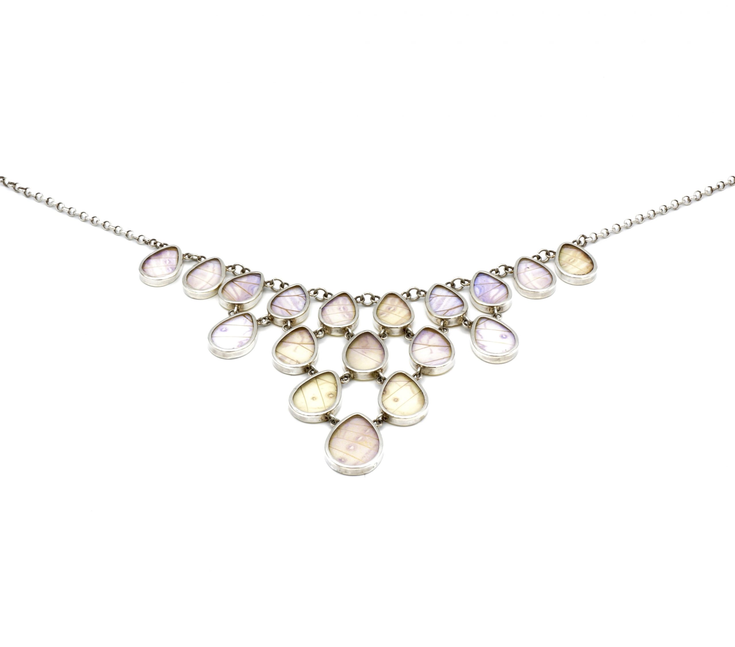 - Luxe zilveren collier ingelegd met de vleugels van de Morpho sulkowski vlinder