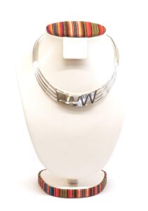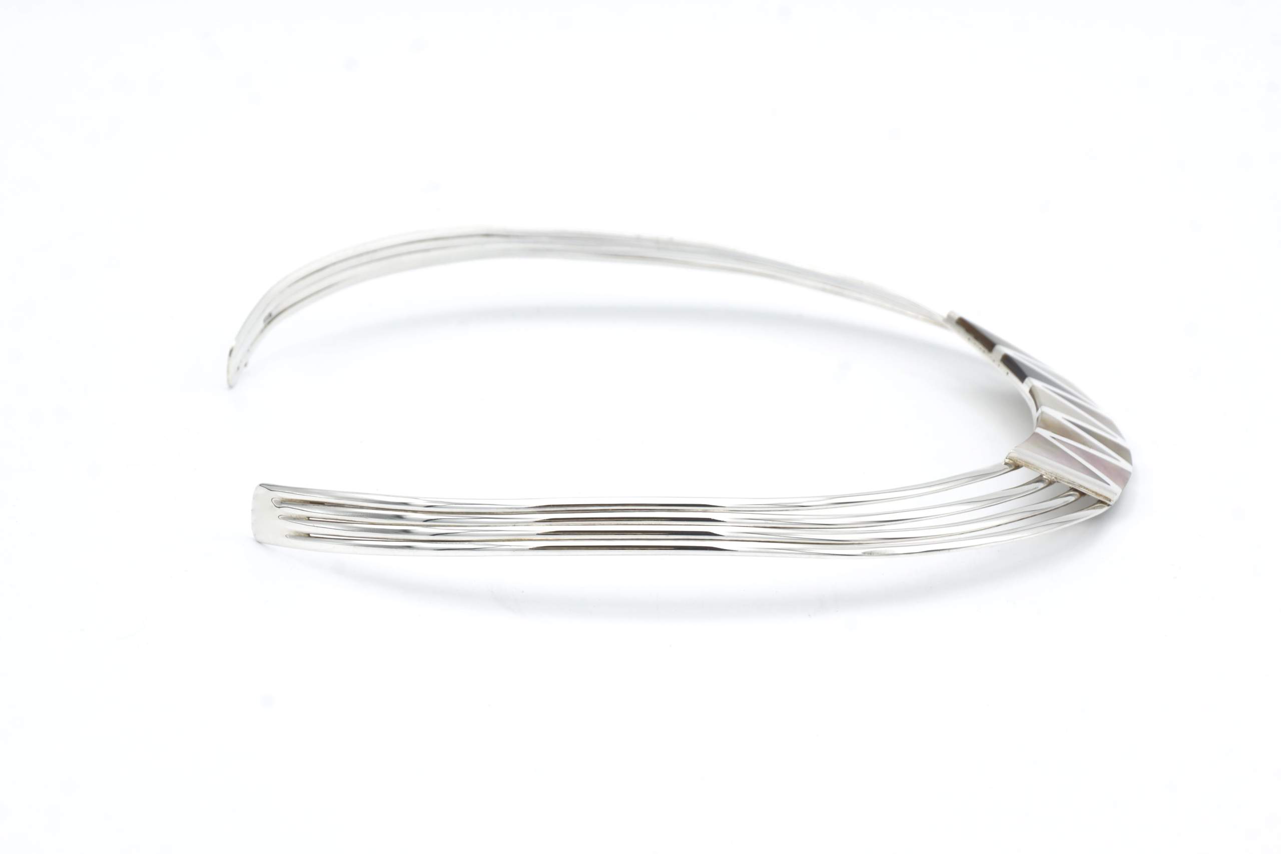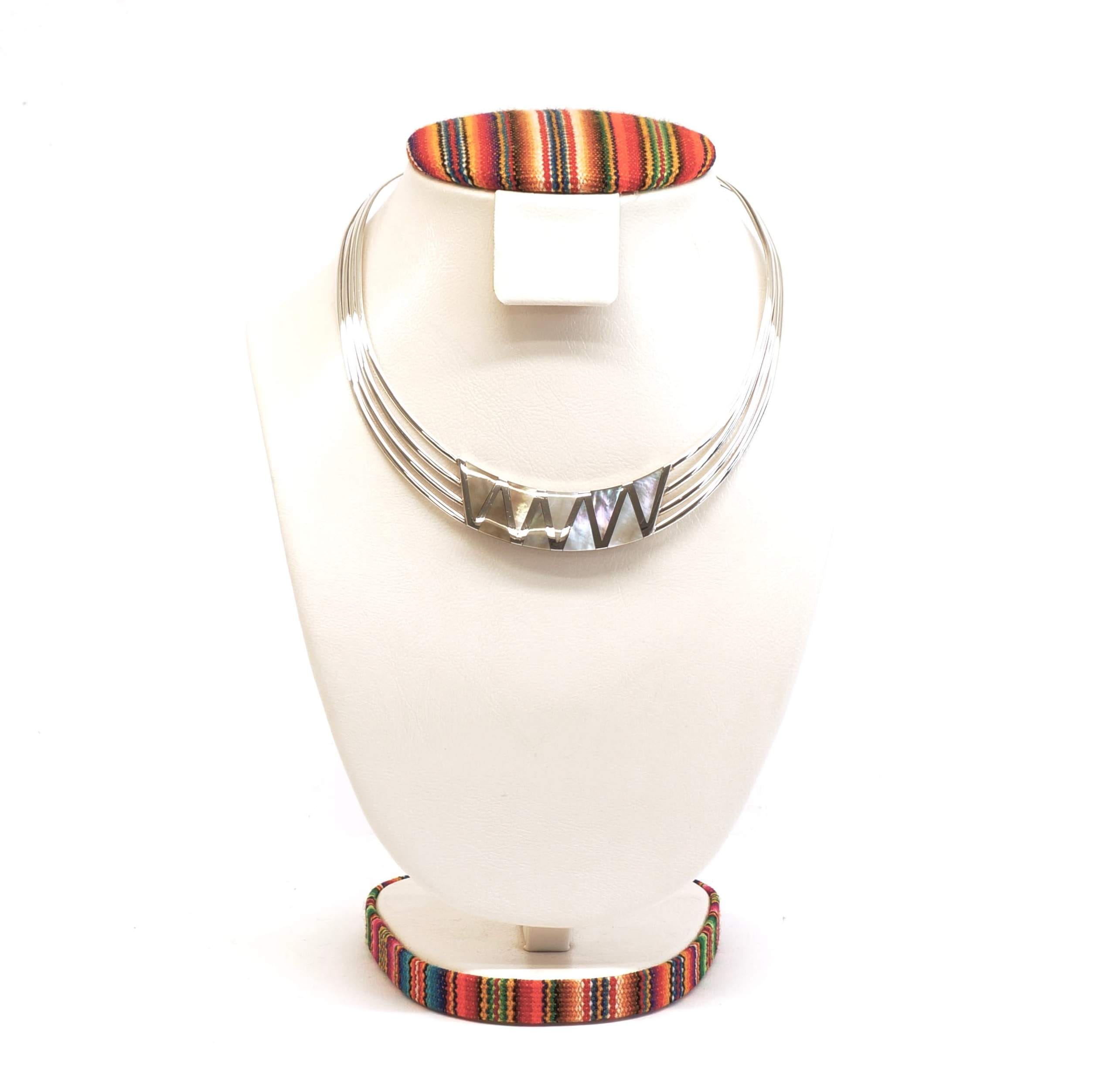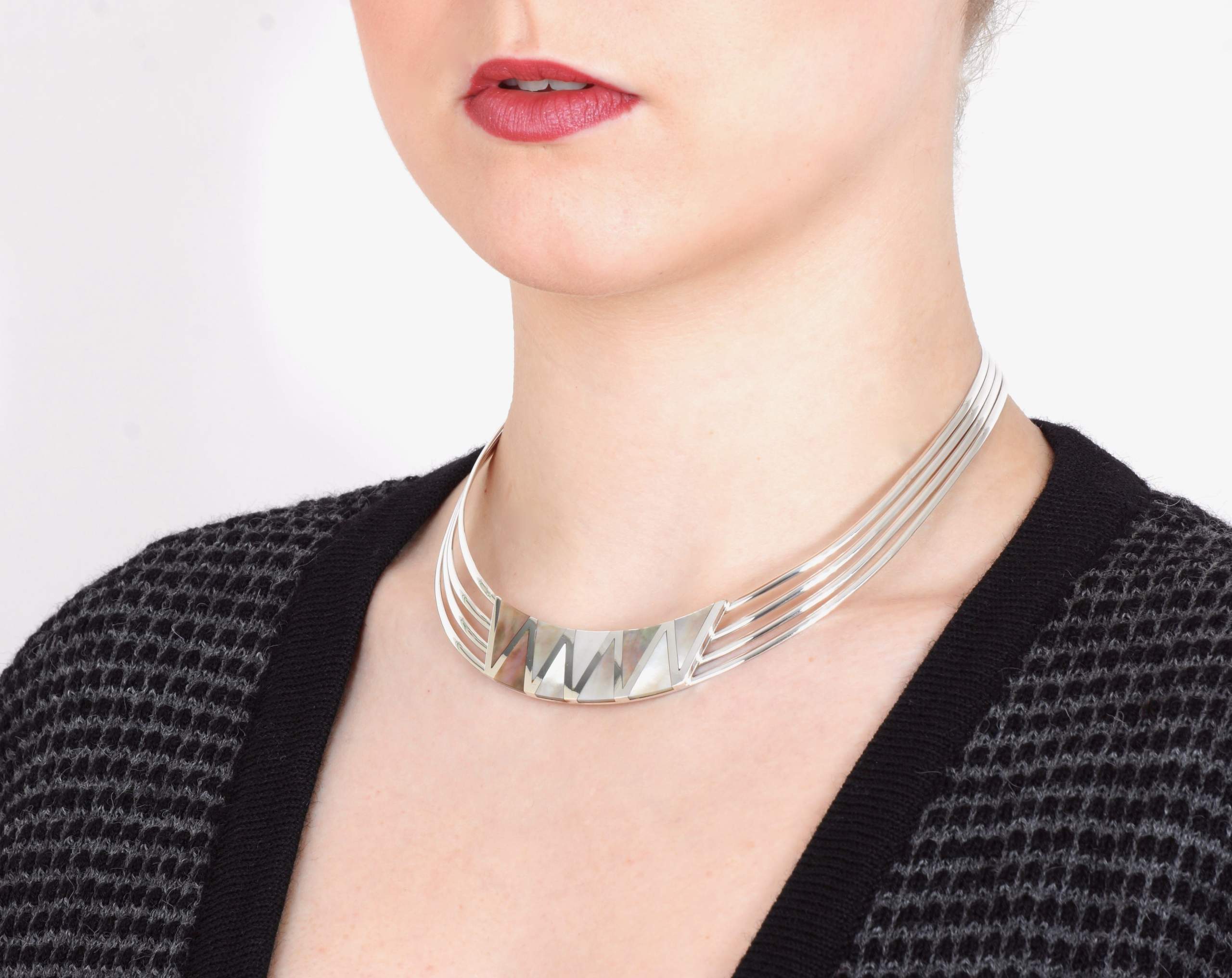 Dit collier is verstelbaar en zeer gemakkelijk om te dragen vanwege zijn zeer flexibele 950 puur zilver. De paarlemoer driehoeken worden zorgvuldig en professioneel gelegd in het zilver om een superieure afwerking te kunnen leveren. Dit collier is handgemaakt in Peru en zoals met alle Alpakah by 2be-aware producten, hebben wij slechts één op de voorraad. Mis deze kans niet om deze schat te kopen en bezit deze tijdloos design collier nu!