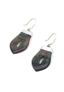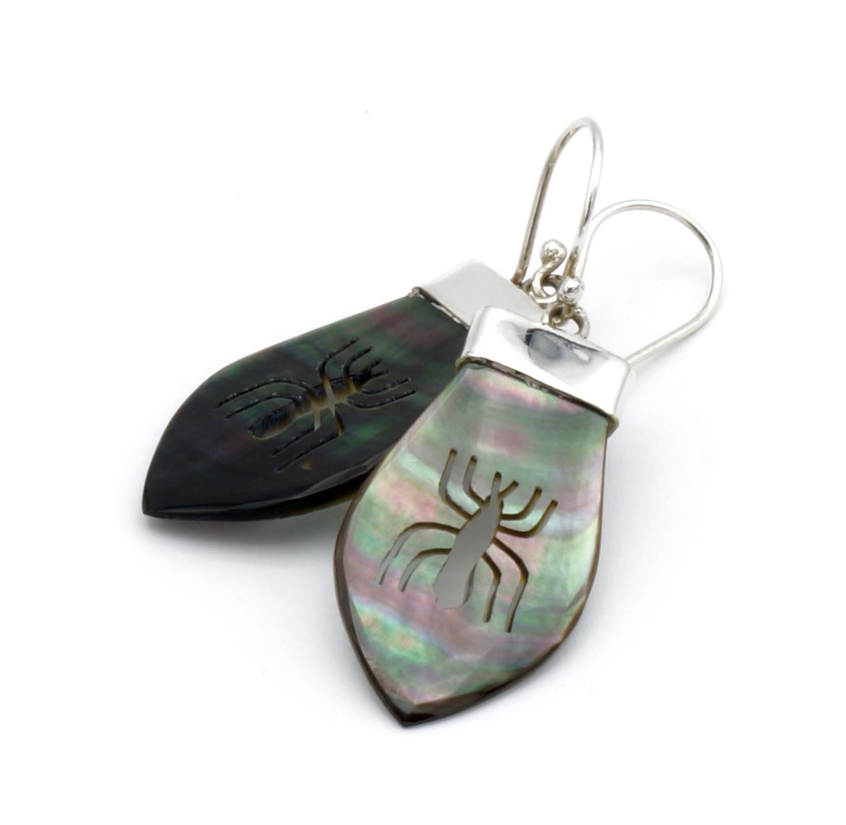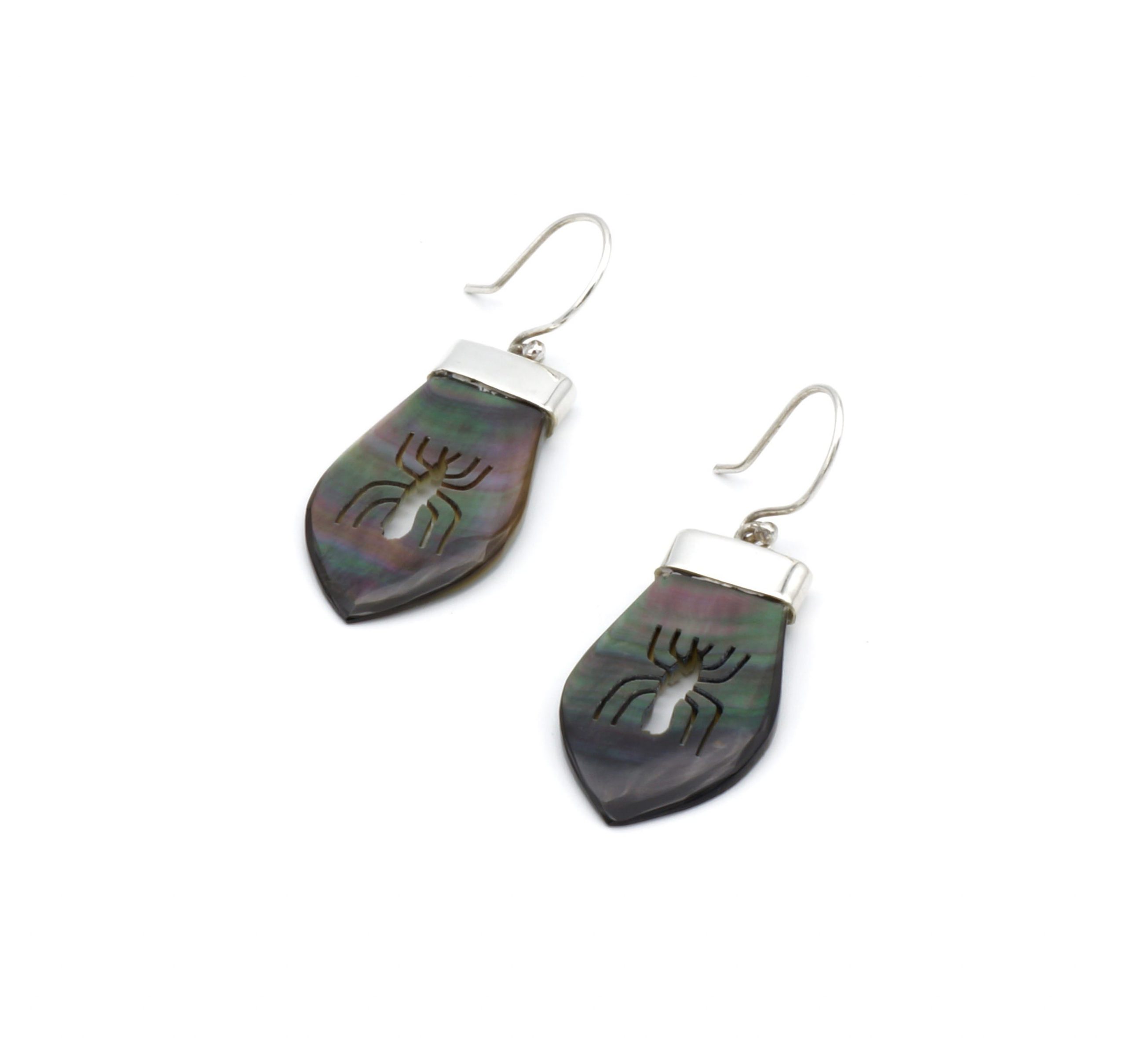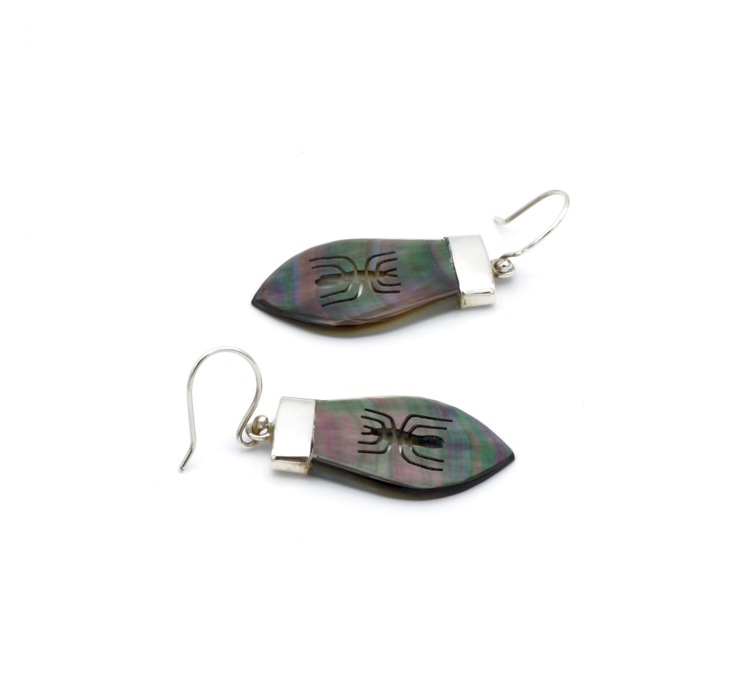 Deze prachtige oorbellen is handgemaakt van verfijnde, exclusief Peruaans parelmoer, dat perfect is ingelegd in een zilveren design.