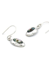 Deze prachtige oorbellen is handgemaakt van verfijnde, exclusieve Abalone schelpen, die perfect zijn ingelegd in een zilveren design.