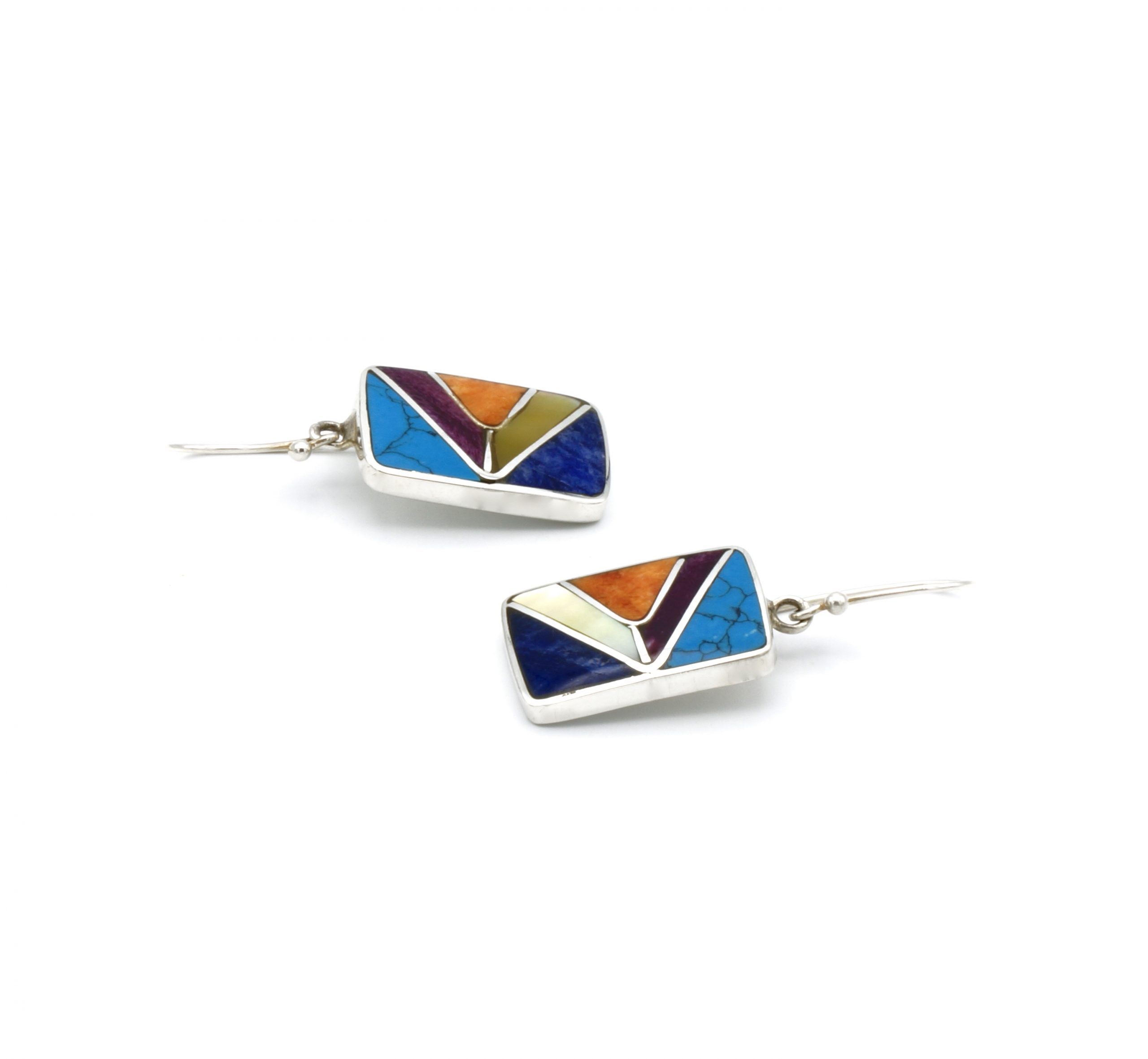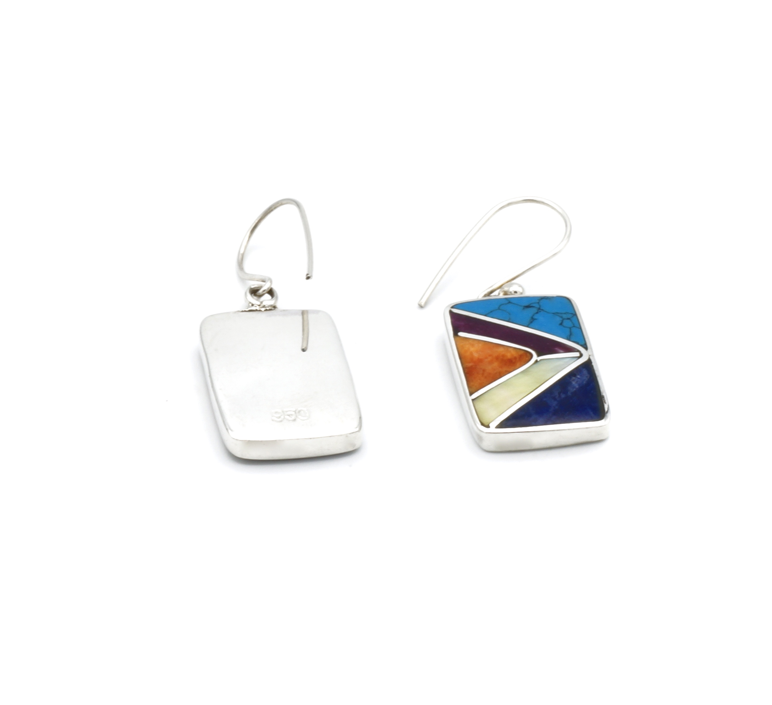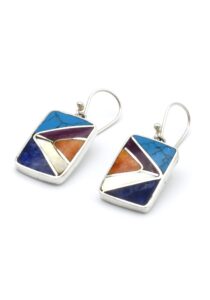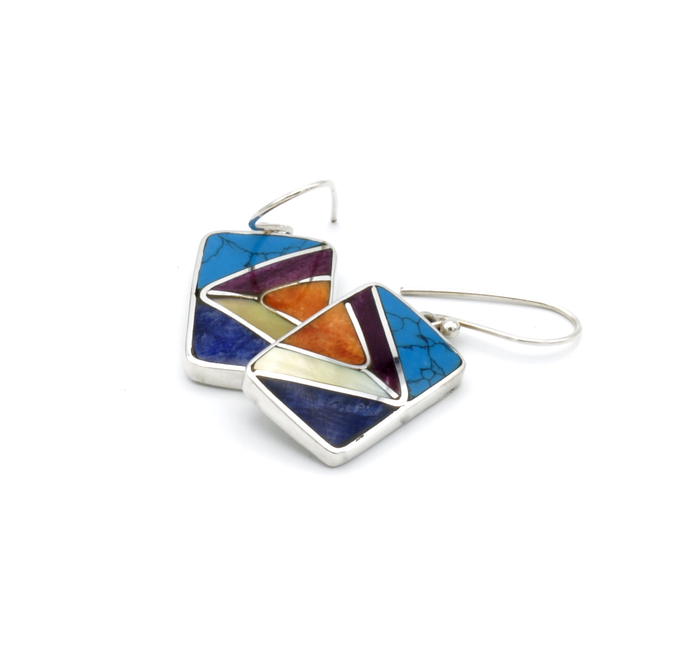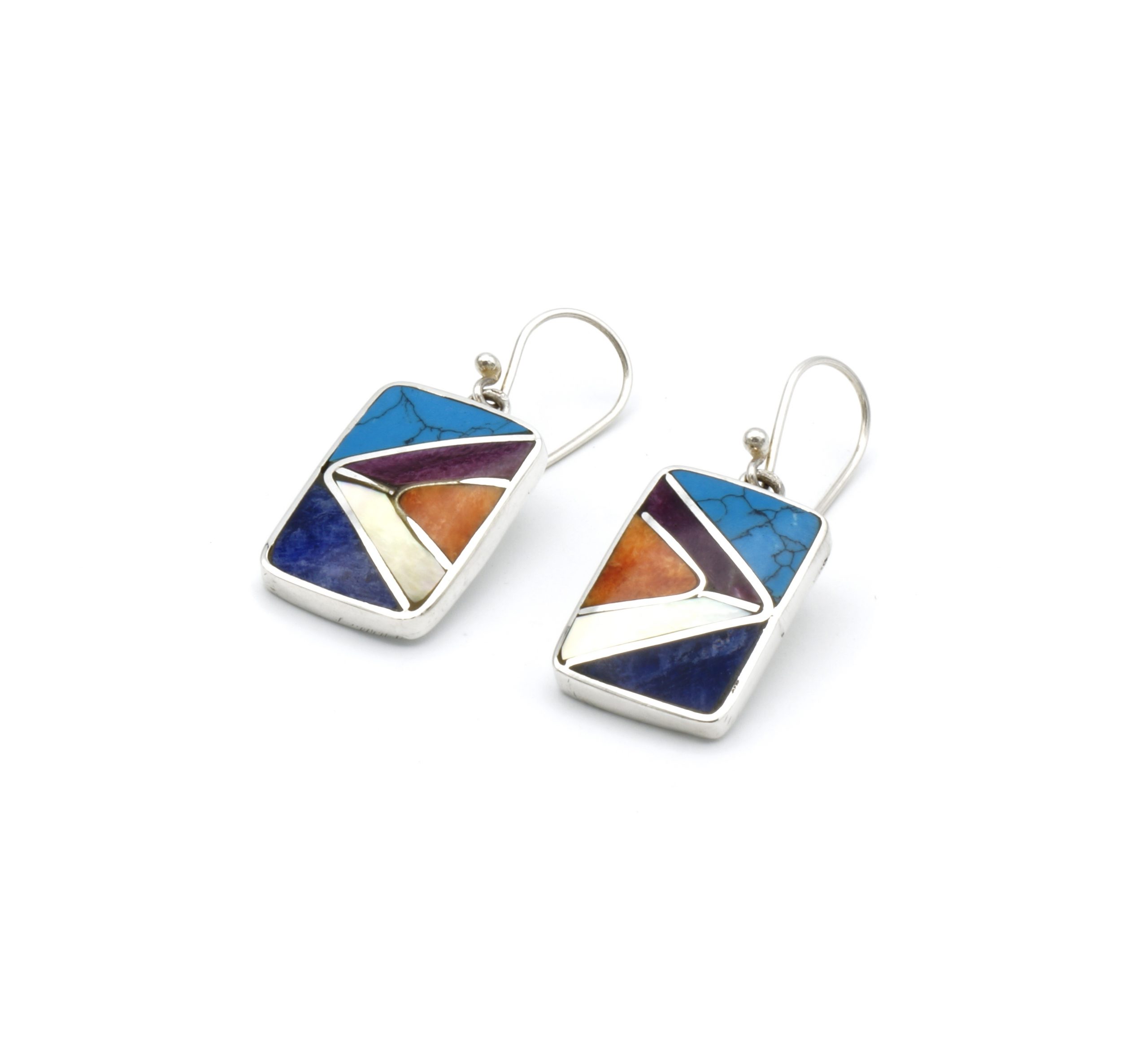 - Luxe zilveren oorbellen ingelegd met prachtig fijn gesneden Spondylus schelpen, parelmoer, Sodaliet en Peruaanse turkoois