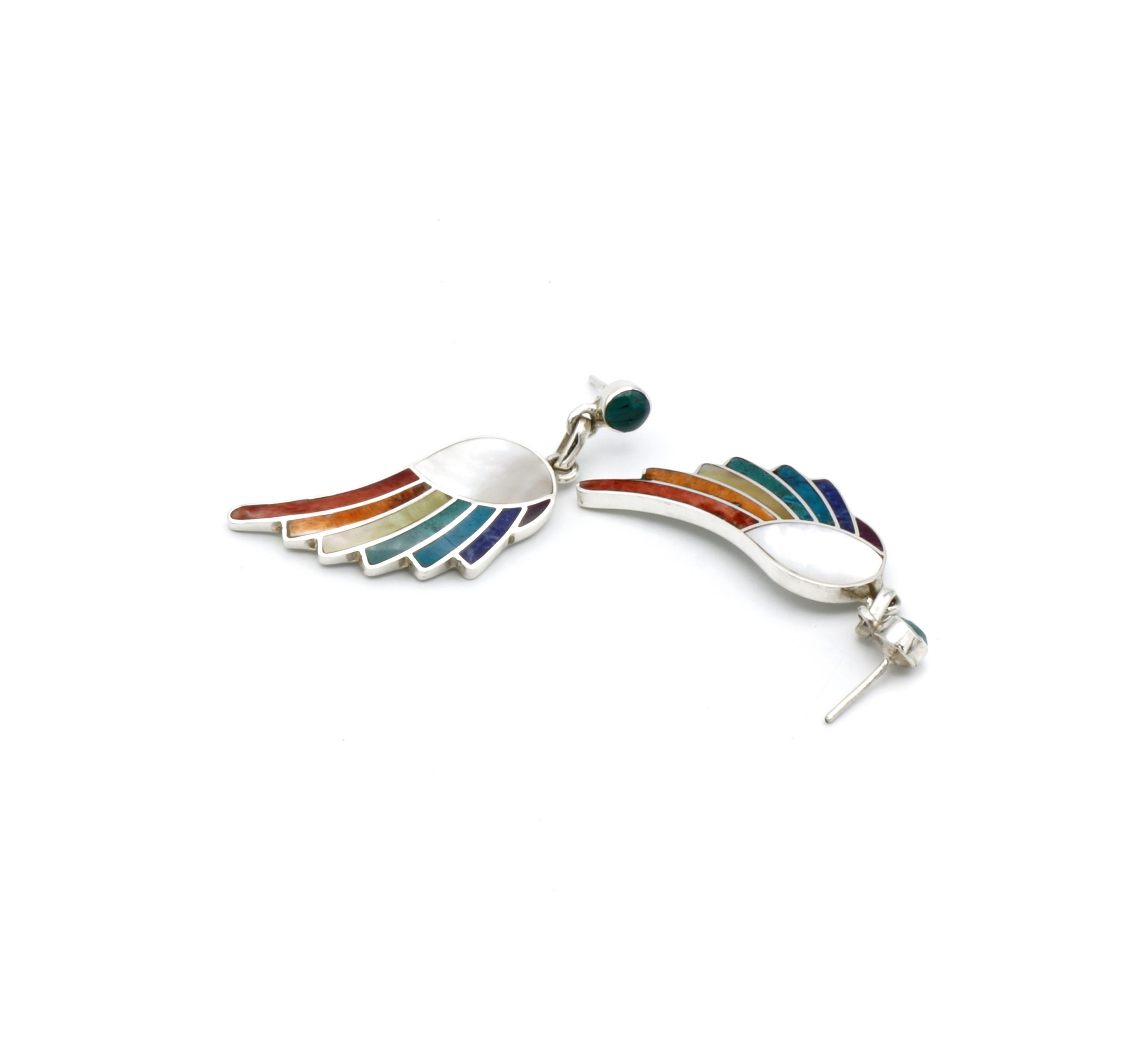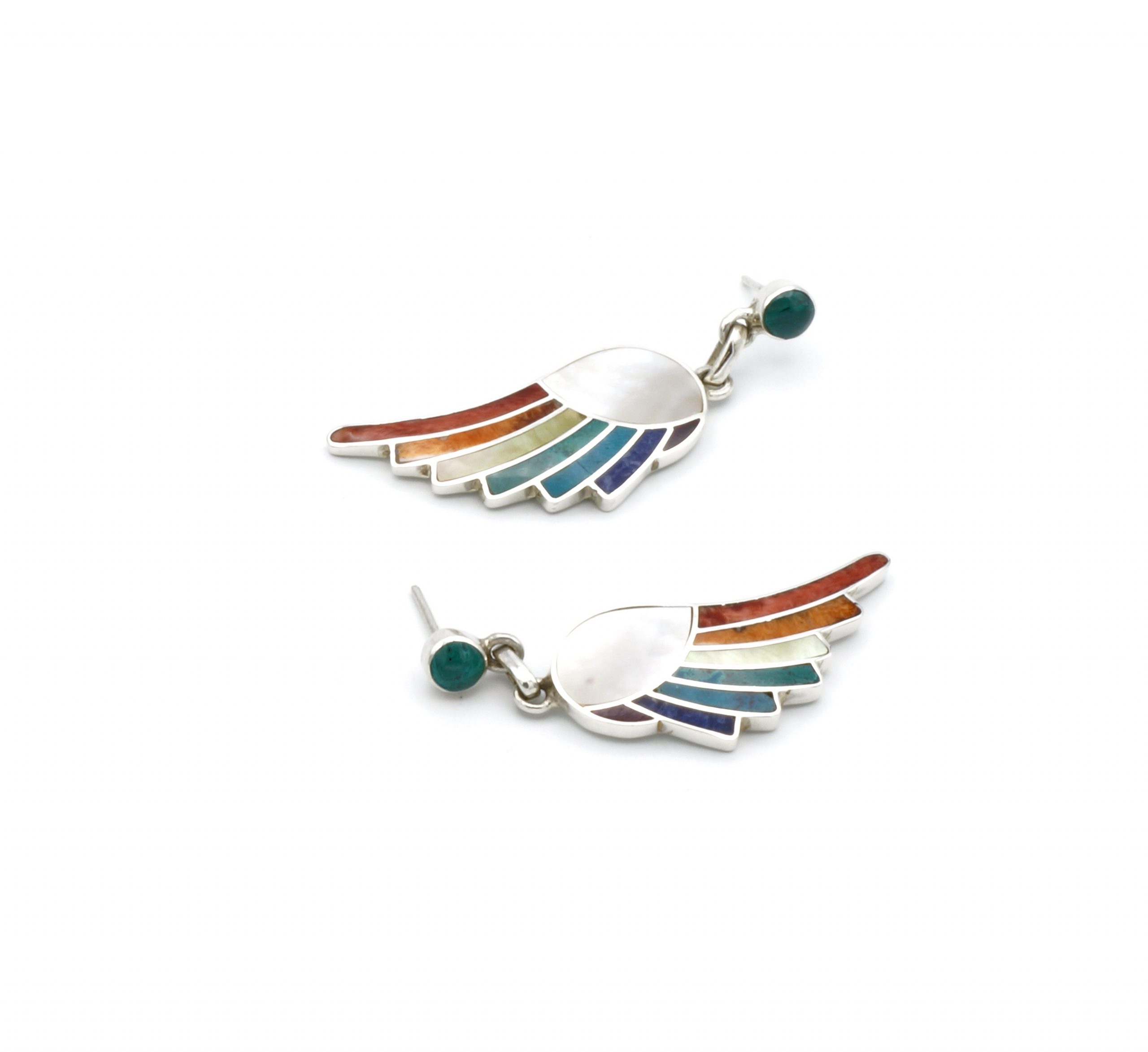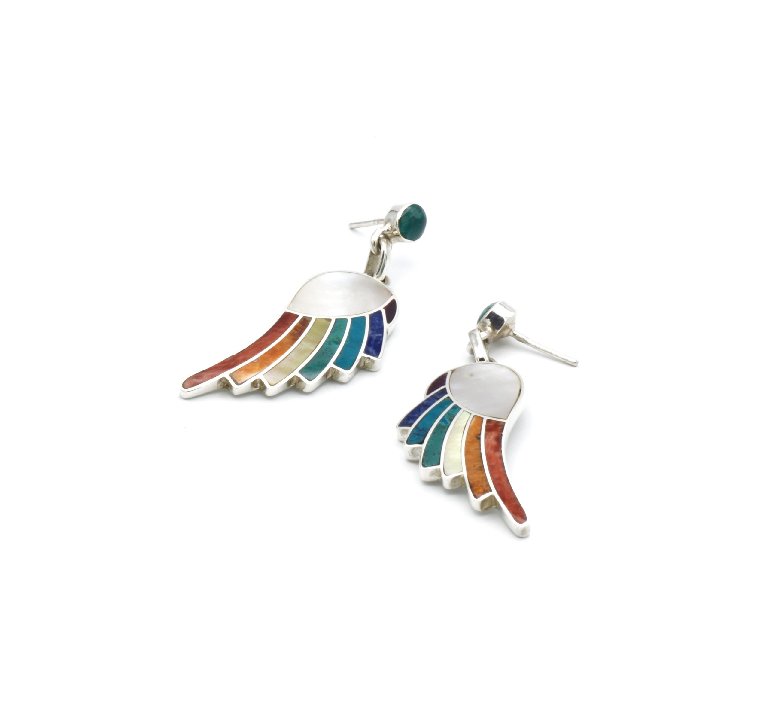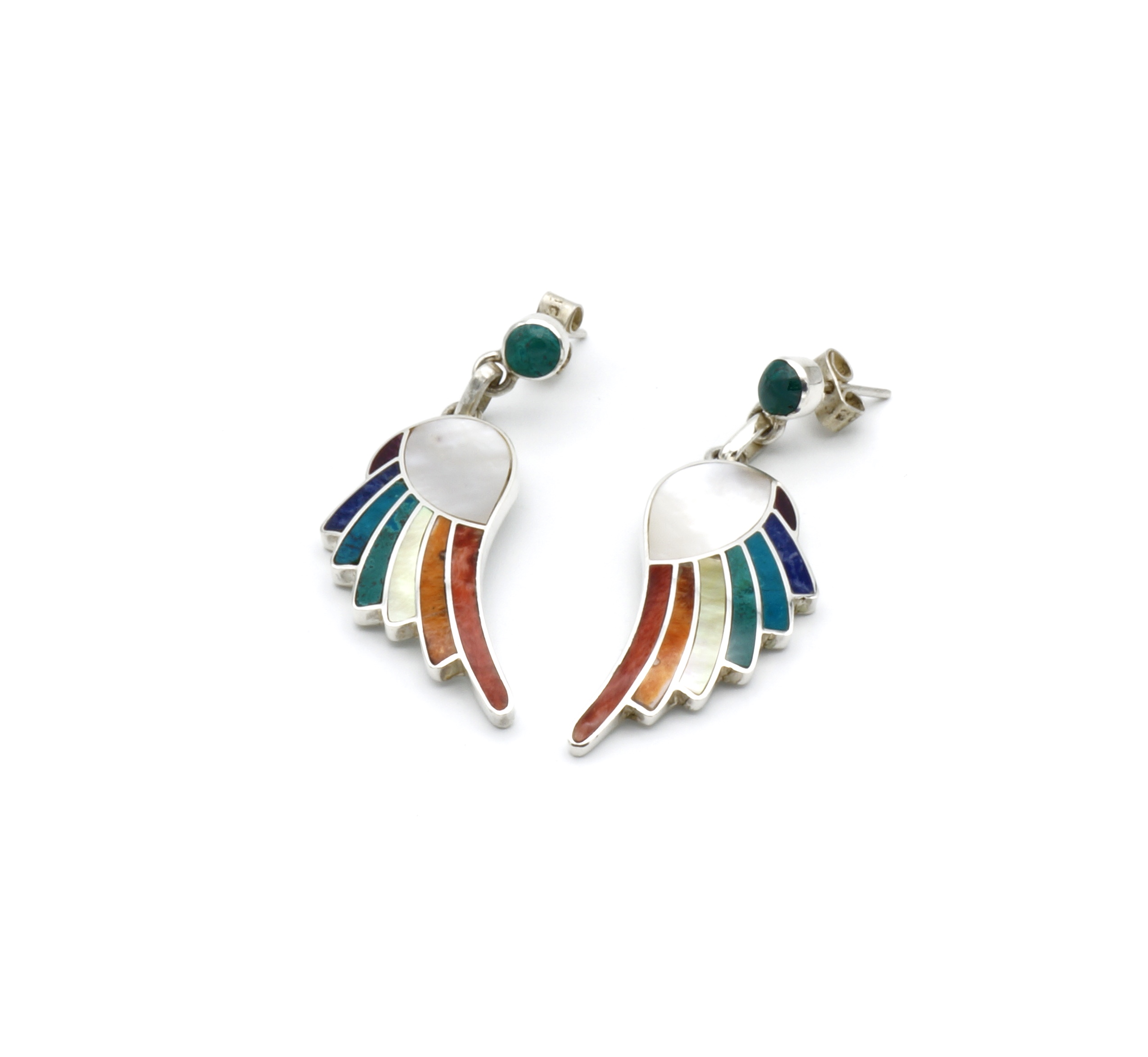 - Luxe zilveren oorbellen ingelegd met prachtig fijn gesneden Spondylus schelpen, parelmoer, Abalone, Sodaliet en Peruaanse turkoois