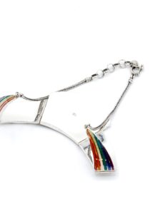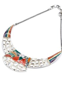 - Luxe zilveren collier ingelegd met prachtig fijn gesneden Spondylus schelpen, parelmoer, Abalone schelp, turkoois en Chrysocolla stenen