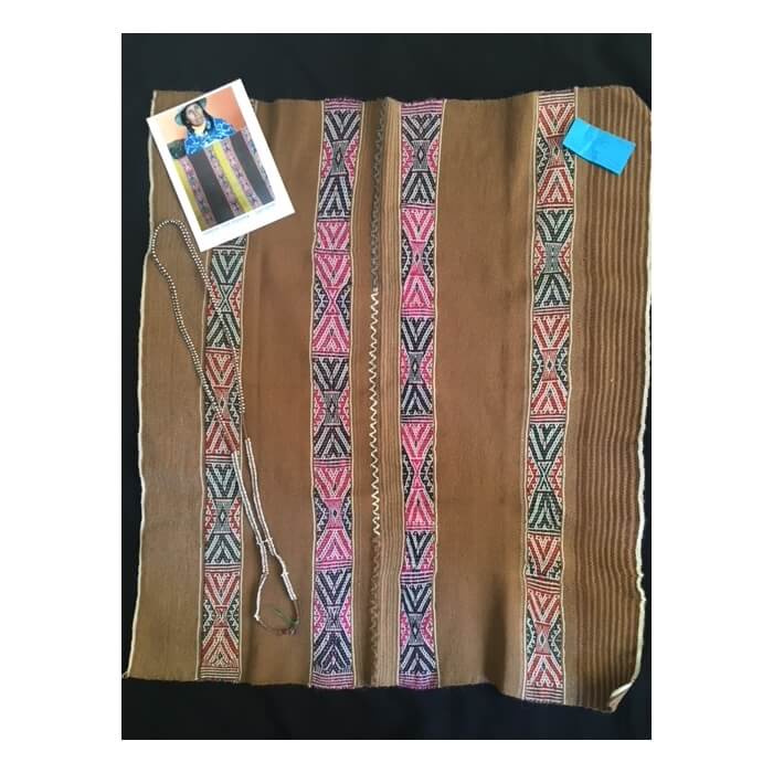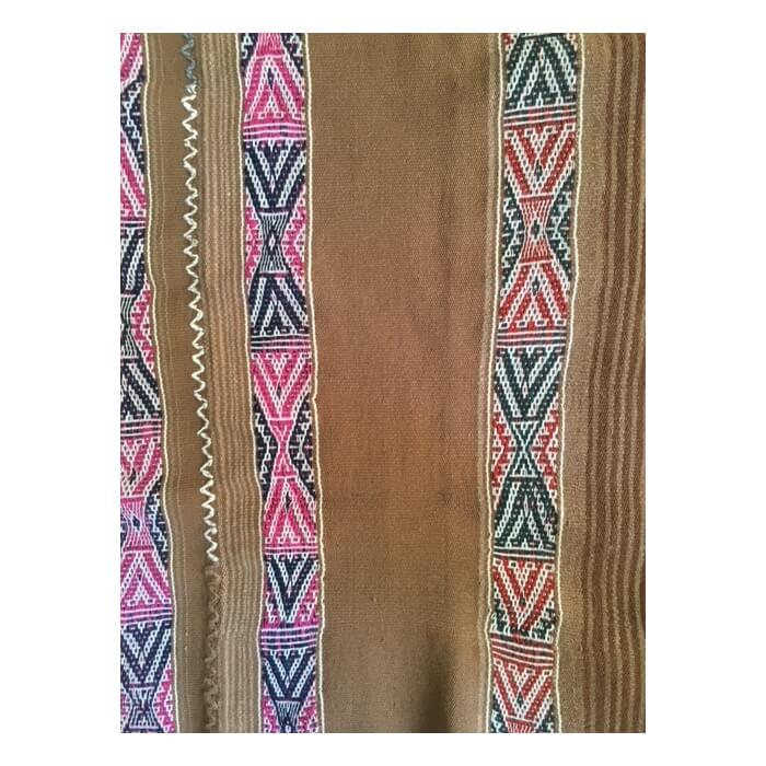 Dit prachtige mestana doek is gemaakt in de zeldzame kleuren bruin, rood en groen. DGregoria Sucle Machacca bedacht en maakte dit mooie doek bij haar thuis in het dorp Quico Grande.