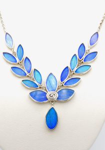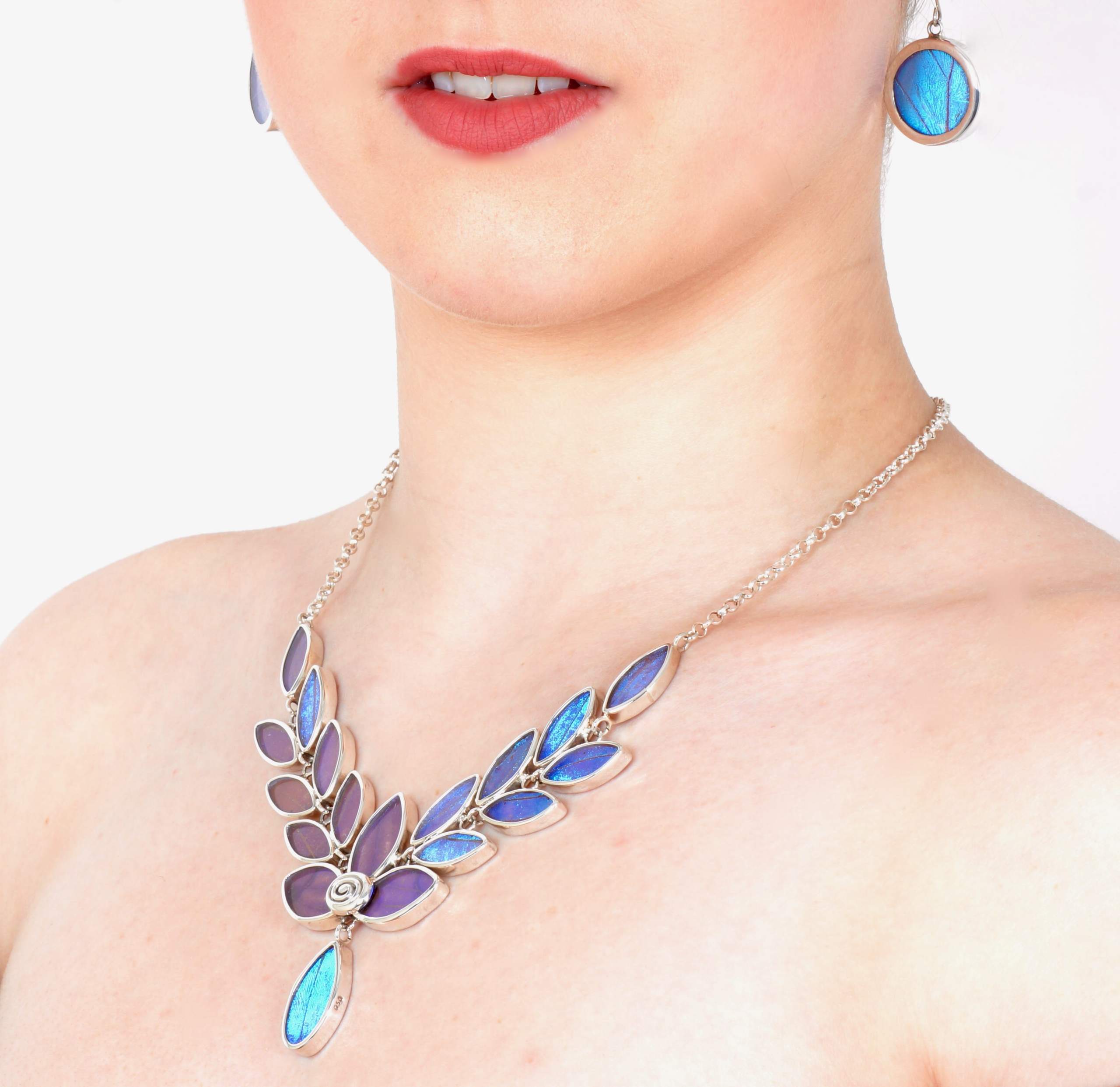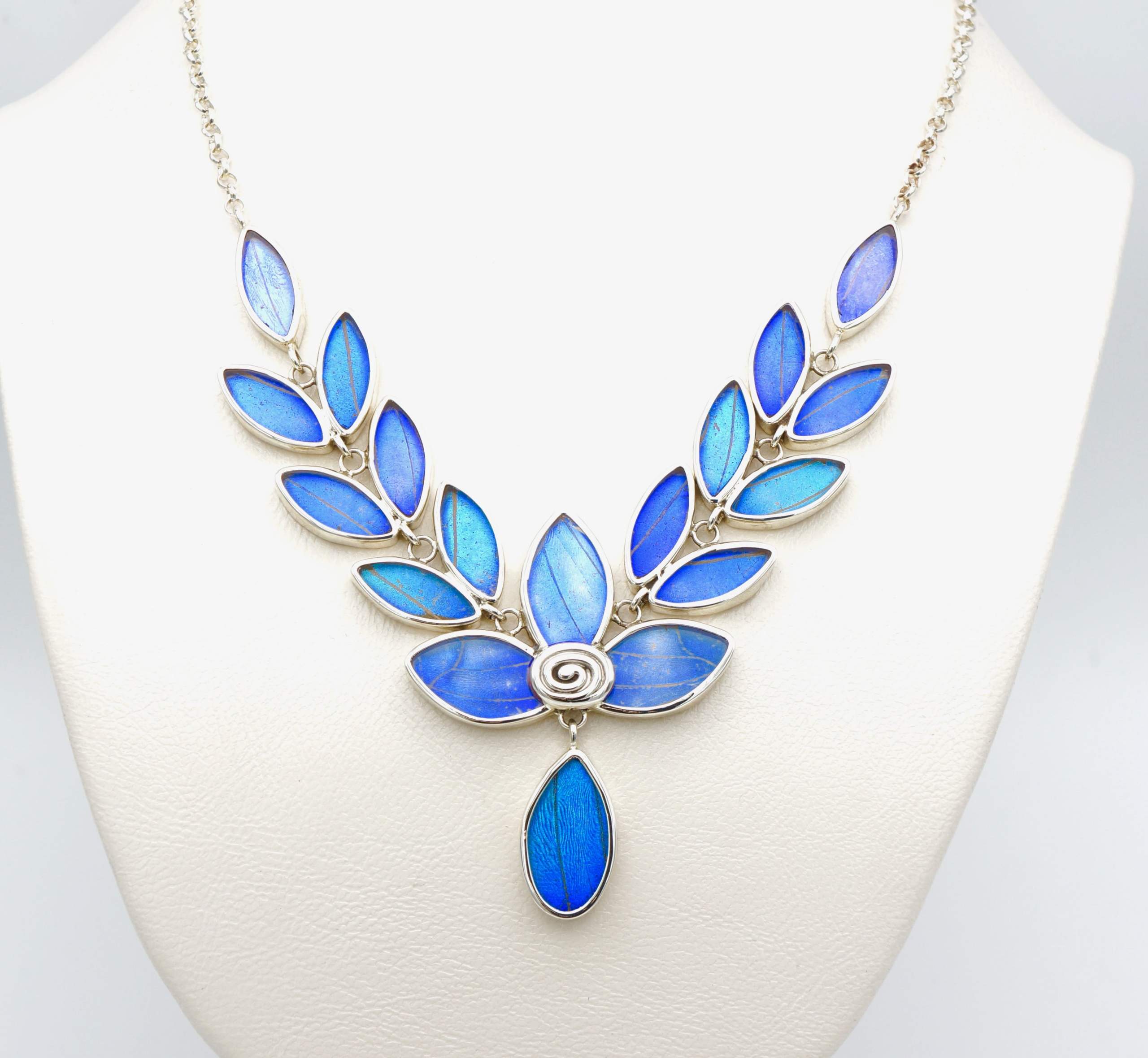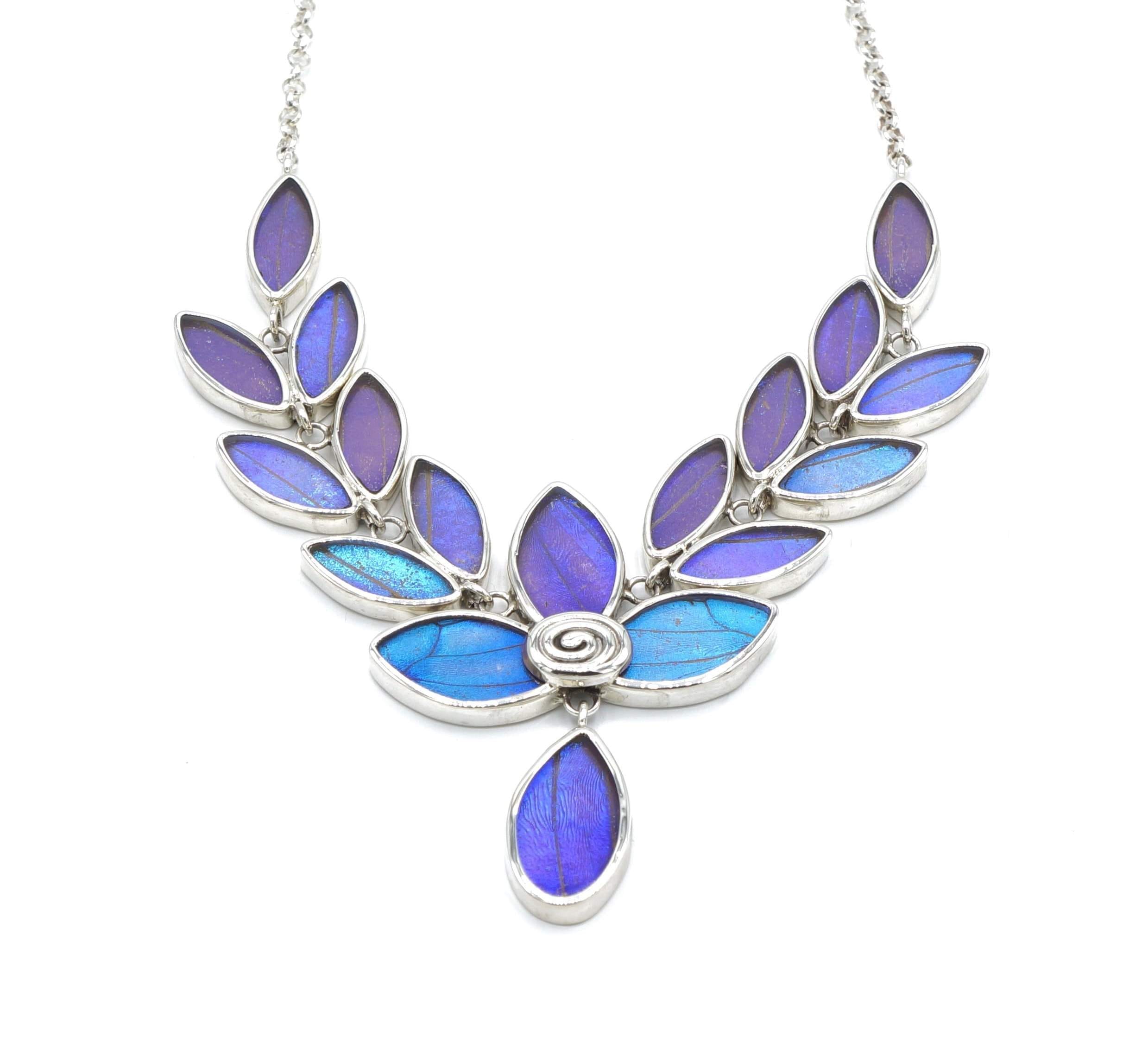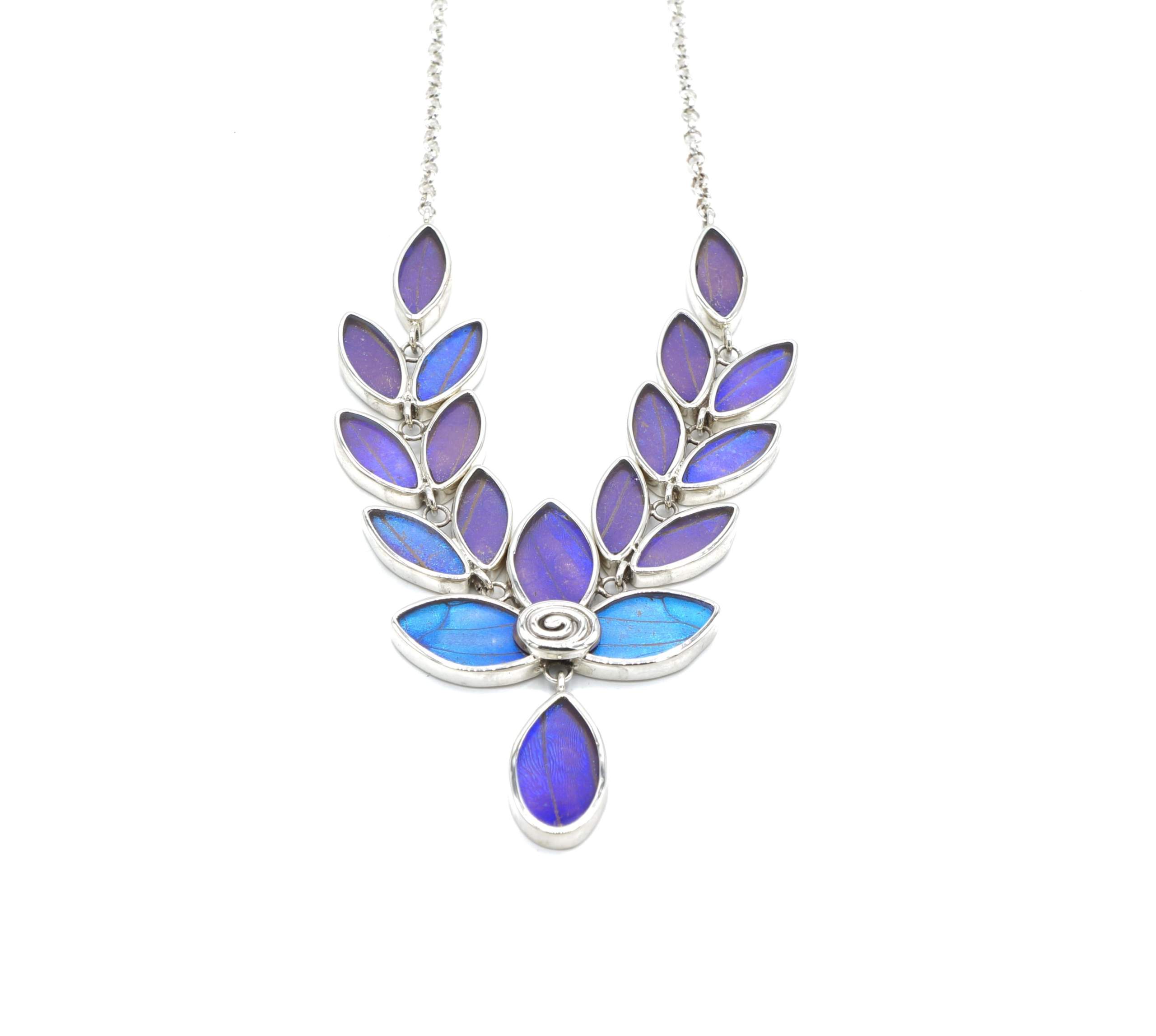 - Luxe zilveren collier ingelegd met vleugels van de Morpho Azul vlinder
