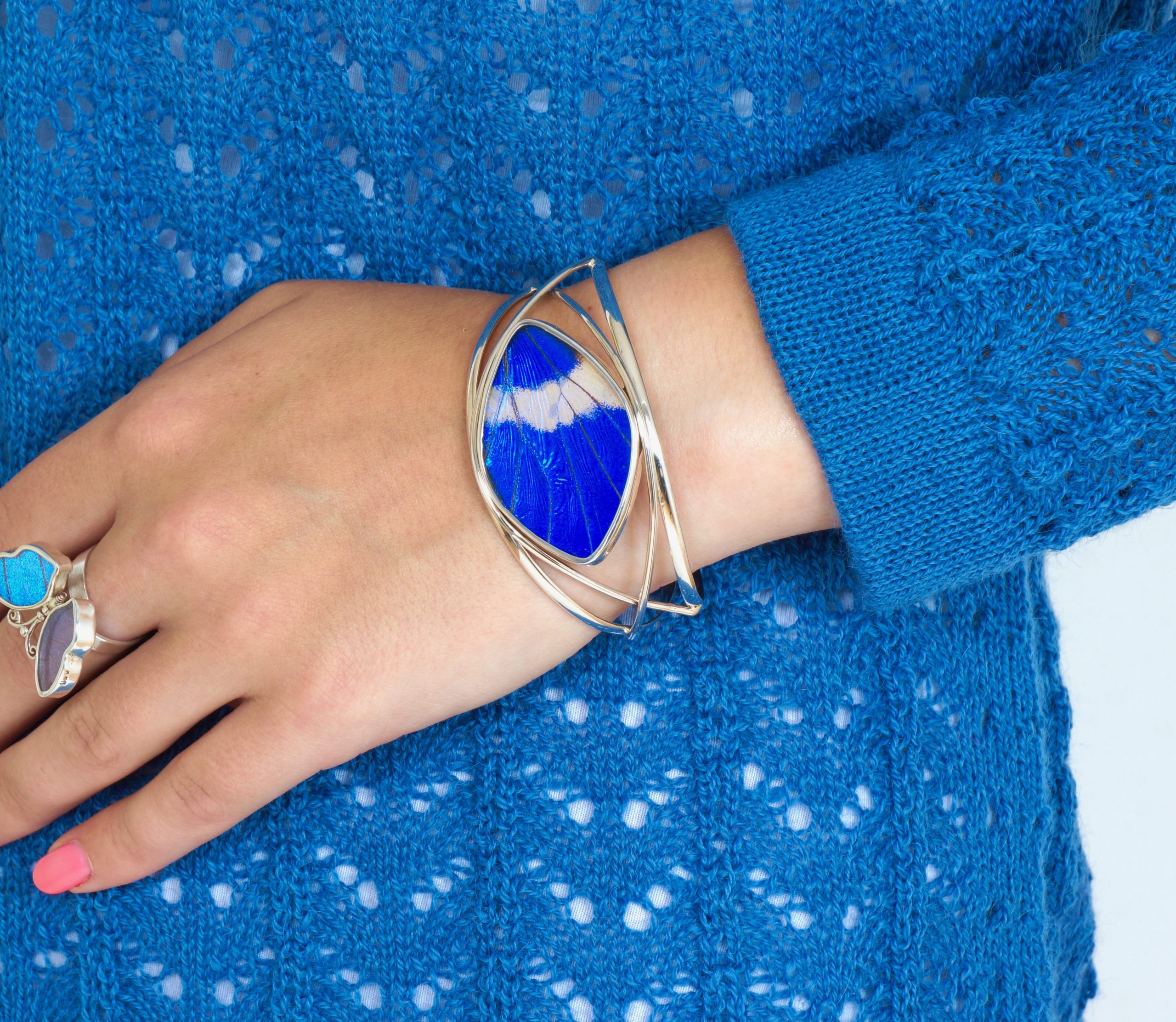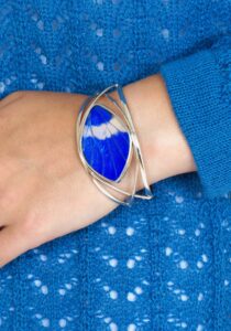 - Luxe zilveren armband ingelegd met de vleugel van de Morpho Helena vlinder