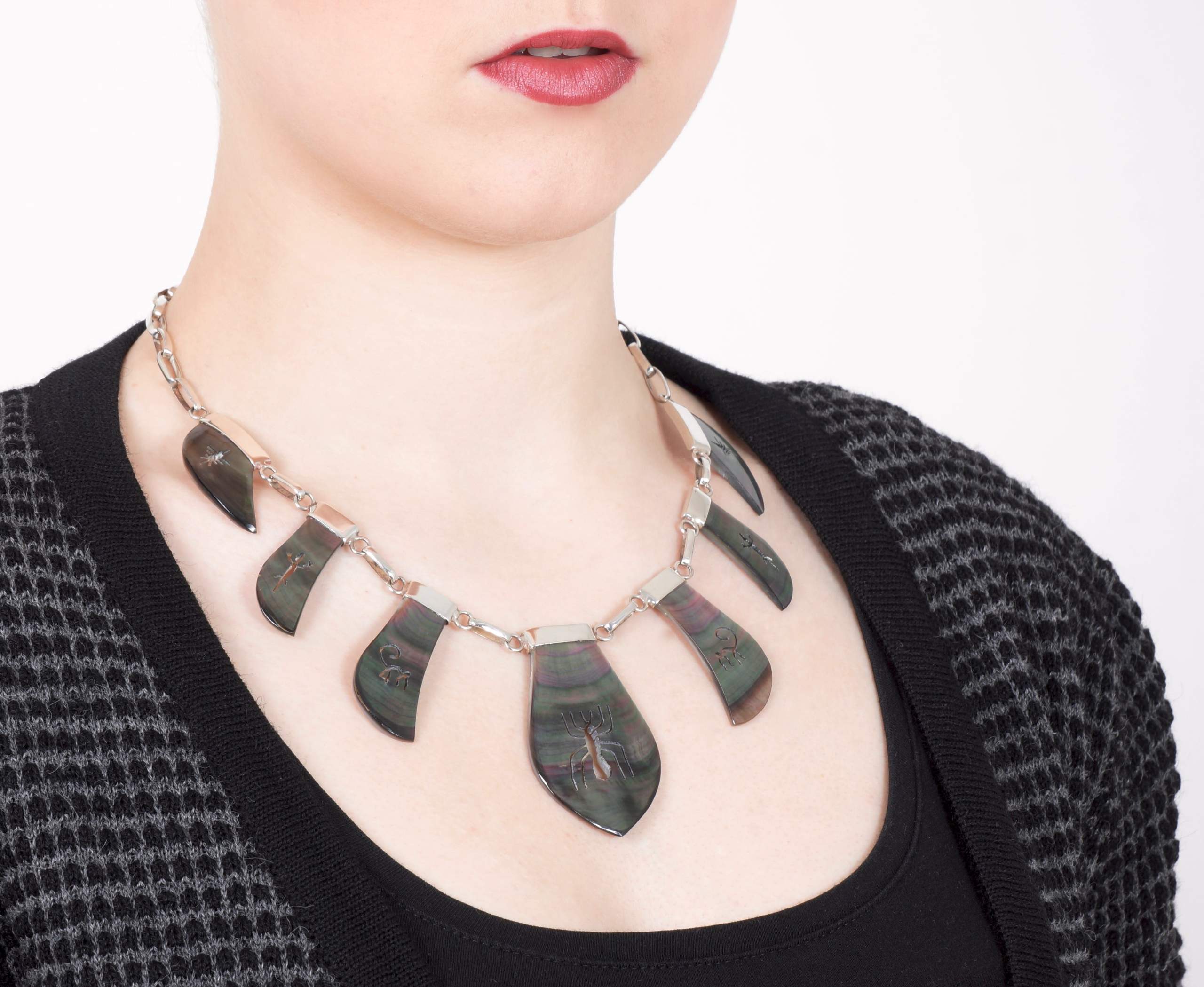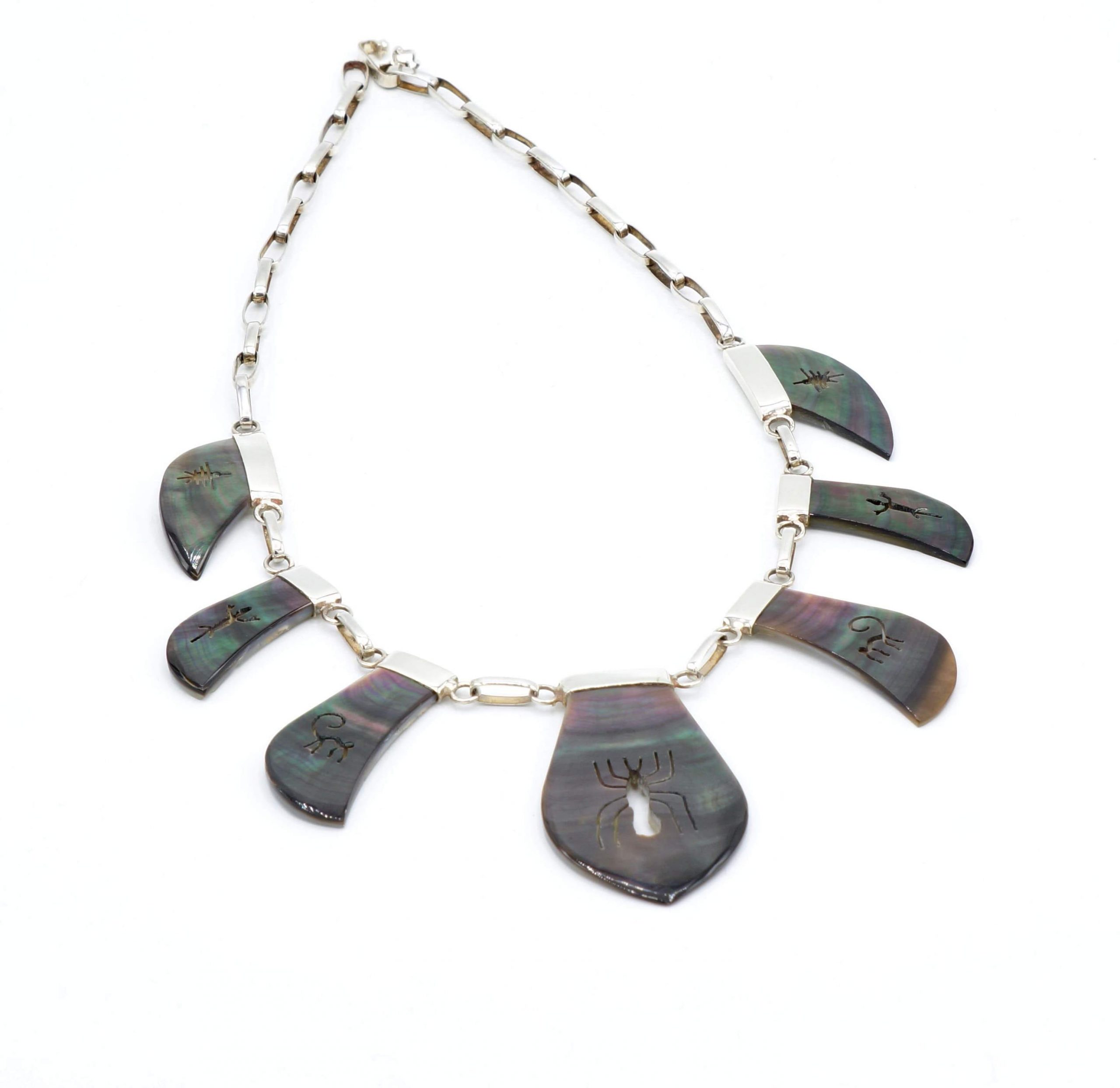Nazcalijnen design collier grijs parlemoer