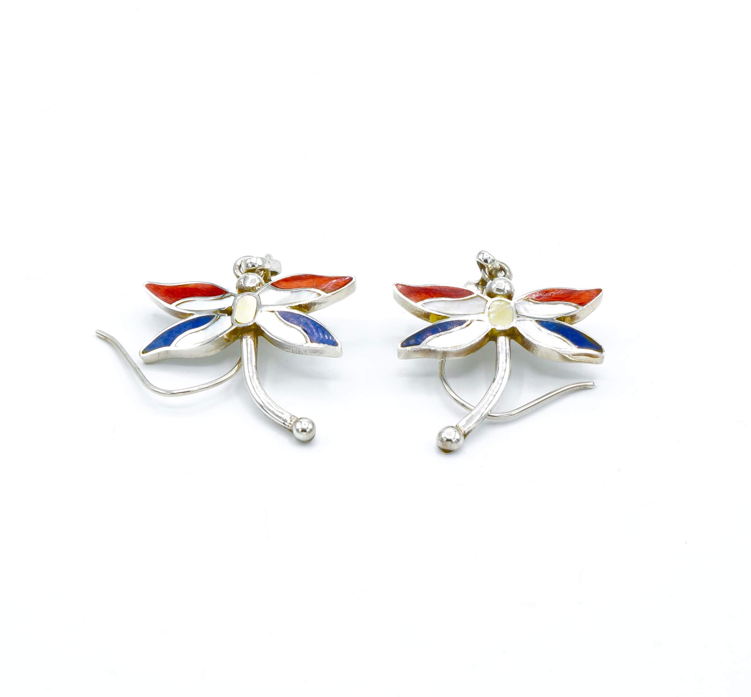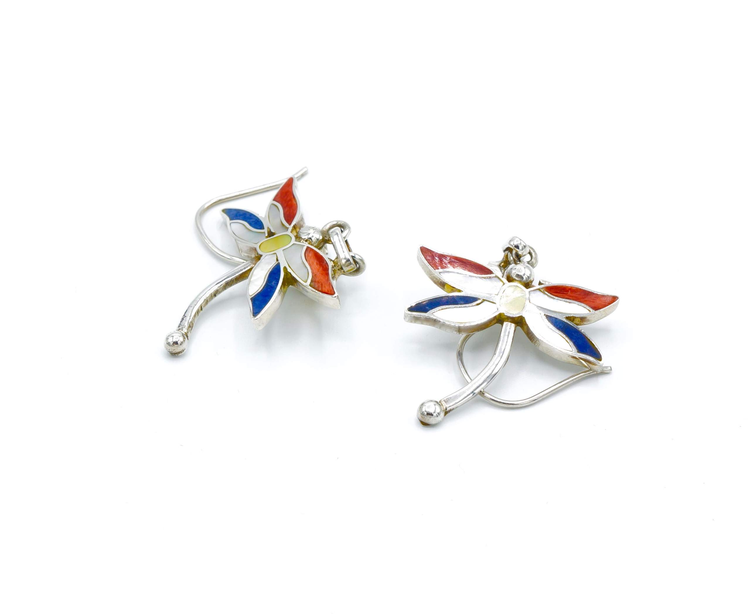 - Luxe zilveren oorbellen ingelegd met fijn geslepen Spondylus schelpen en parelmoer