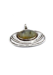 Deze hanger is één van de meest originele items in onze jewelry collection. Met deze mooie hanger geniet u elke dag van het prachtige, iriserende groen van de Prehnite steen.