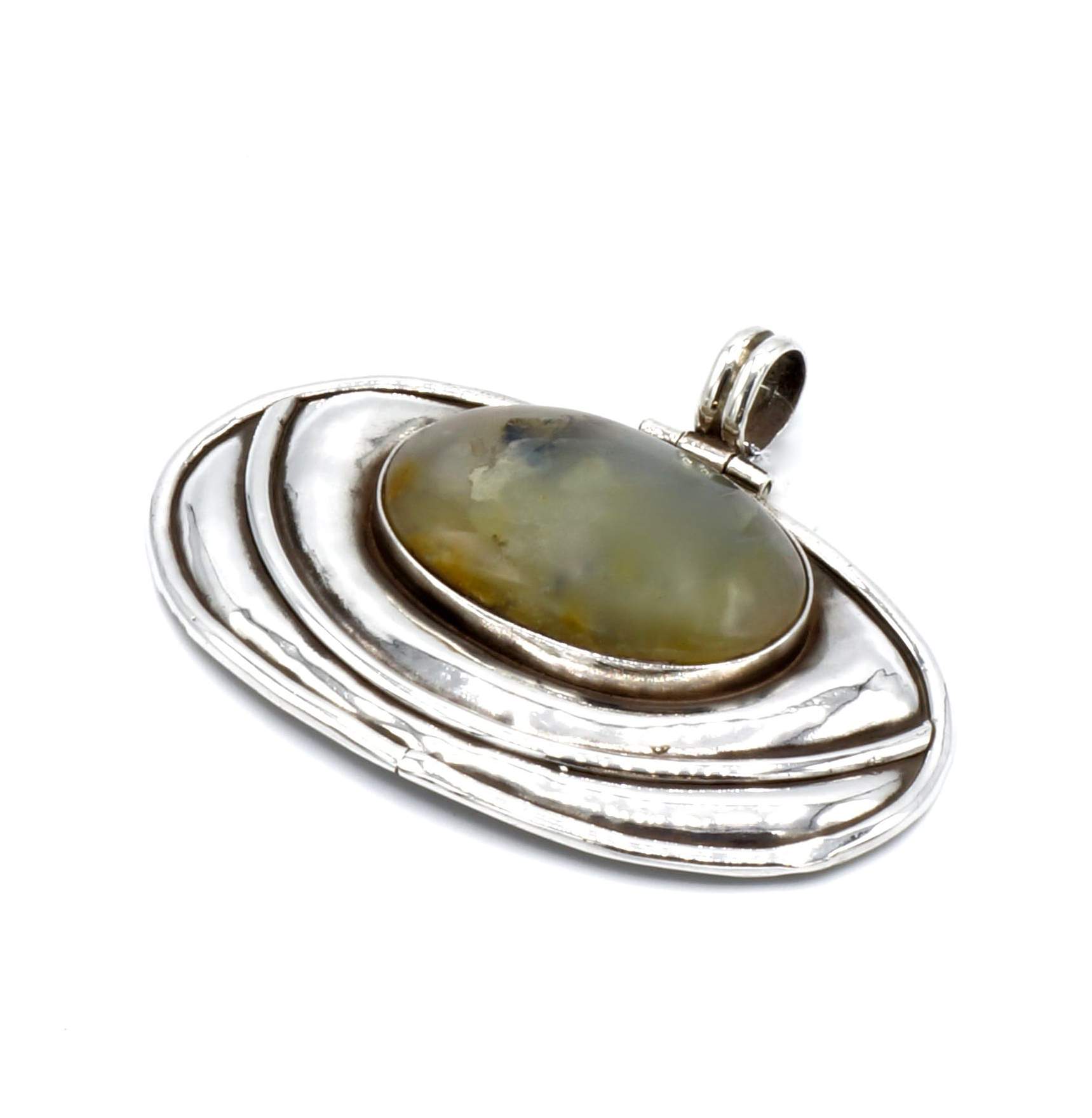 Ovalen zilveren hanger met Prehnite