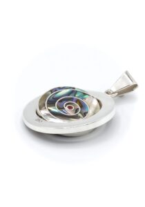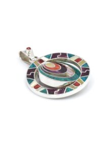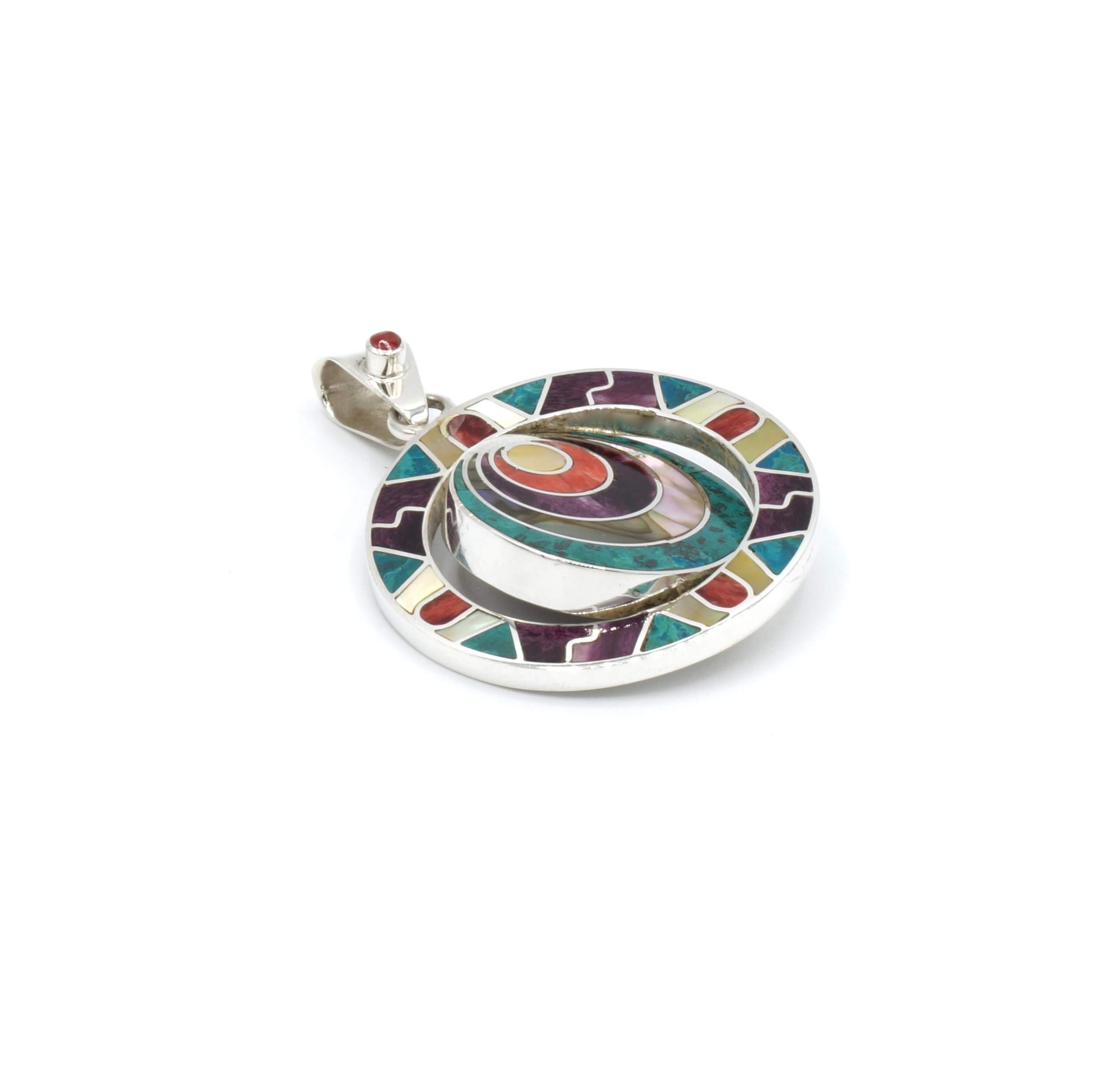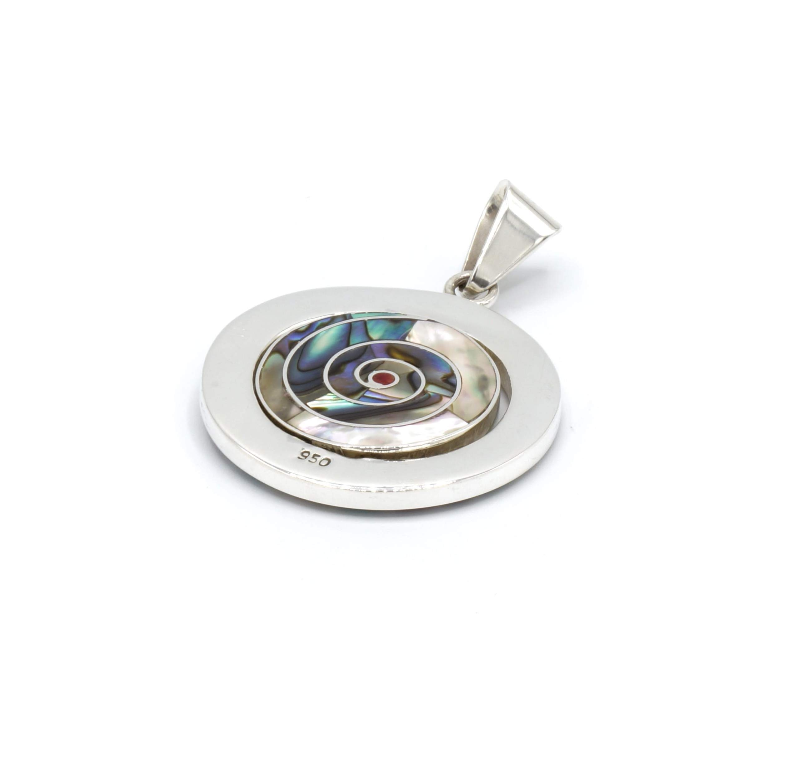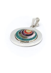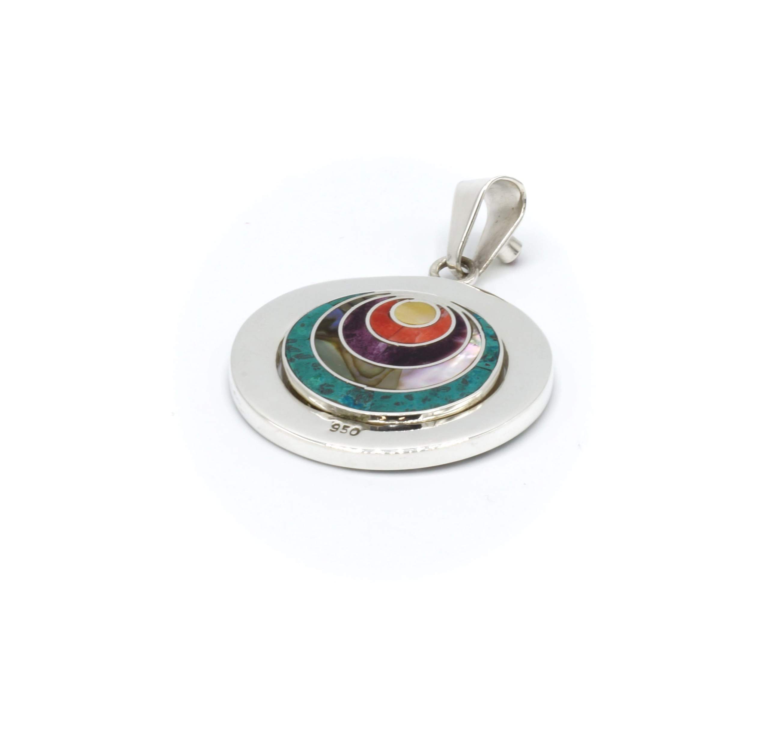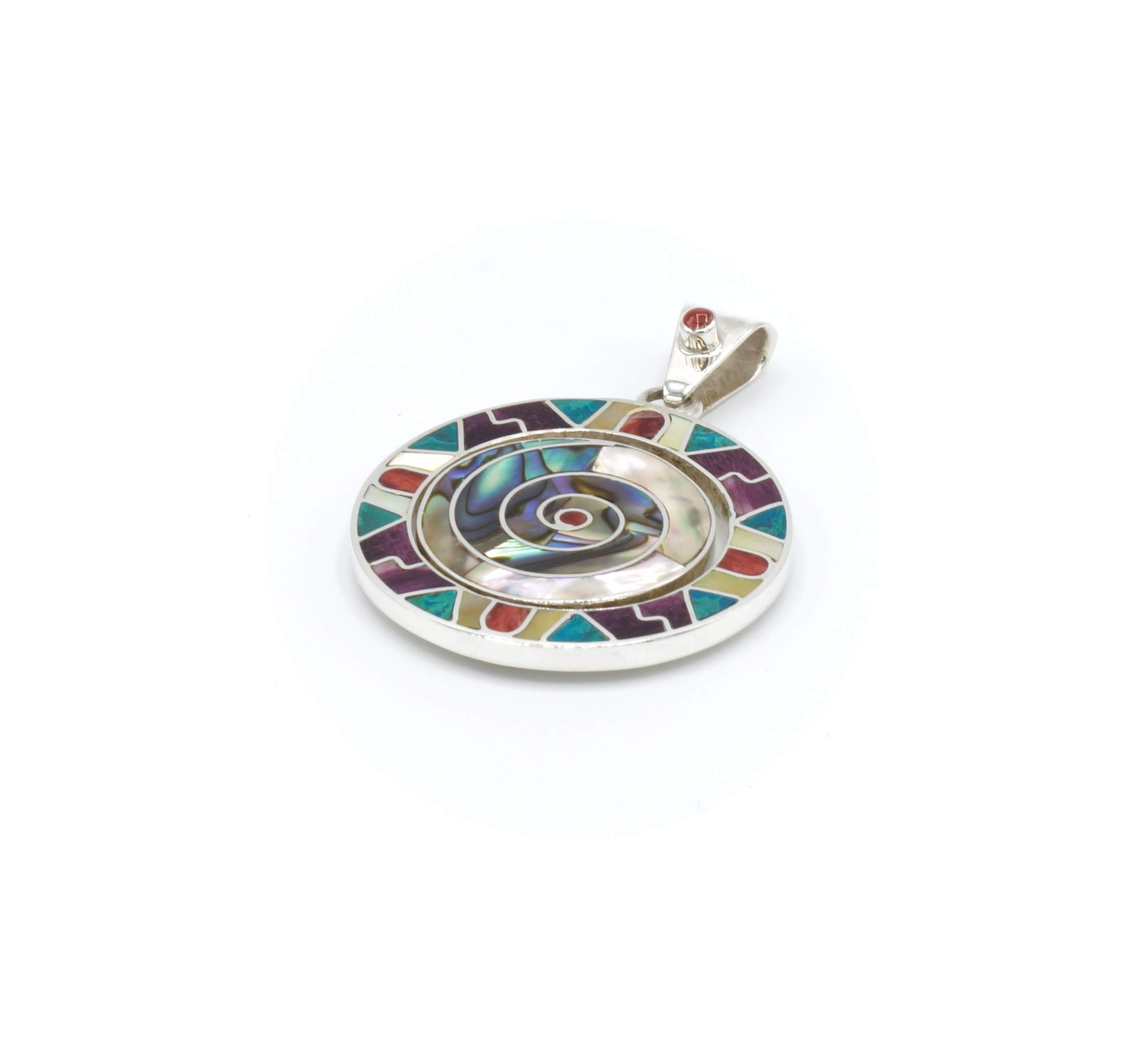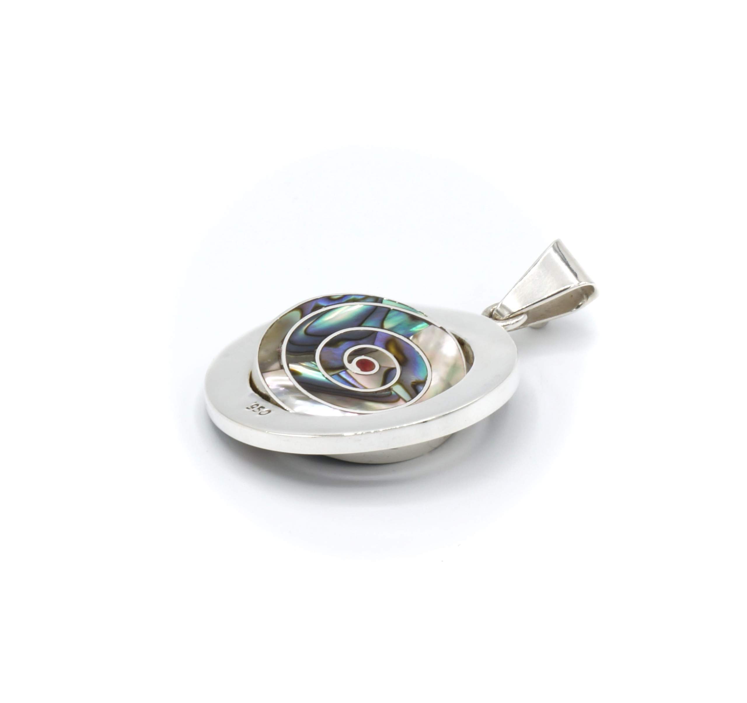 - Luxe zilveren hanger ingelegd met prachtig fijn gesneden Spondylus schelpen, parelmoer, Abalone schelp, turkoois en Chrysocolla stenen