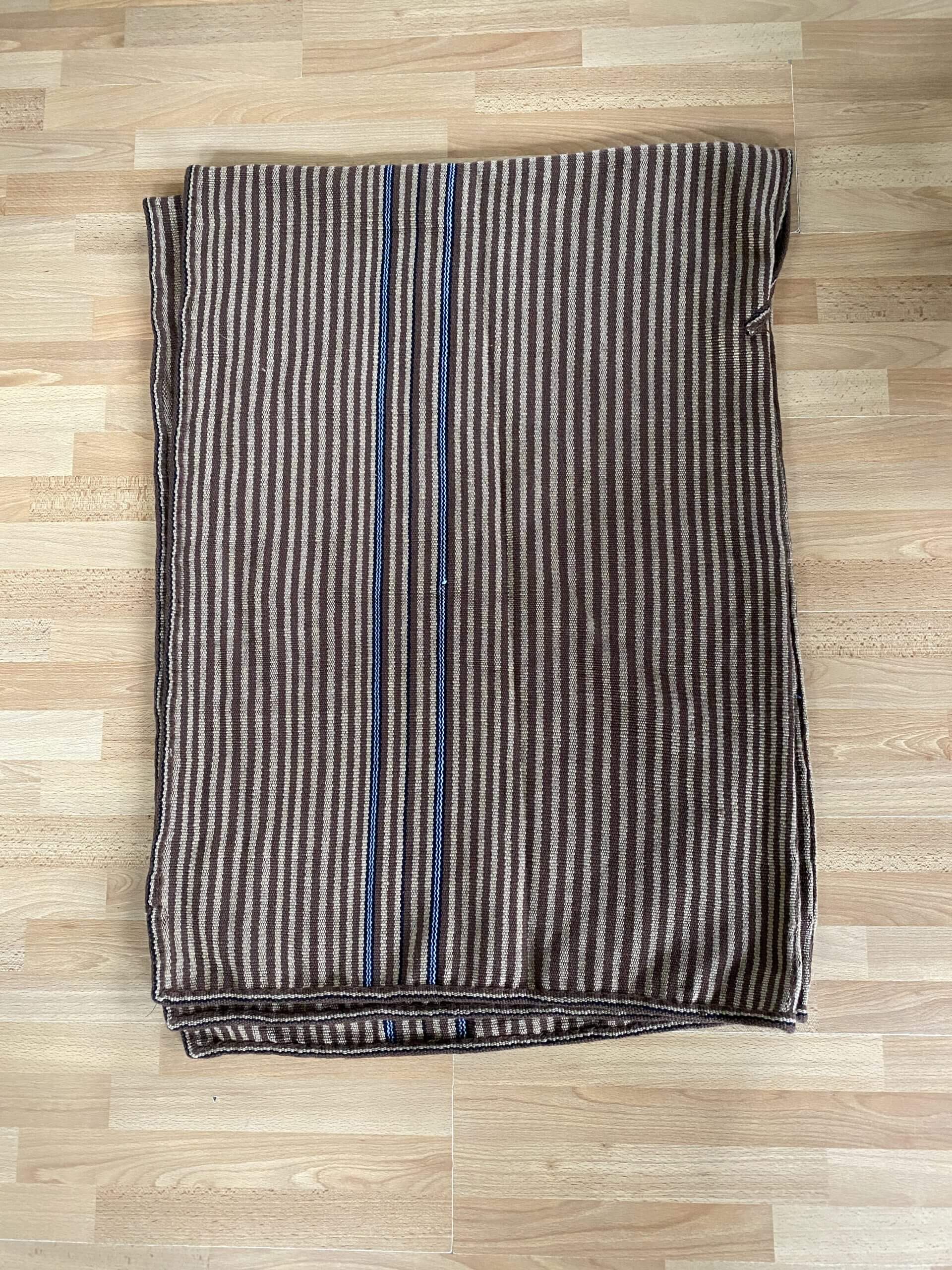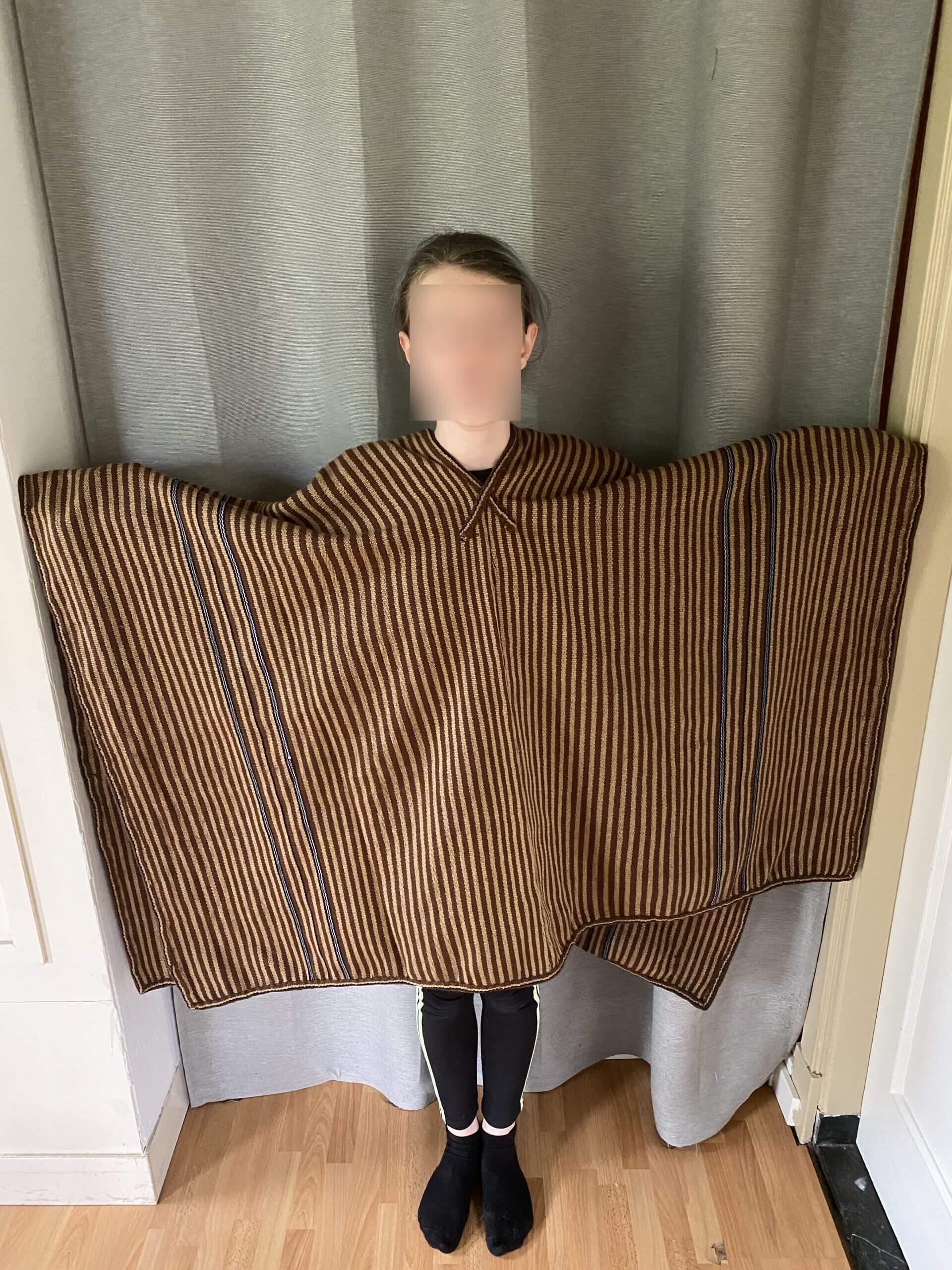 Een zeer aardse bruinkleurige heren/dames poncho met strepen om te dragen tijdens Sjamanistische rituelen.