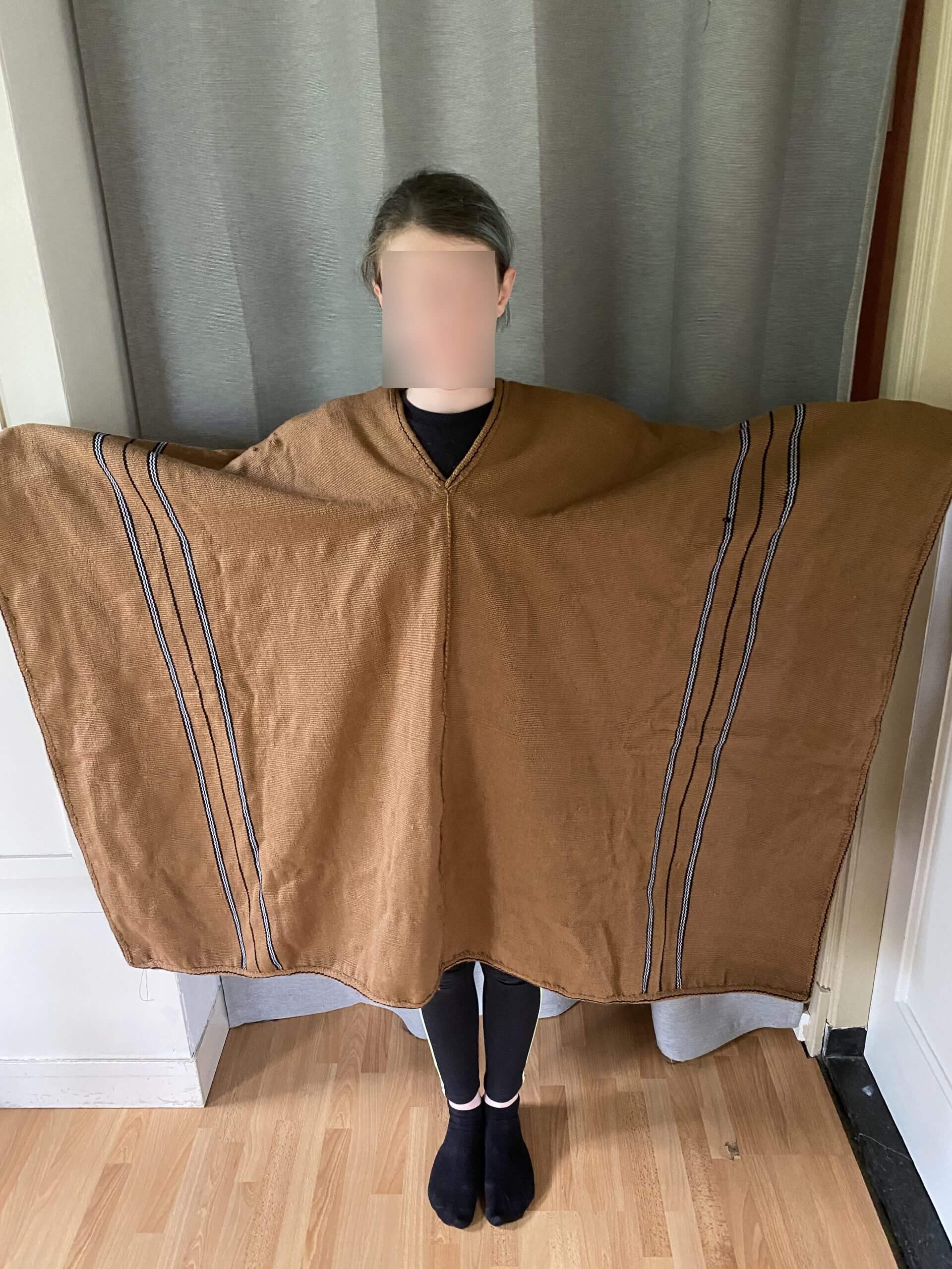 Een prachtige traditionele bruinkleurige heren/dames poncho met strepen om te dragen tijdens Sjamanistische rituelen.