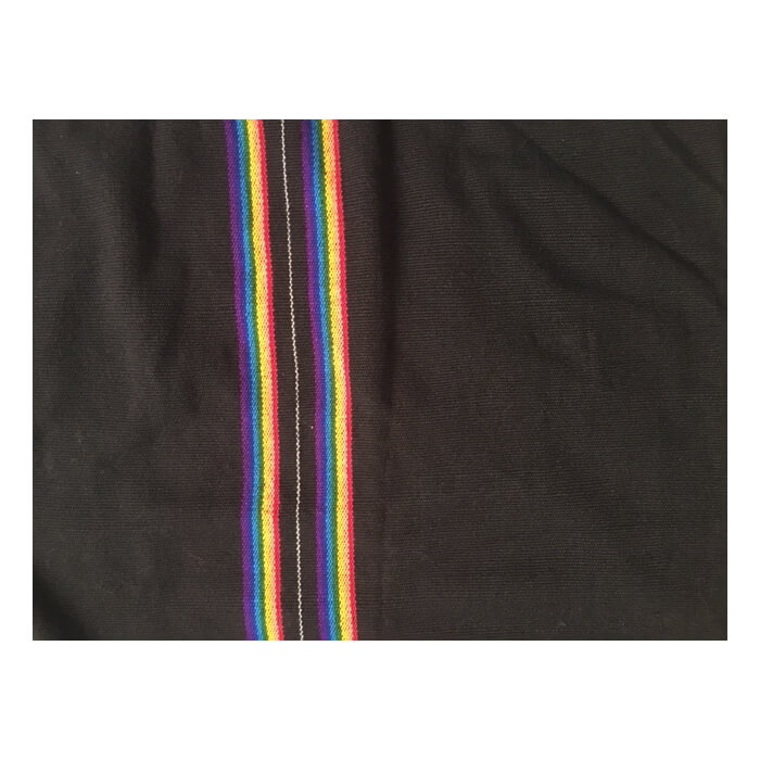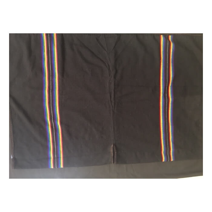 Een prachtige traditionele poncho met regenboogstreep om te dragen tijdens Sjamanistische rituelen.