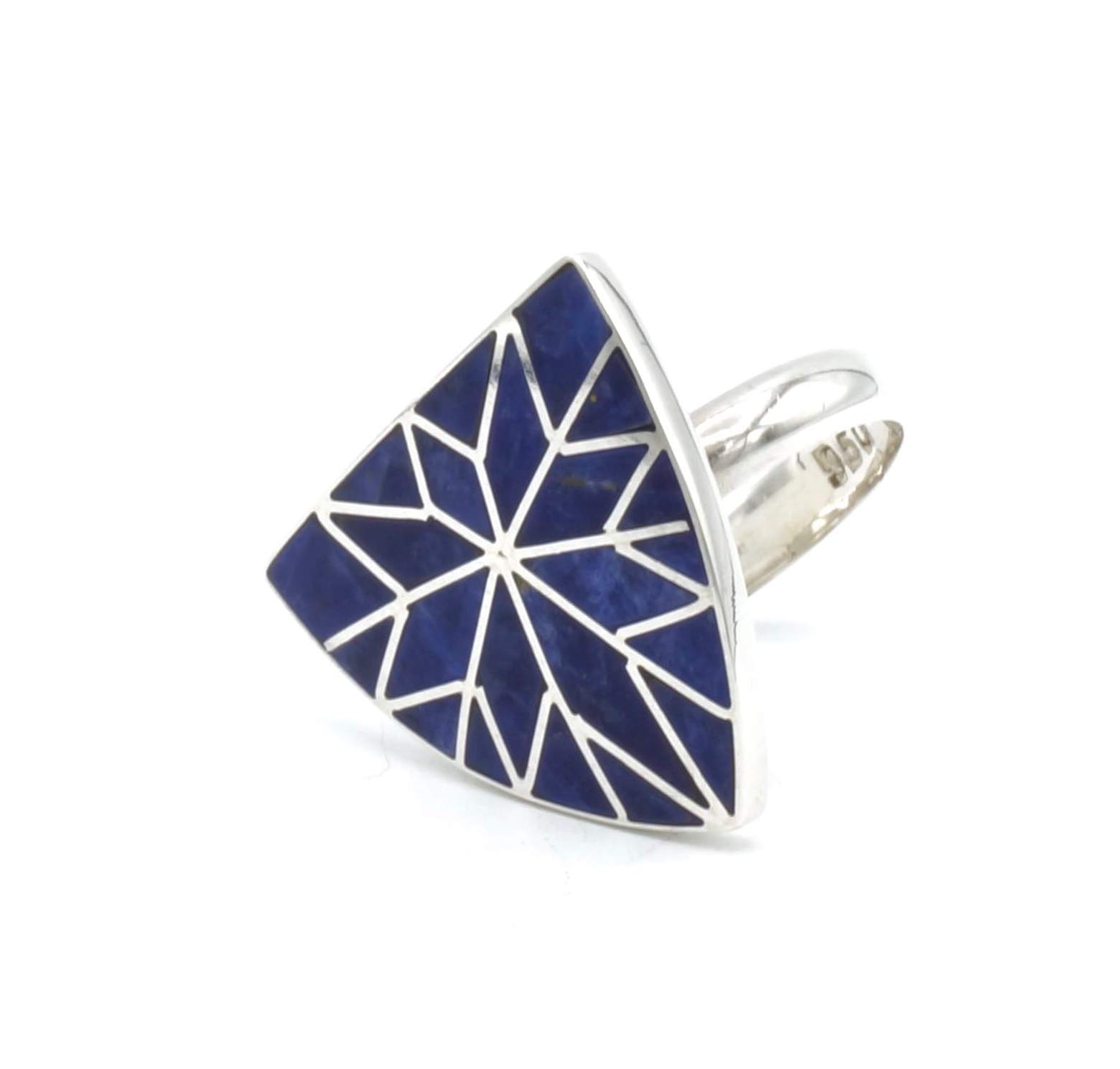Als u van zware en luxueuze ringen houdt dan is deze ring perfect voor u! Deze ring is gemaakt door Peruaanse ambachtslieden met zilver met een gehalte van 950 van de beste kwaliteit, en een prachtige sodaliet!