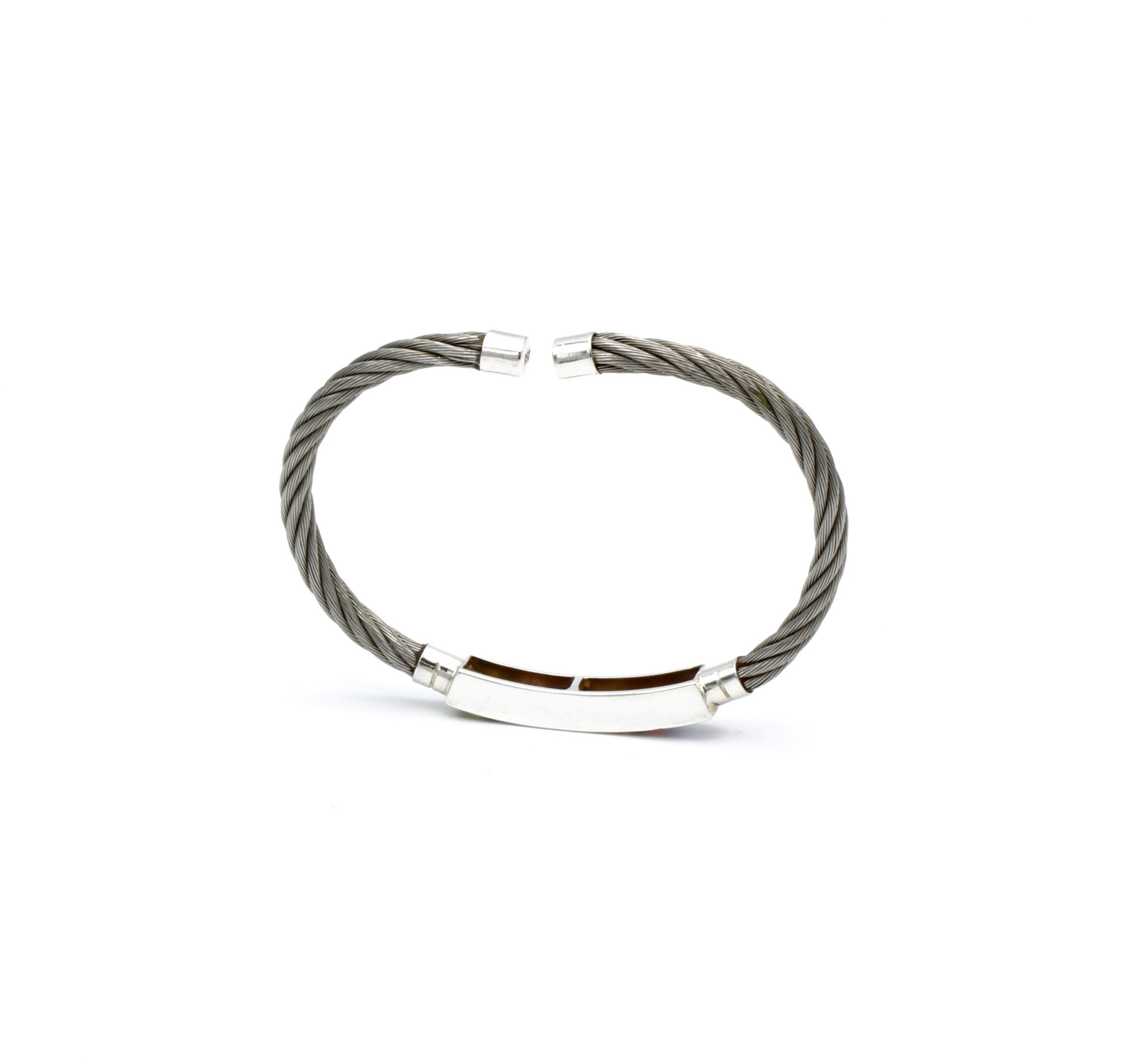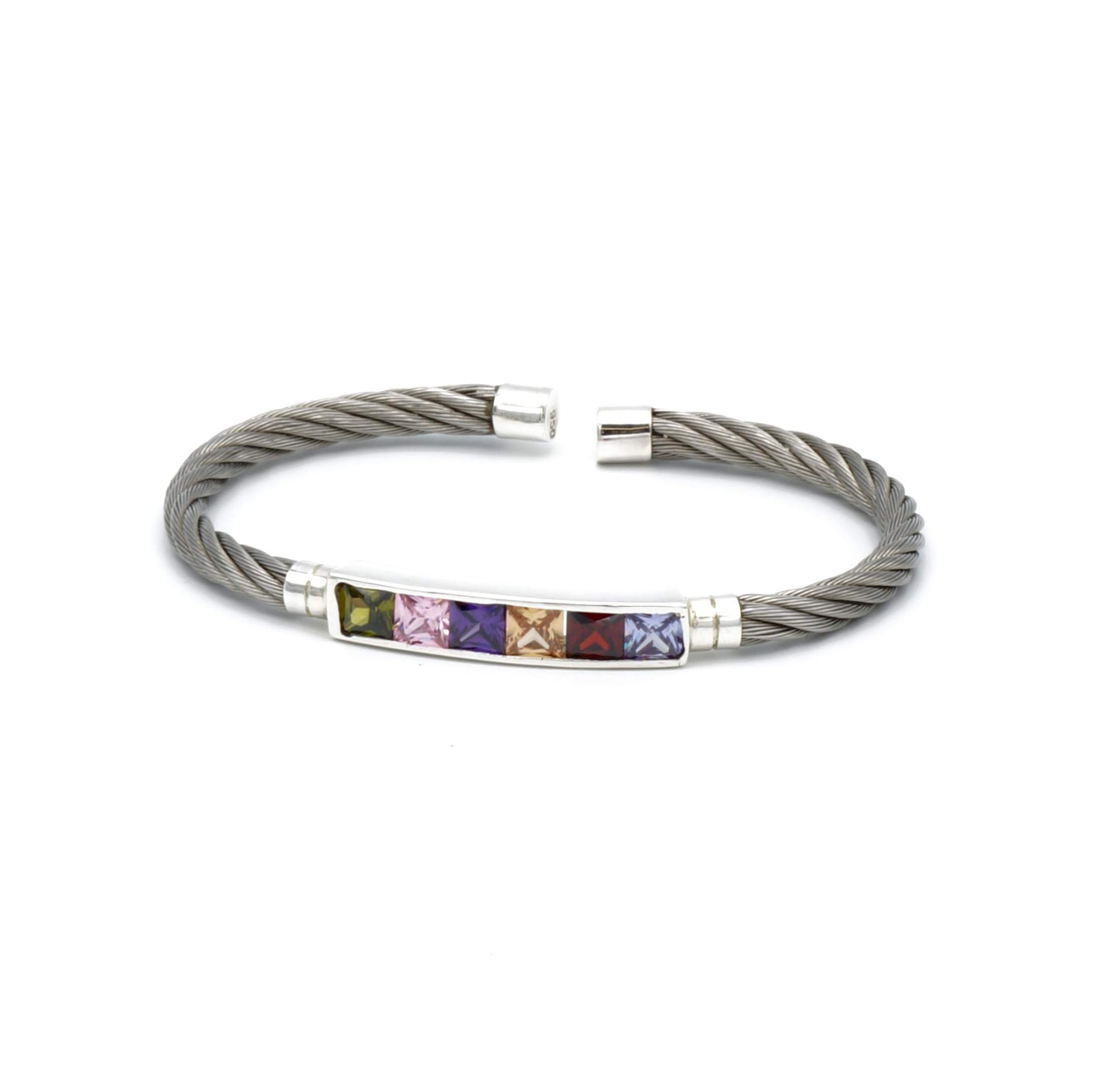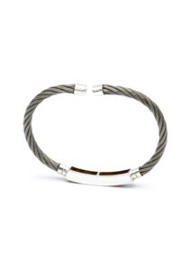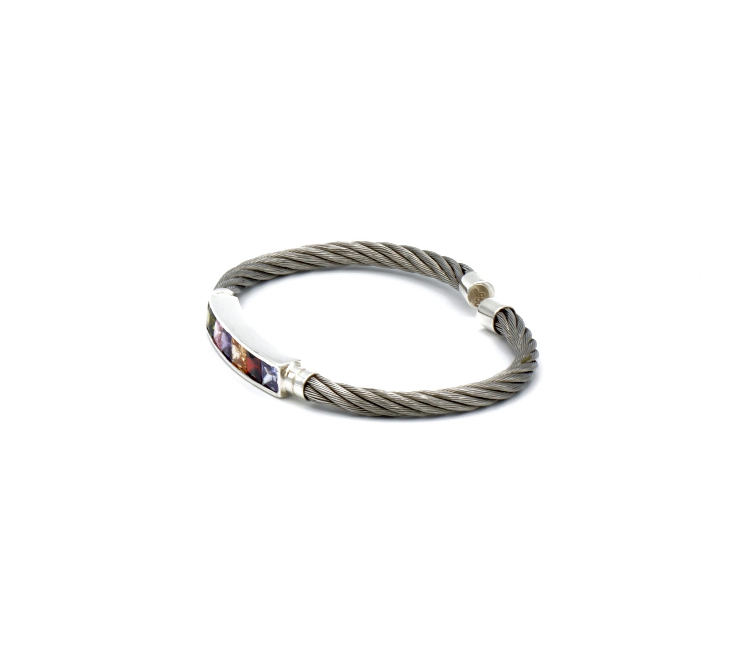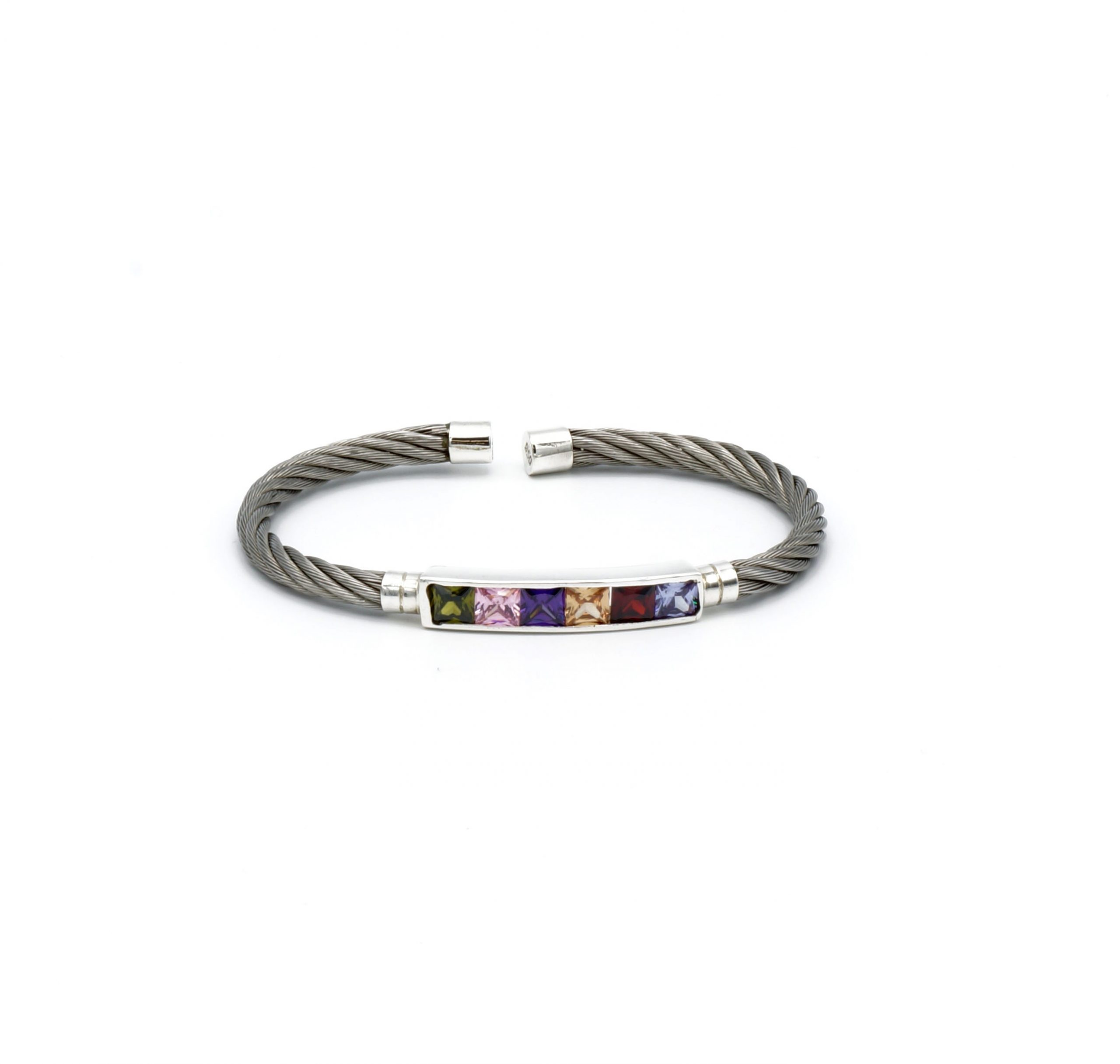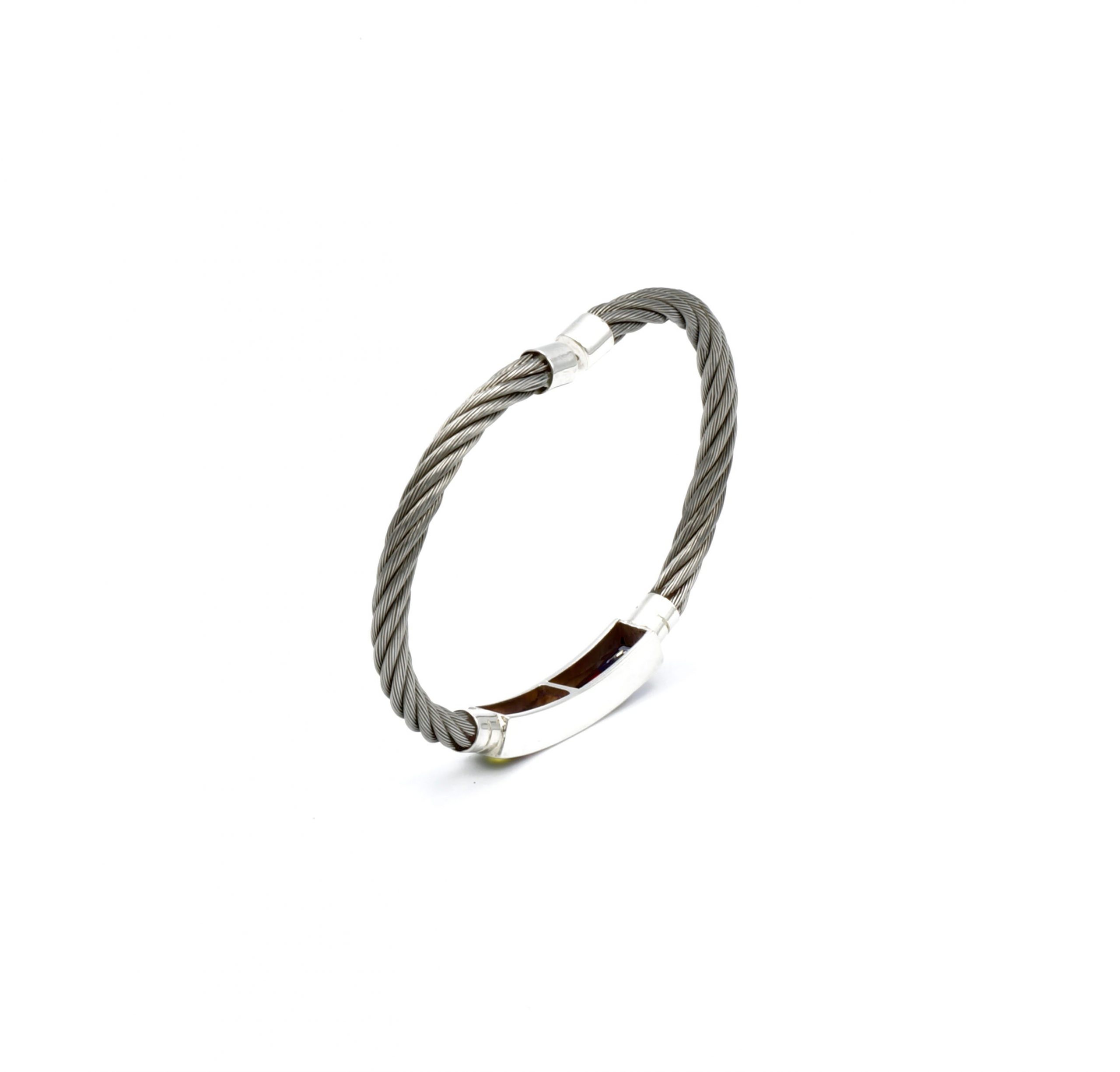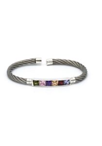 Deze modieuze, chique armband is handgemaakt van verfijnde Swarovski kristallen en staal draadjes die perfect zijn ingelegd in een donker zilveren design. De kristallen zijn betoverend en elegant.