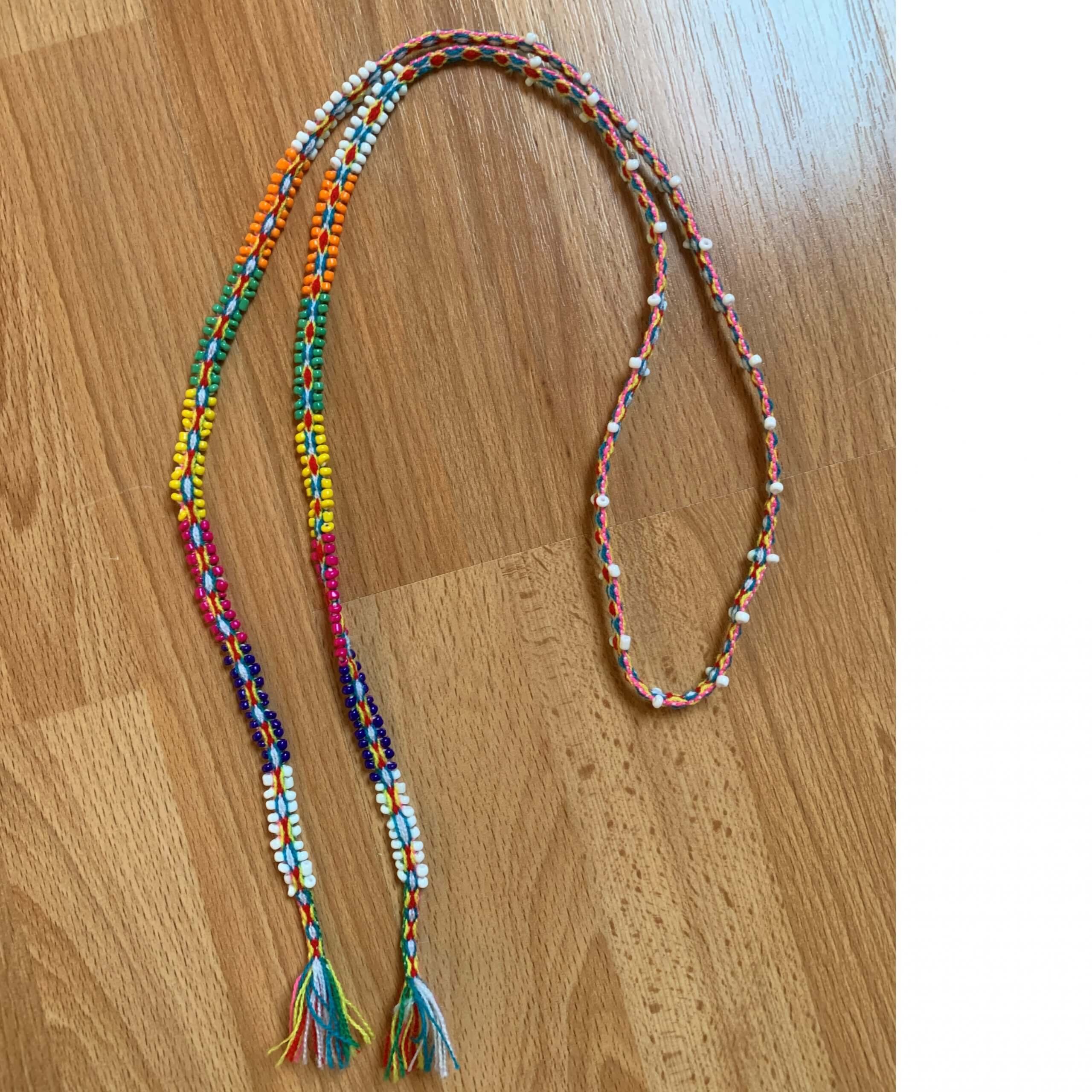Kleur kraal: oranje, geel,roze, paars, groen en blauw.