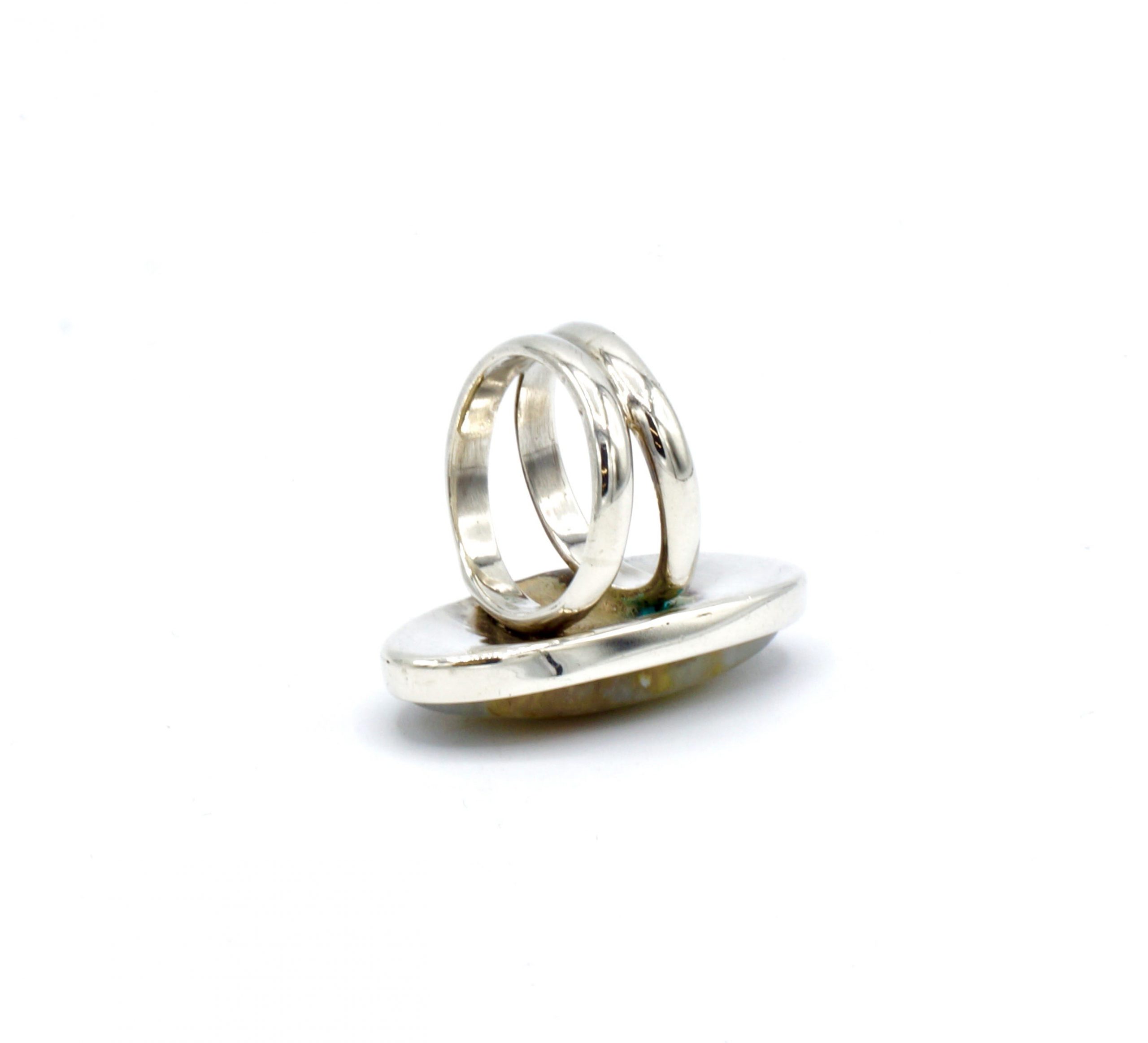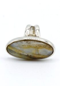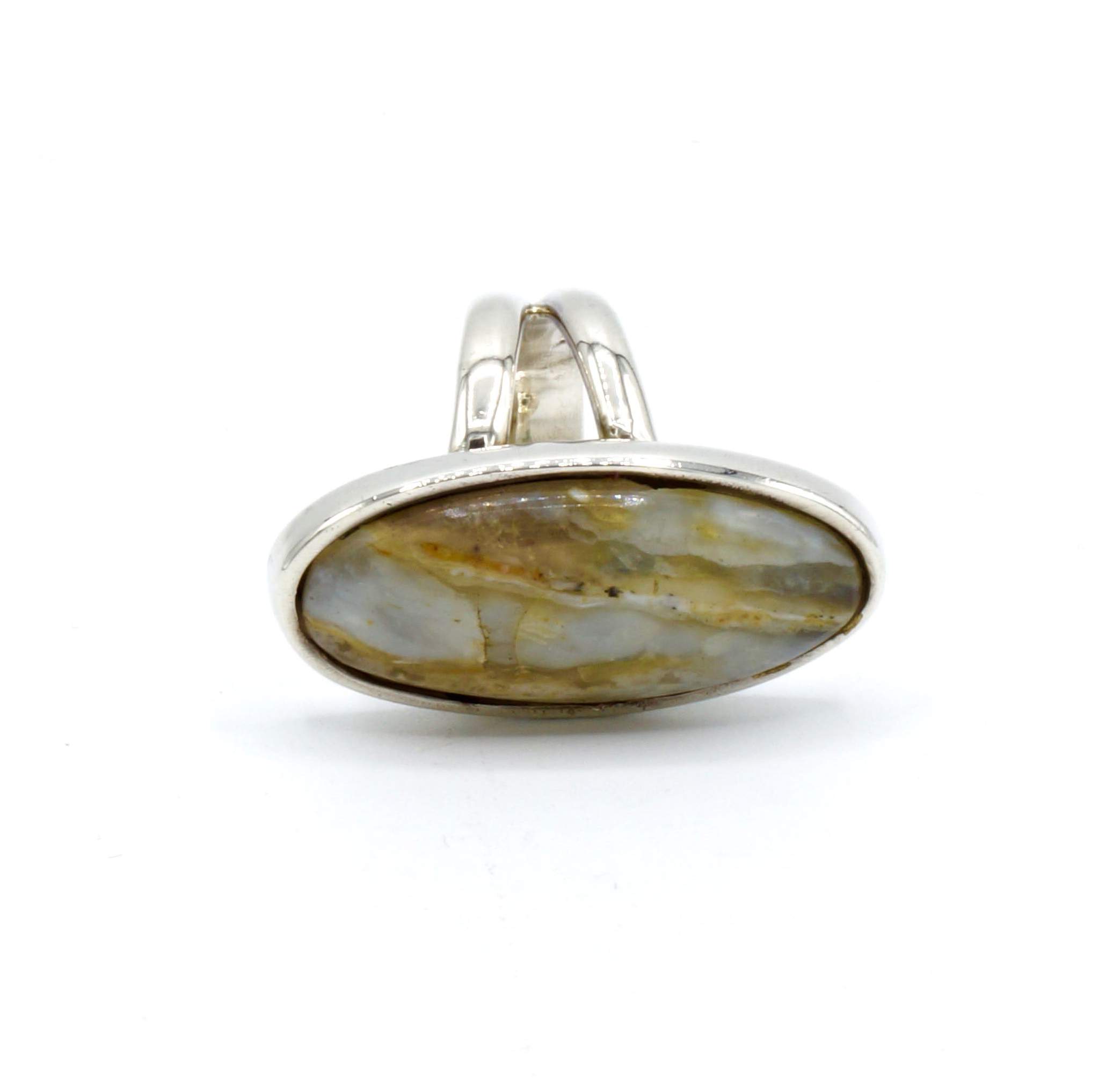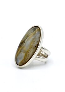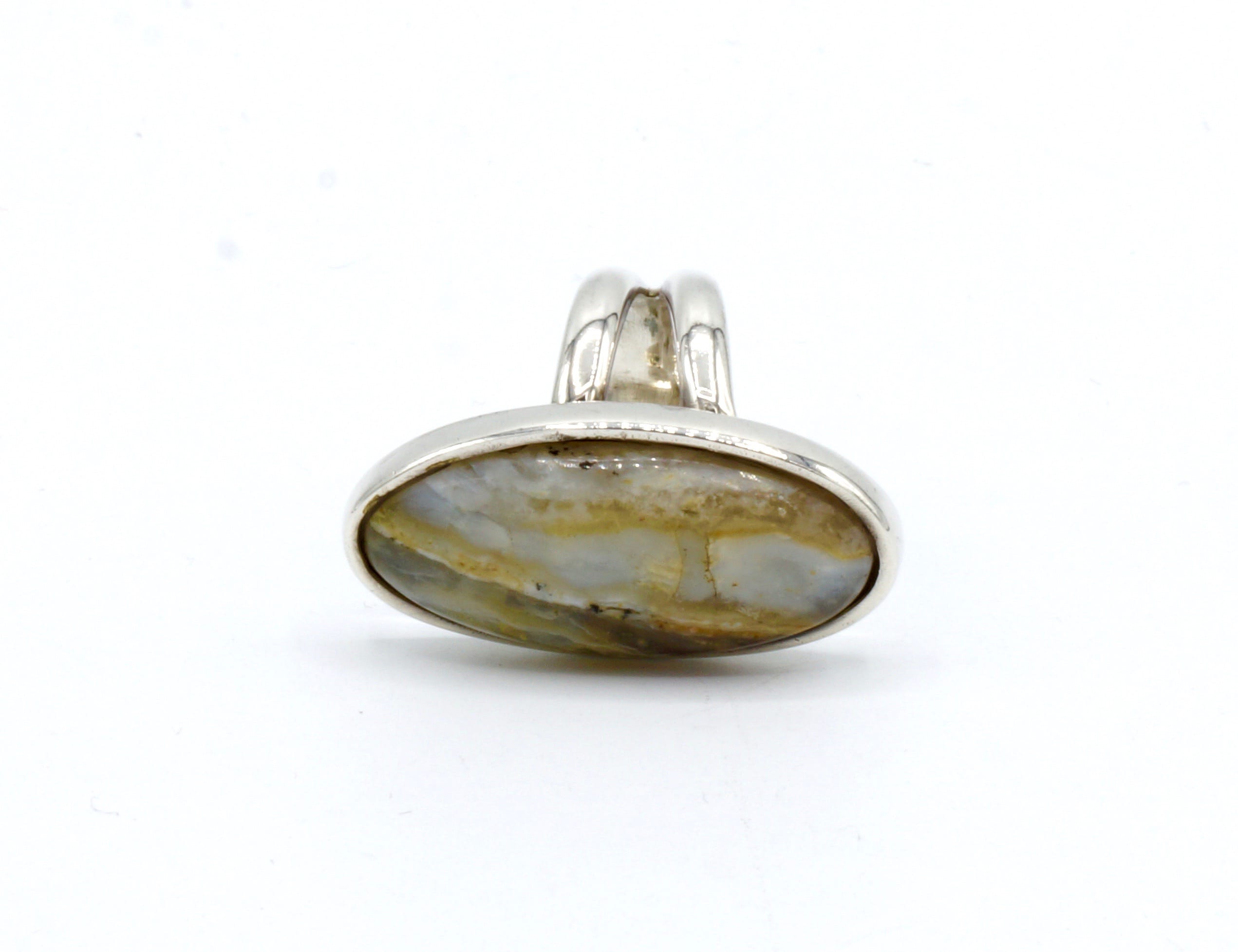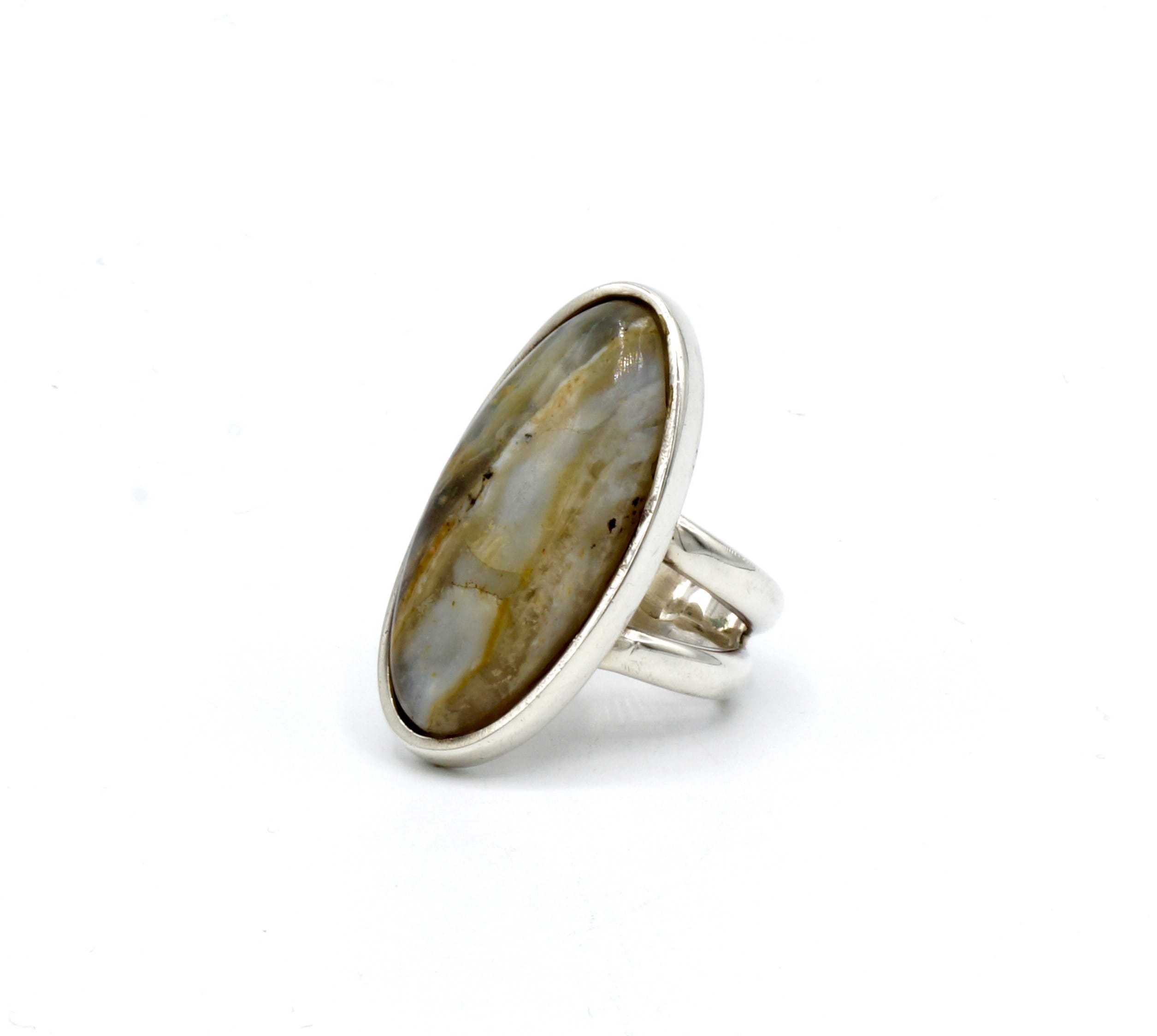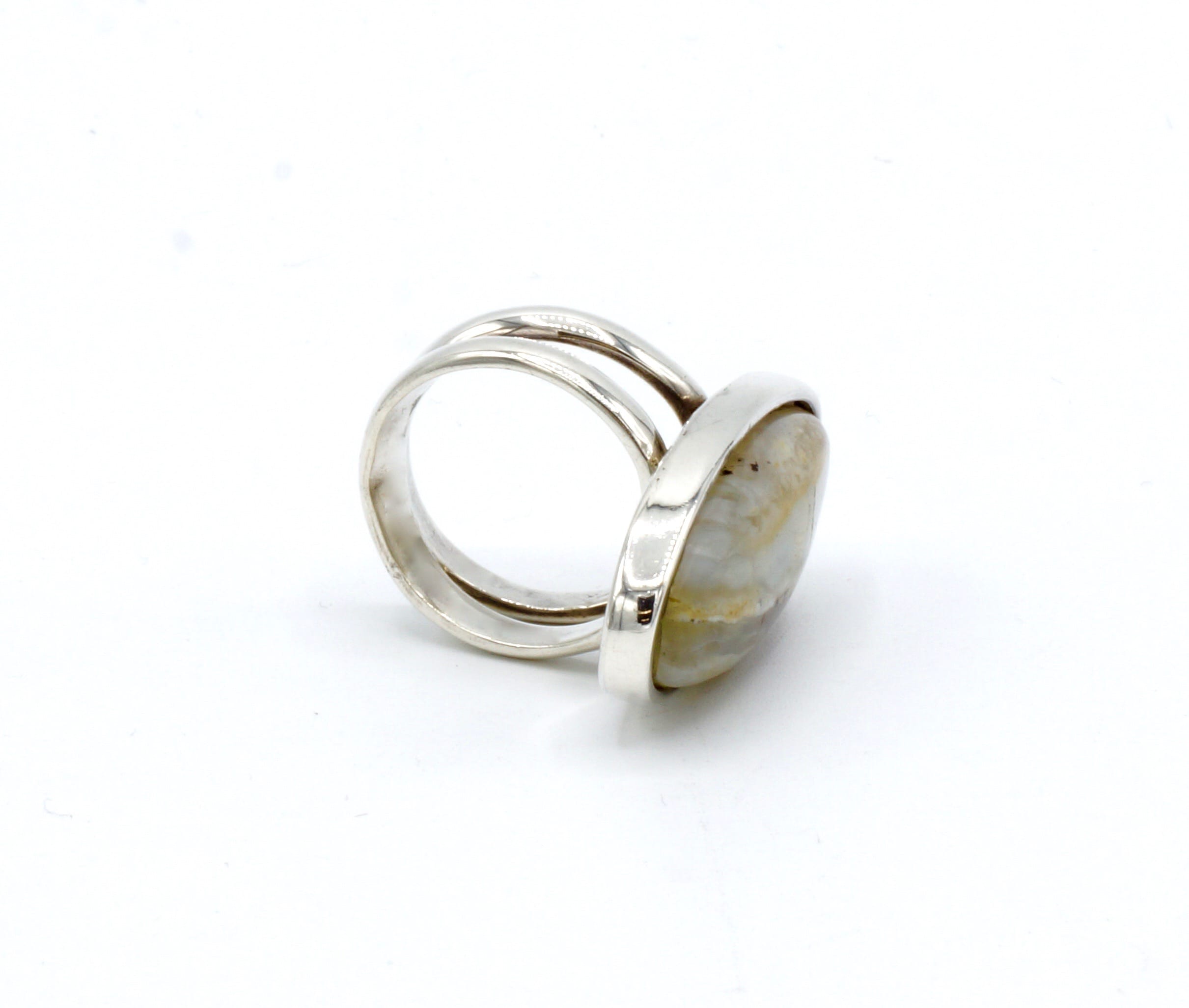 Als u van zware en luxueuze ringen houdt dan is deze ring perfect voor u! Deze ring is gemaakt door Peruaanse ambachtslieden met zilver met een gehalte van 950 van de beste kwaliteit, en een prachtige, grijze Agaat!